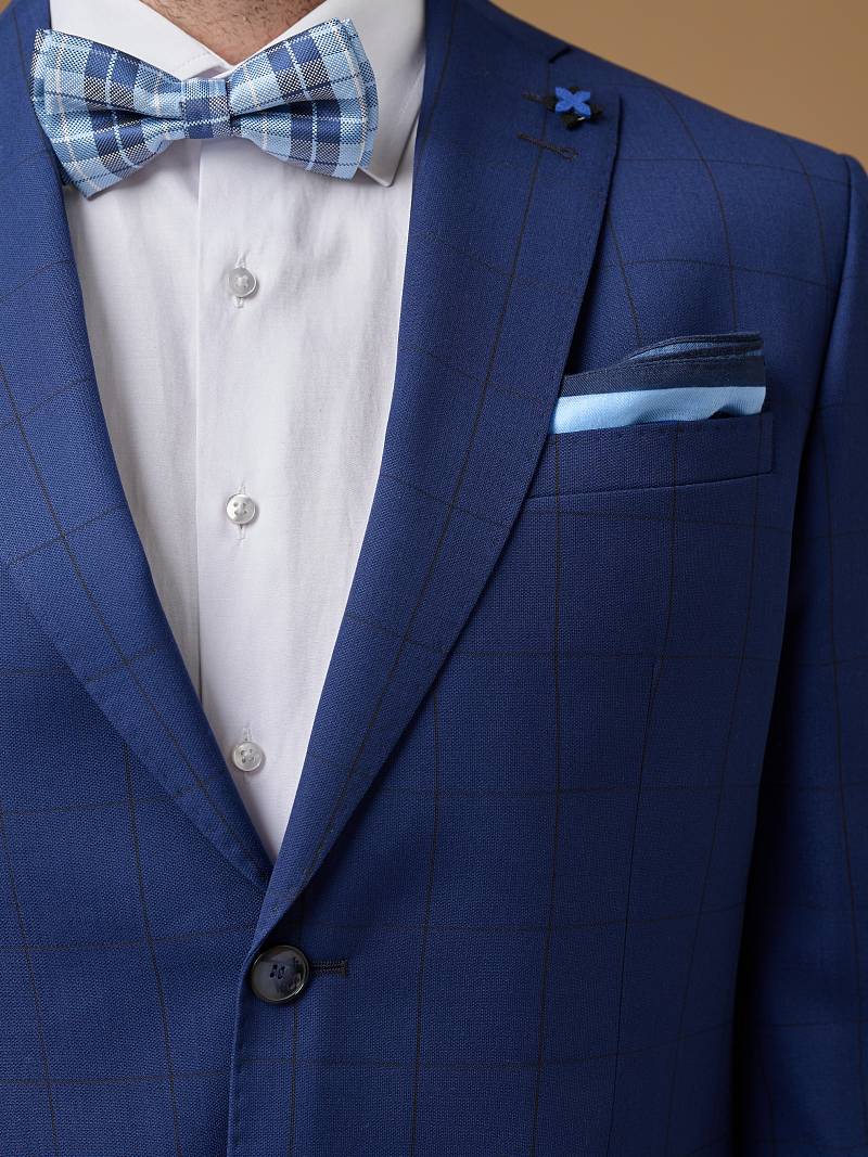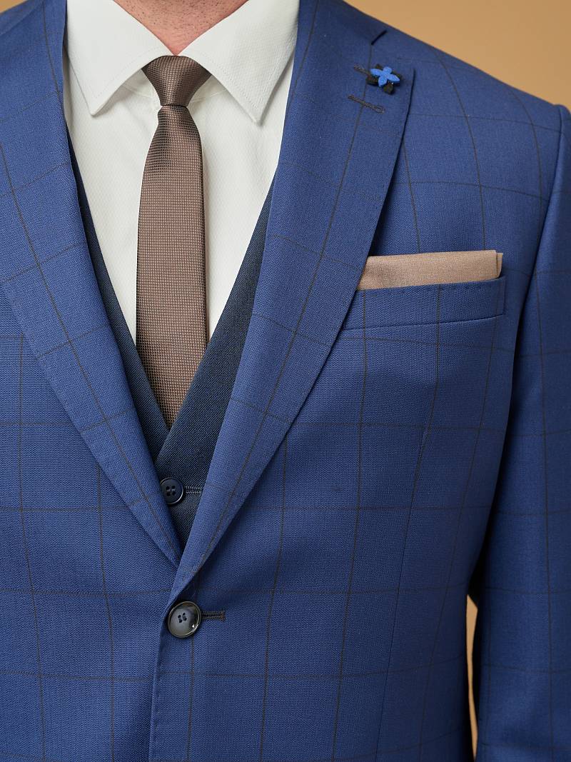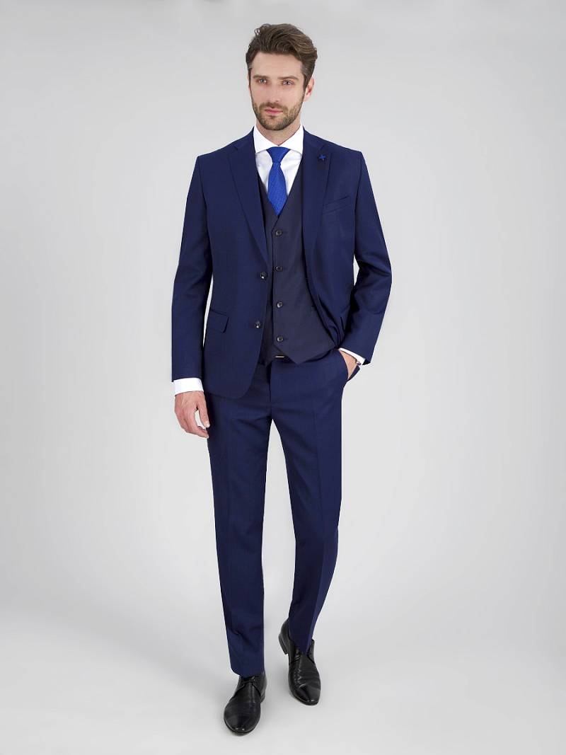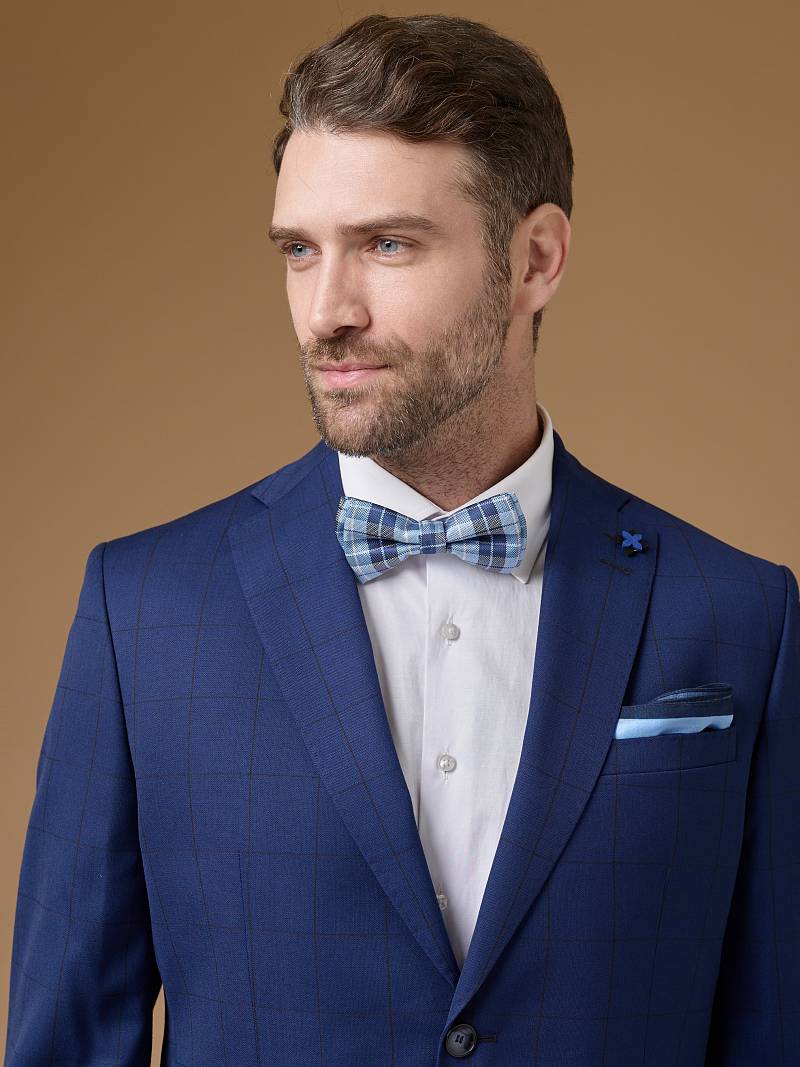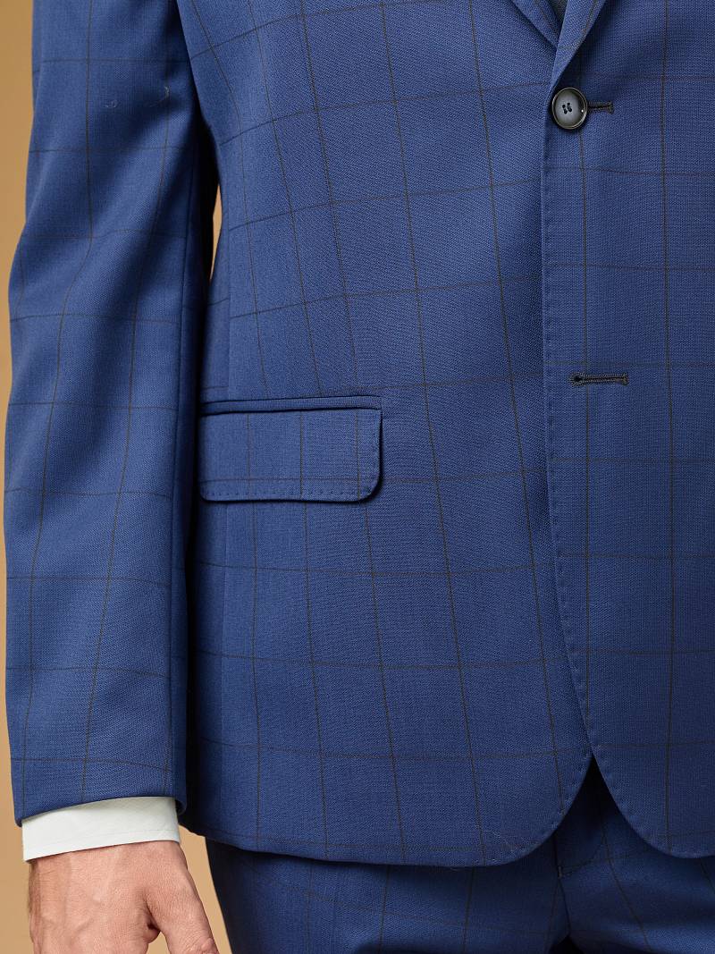 Классический костюм двойка Classic fit. Пиджак на две пуговицы, с боковыми и нагрудным карманами, по спинке две шлицы. Вспушка по воротнику, лацканам, краю борта, клапанам и нагрудной листочке Брюки без защипов с боковыми и одним задним карманом.