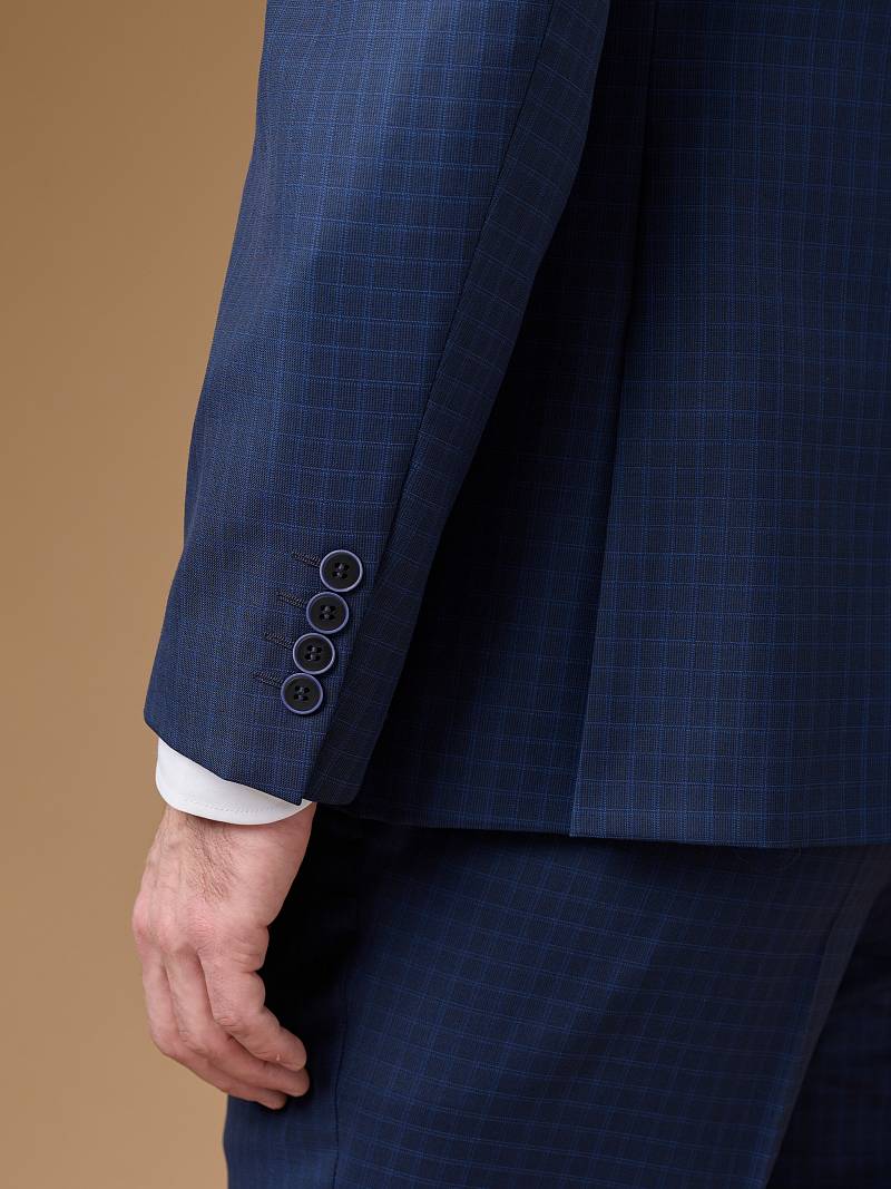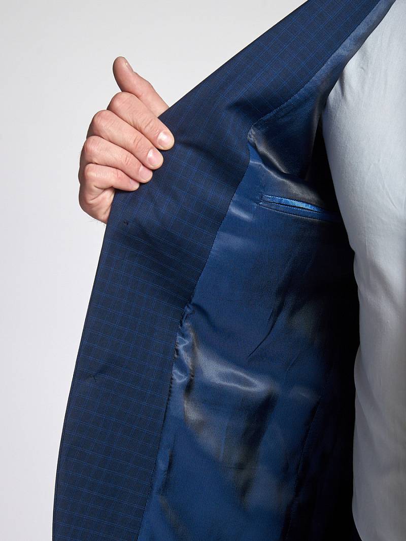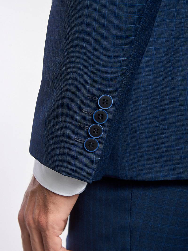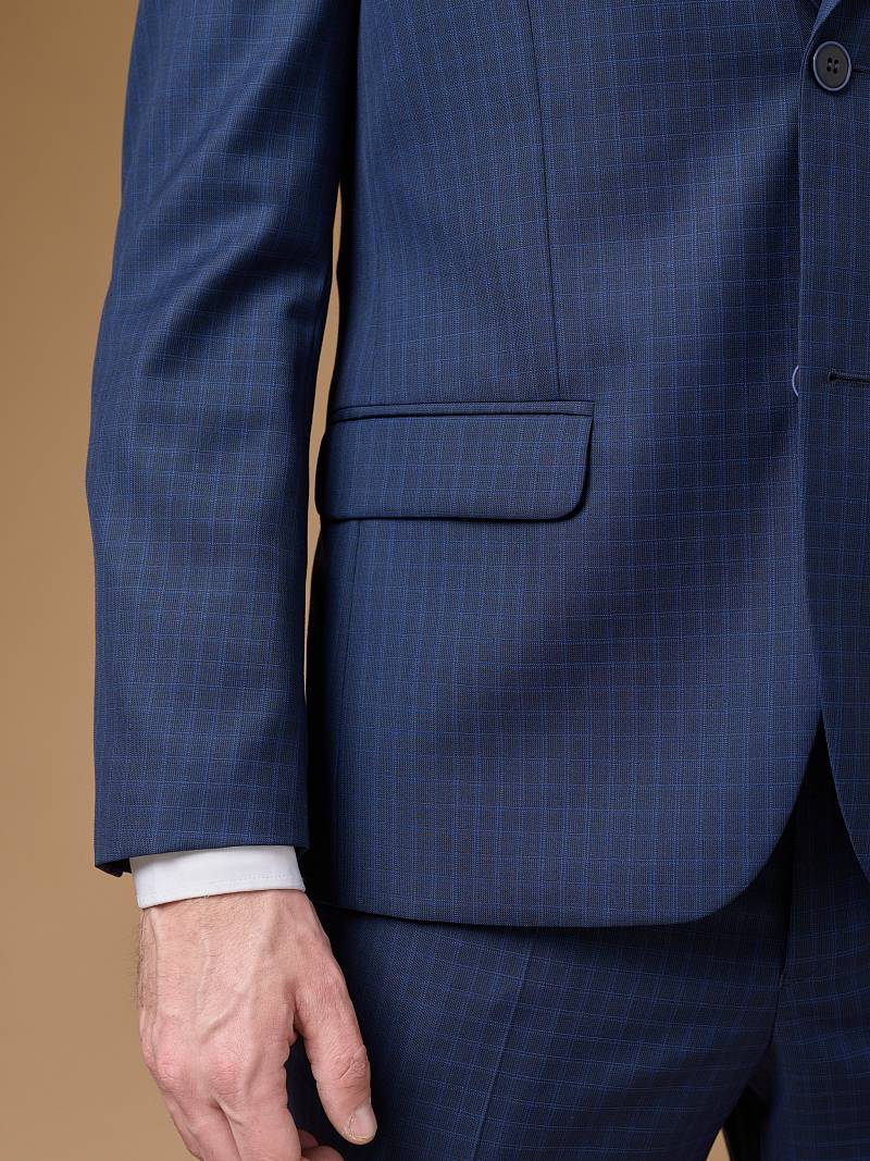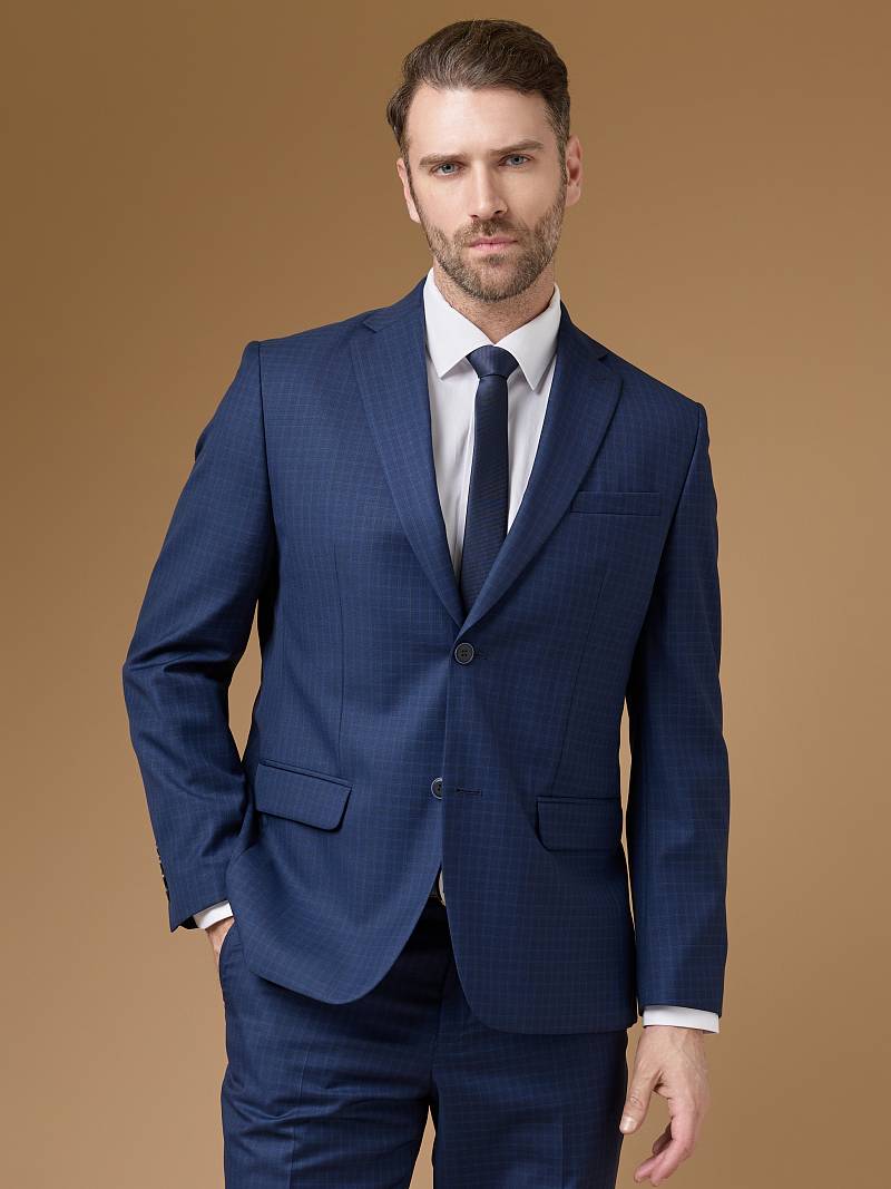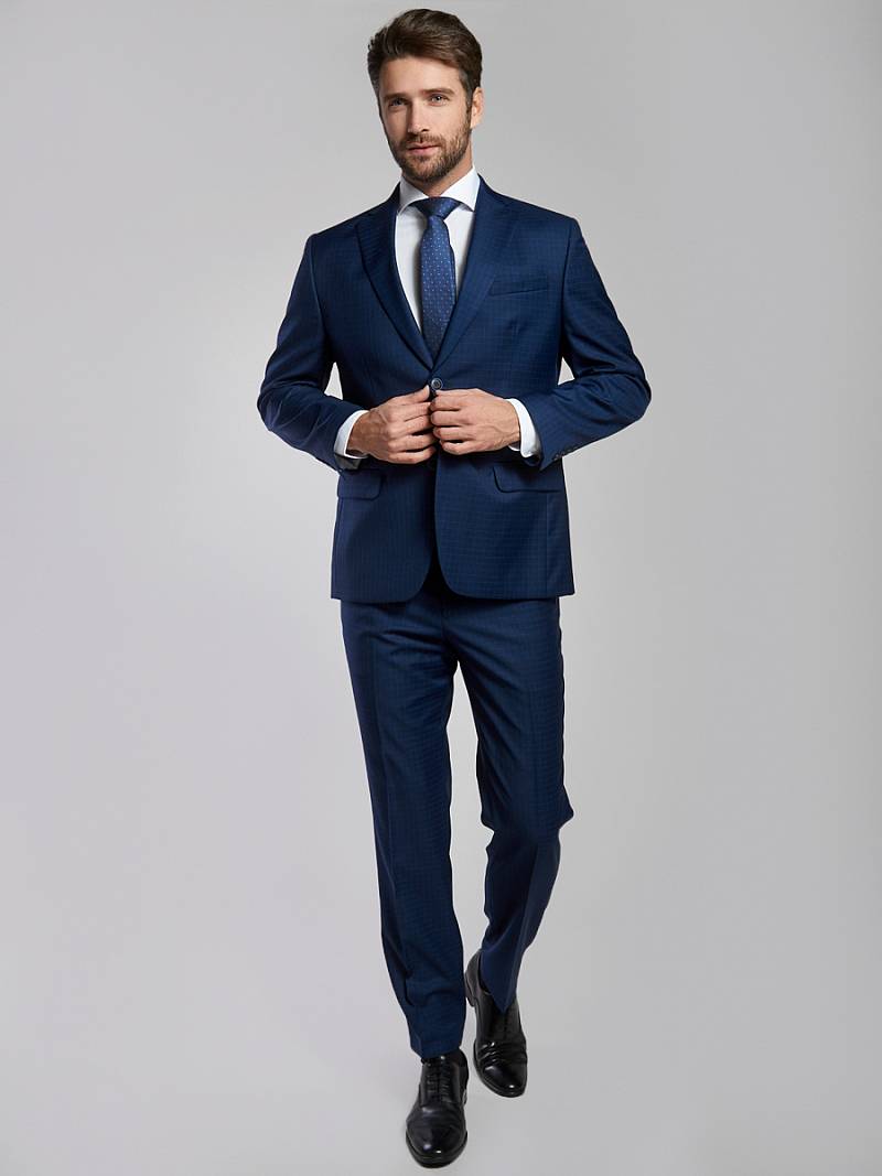 Классический костюм двойка Classic fit. Пиджак на две пуговицы, с боковыми и нагрудным карманами, по спинке две шлицы. Брюки без защипов с боковыми и одним задним карманом.