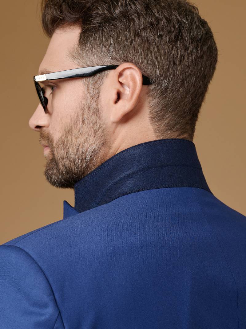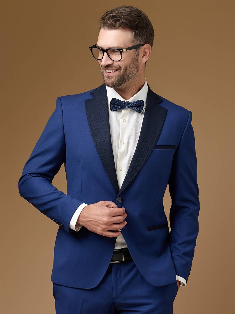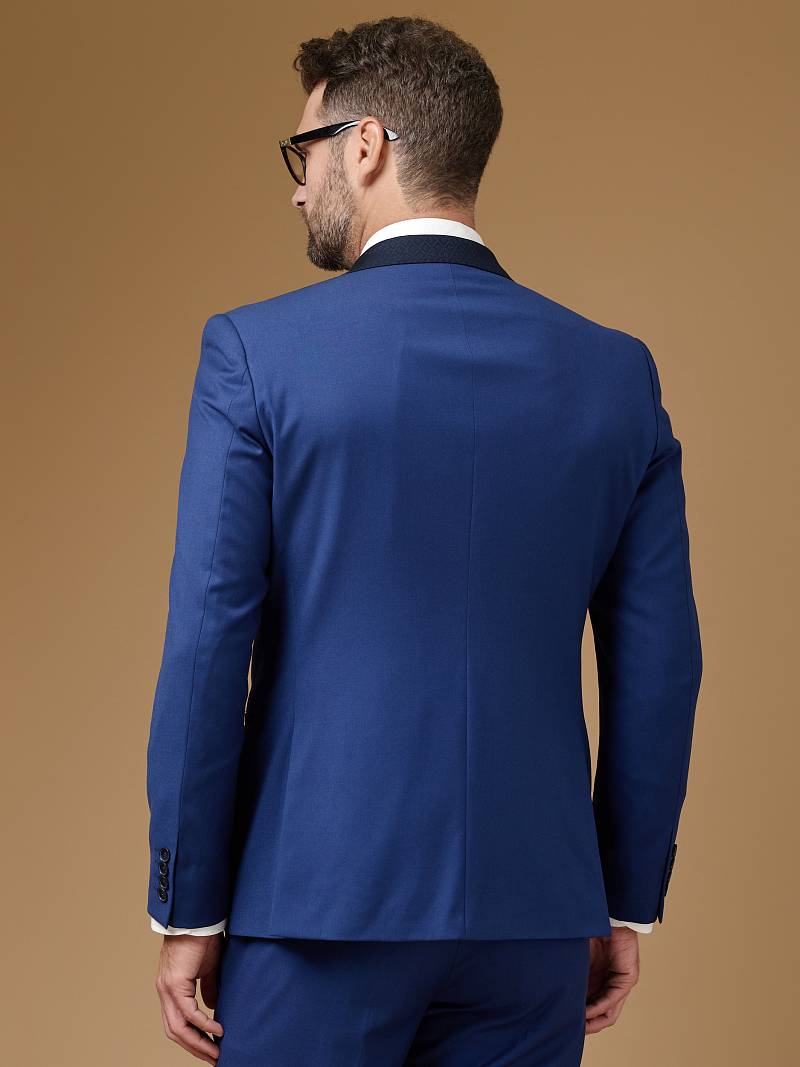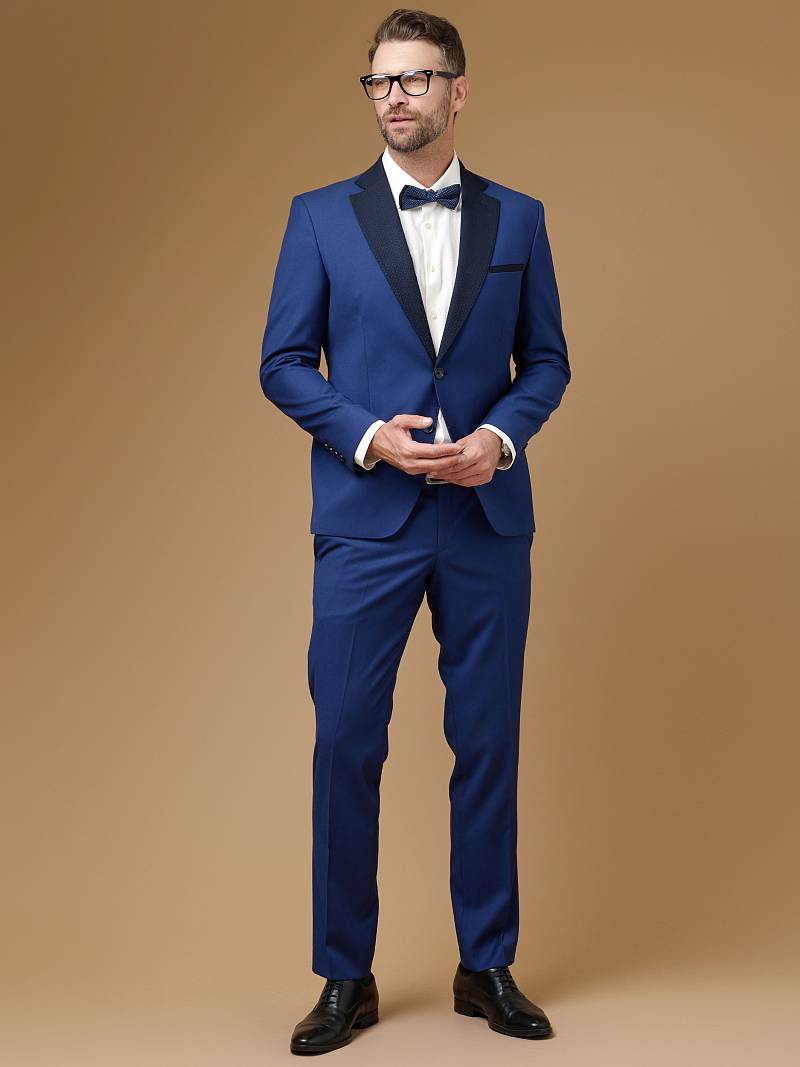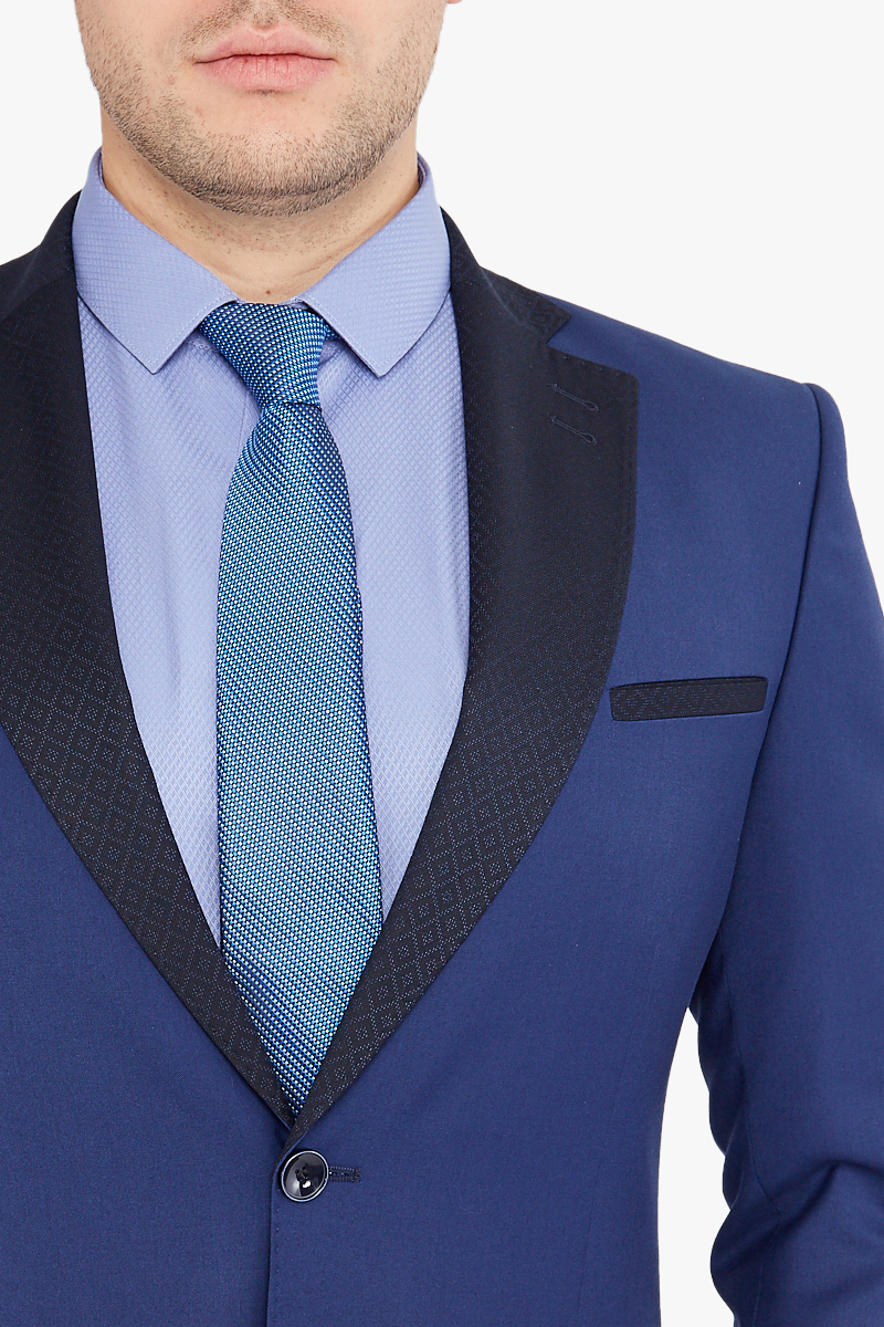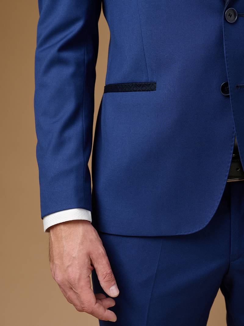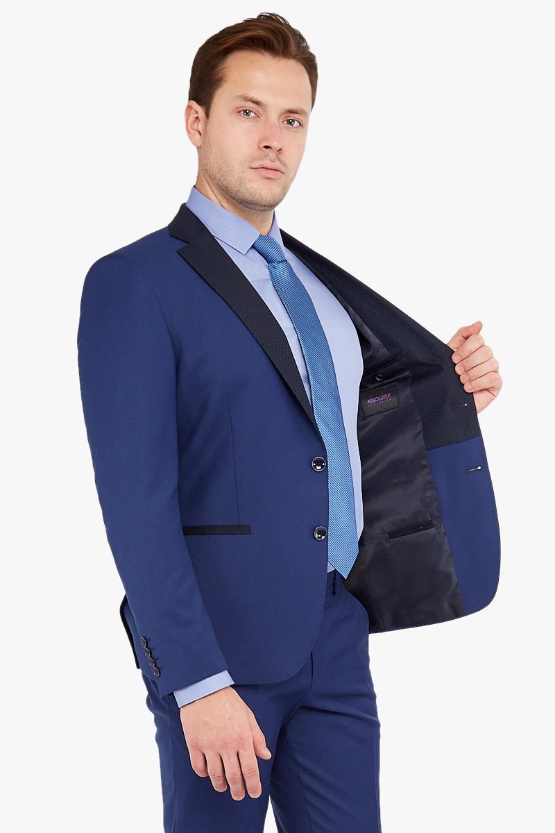 Костюм мужской Slim fit 2пуговицы, 2 шлицы. Воротник, лацкана, листочки из отделочной ткани. Комбинированный костюм.