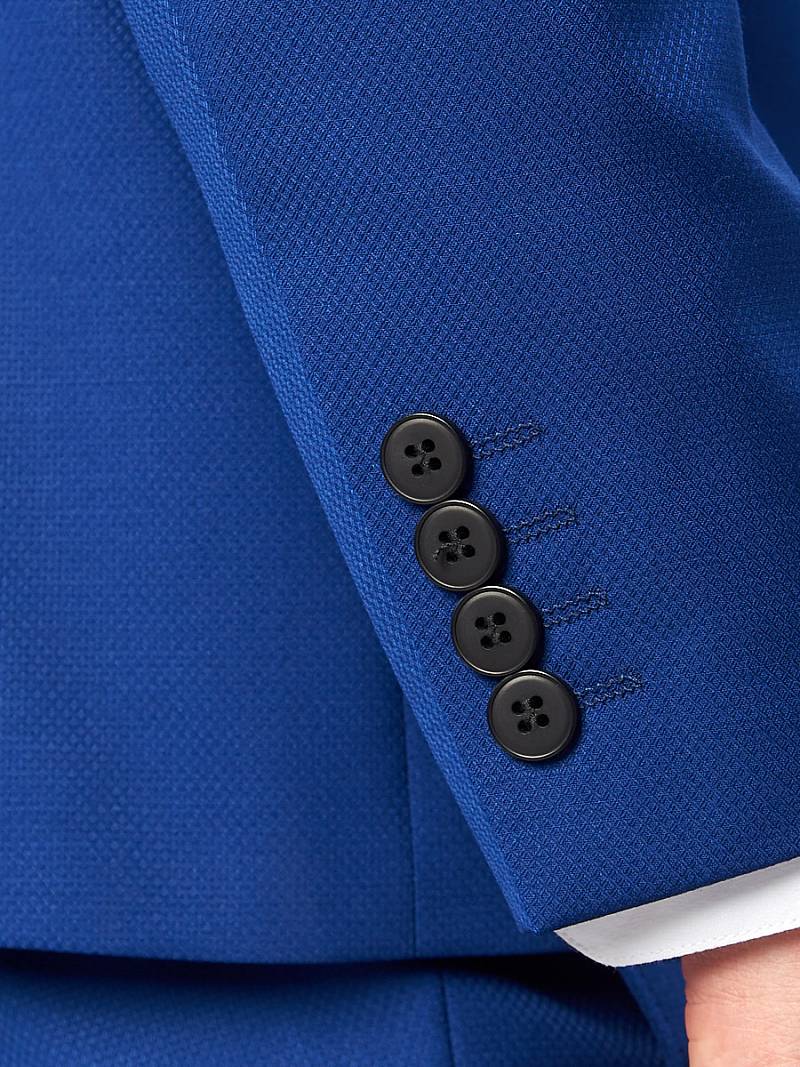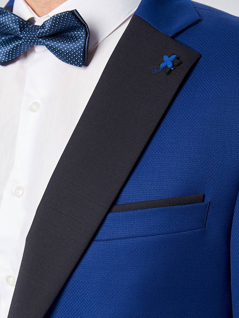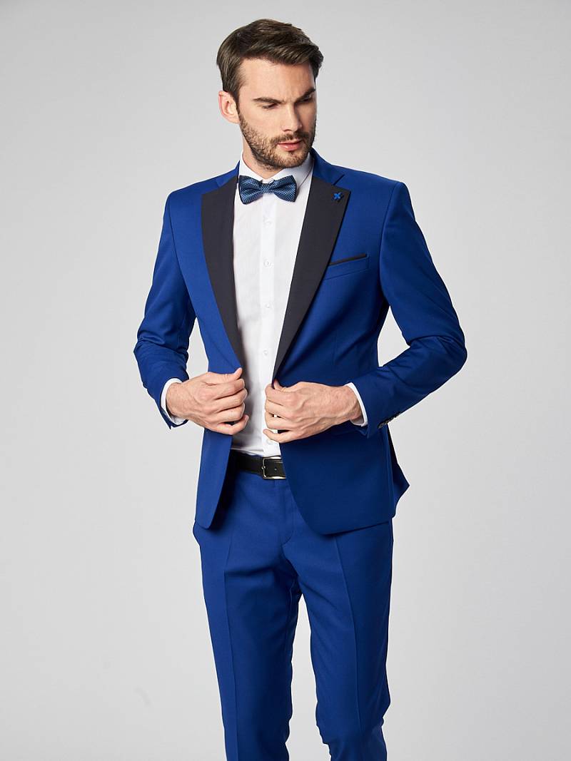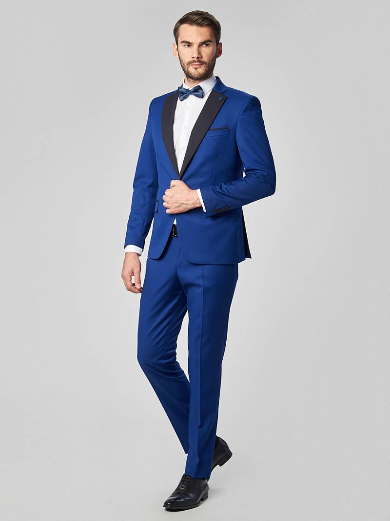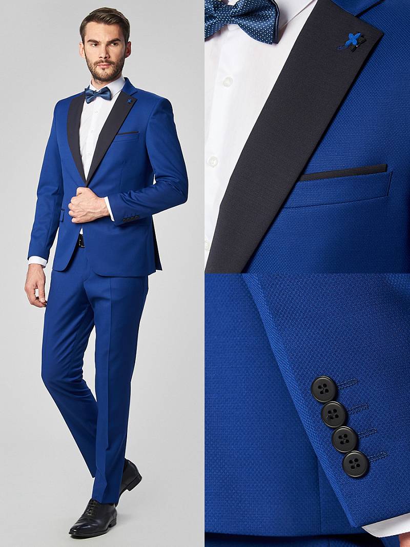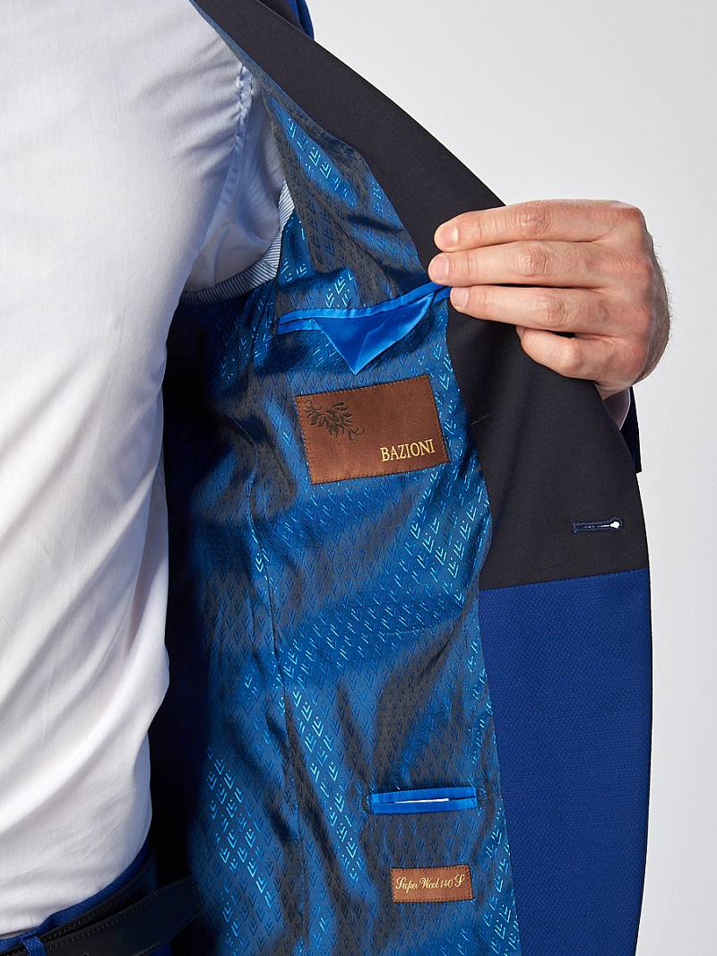 Slim fit. одна пуговица, две шлицы. Лацкан, обтачки кармана из отделочной ткани.