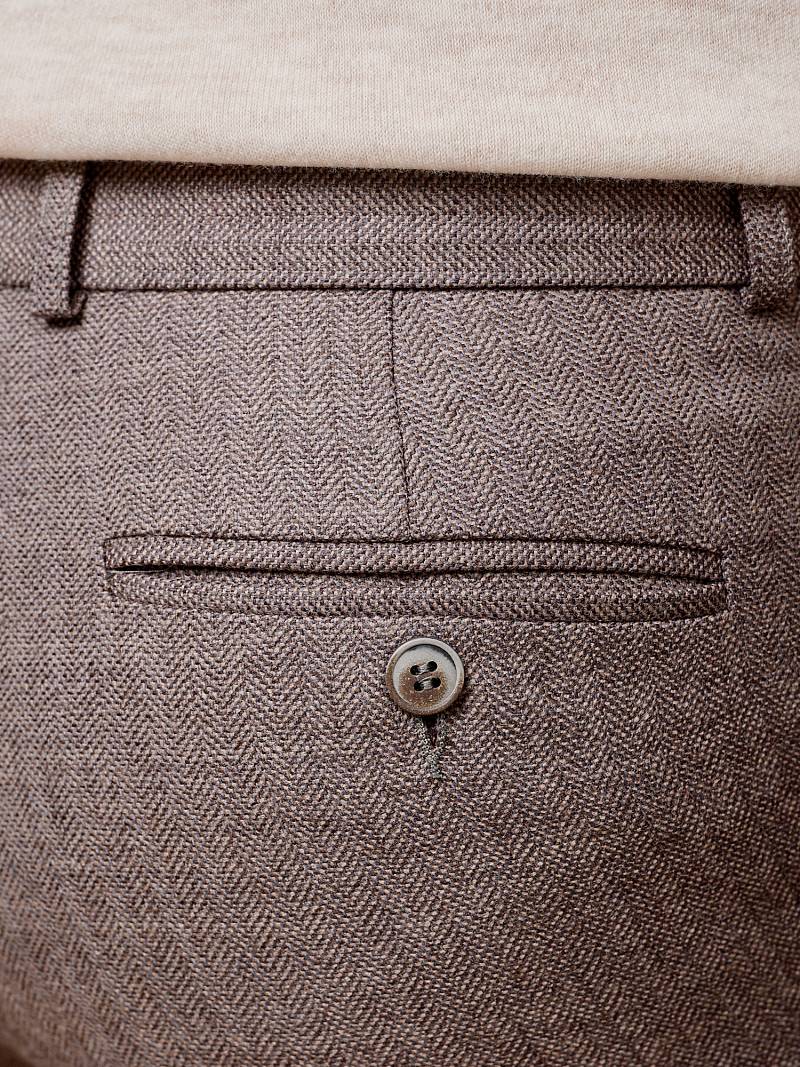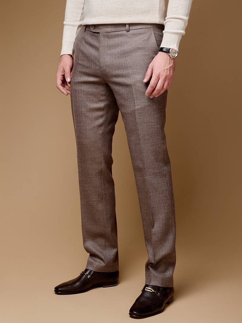 Классический костюм двойка Slim fit (ПРИЛЕГАЮЩИЙ СИЛУЭТ), рекомендуется брать на размер больше.Пиджак однобортный на две пуговицы, с двумя боковыми карманами с клапанами и нагрудной листочкой. Рукава втачные, двухшовные со шлицей и четырьмя декоративными пуговицами. По спинке расположены две шлицы. Пиджак на подкладке, с двумя внутренними карманами. Брюки без защипов, с боковыми наклонными карманами и двумя задними карманами «в рамку». Передние половинки на подкладке. Верхний срез брюк обработан поясом с корсажной лентой и шлевками под ремень. Застежка обработана на тесьму-молнию, с петлей-пуговицей на поясе и усилен металлическим крючком.