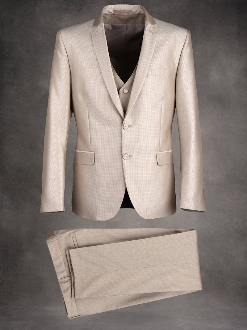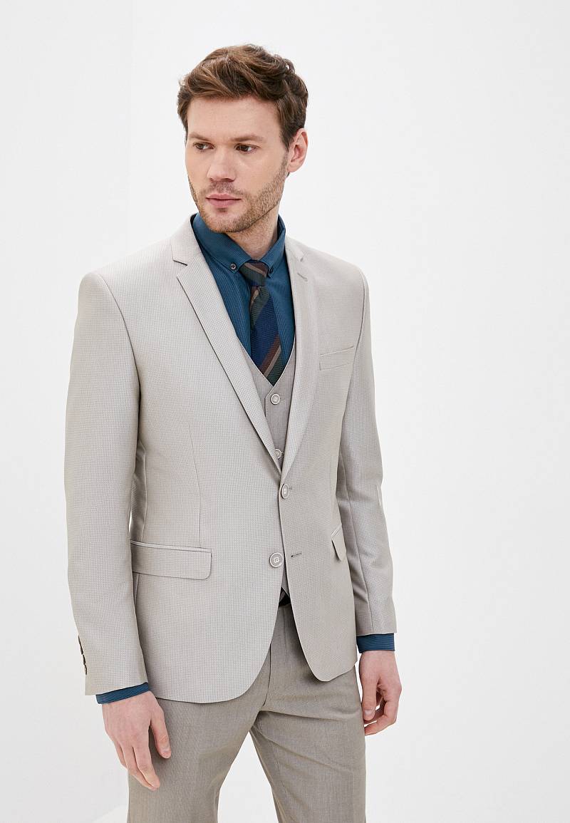 Костюм мужской тройка. Slim fit, 2 пуговицы, 2 шлицы, Пиджак из ткани с мелкоузорчатым рисунком .Брюки и жилет из однотонной ткани "гладь"компаньон. Спинка жилета полностью из ткани.