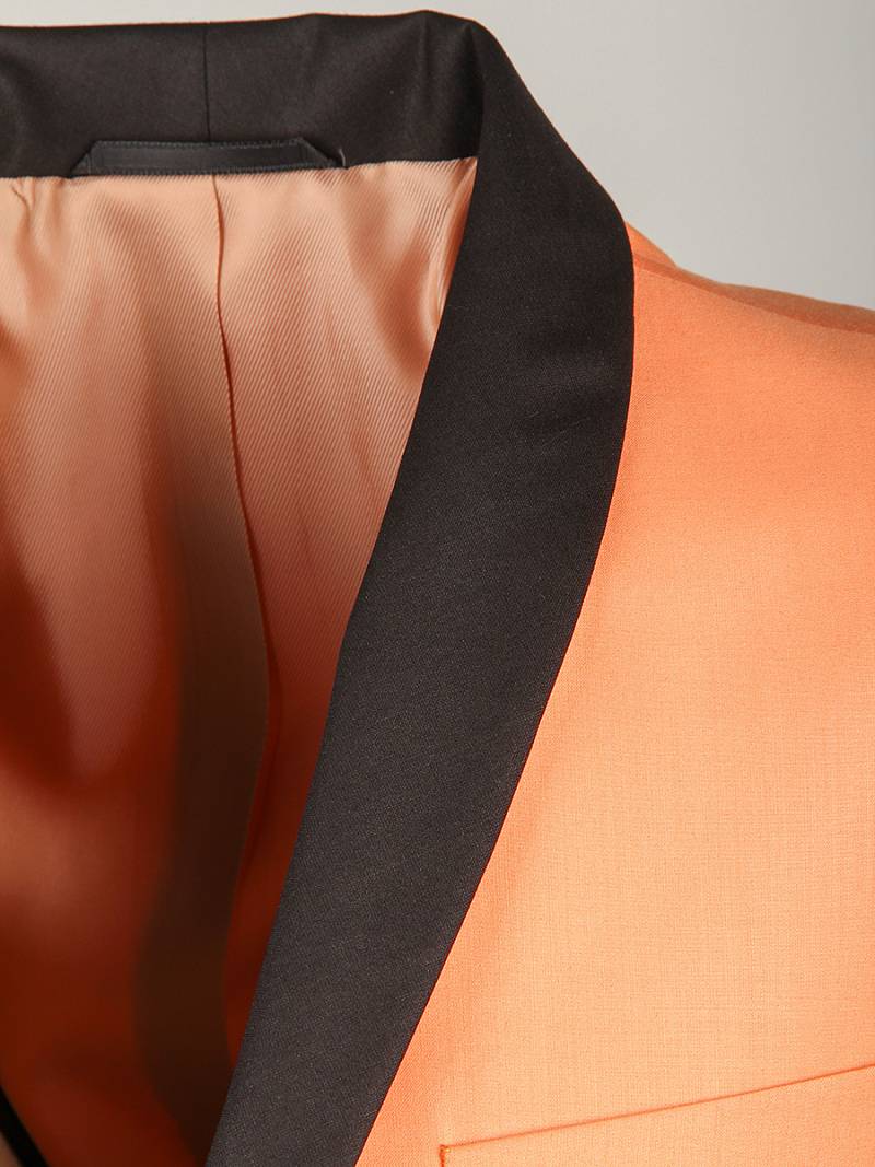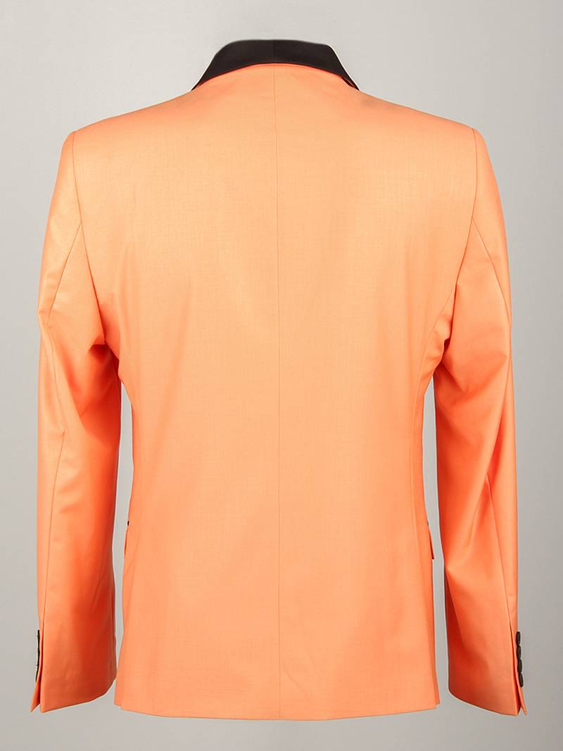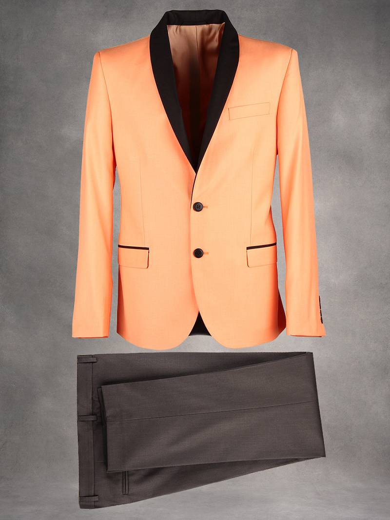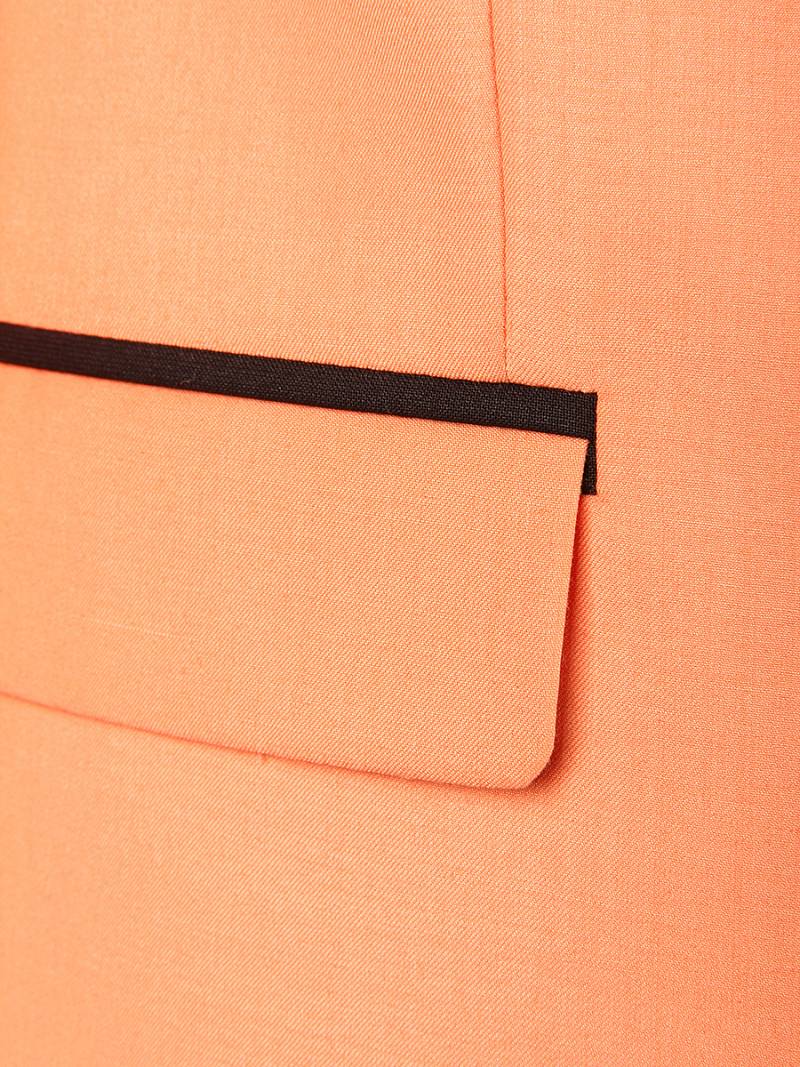 Slim fit, воротник-шалька, две пуговицы, две шлицы. Брюки, воротник - шалька из отделочной гладкокрашенной ткани "компаньон"