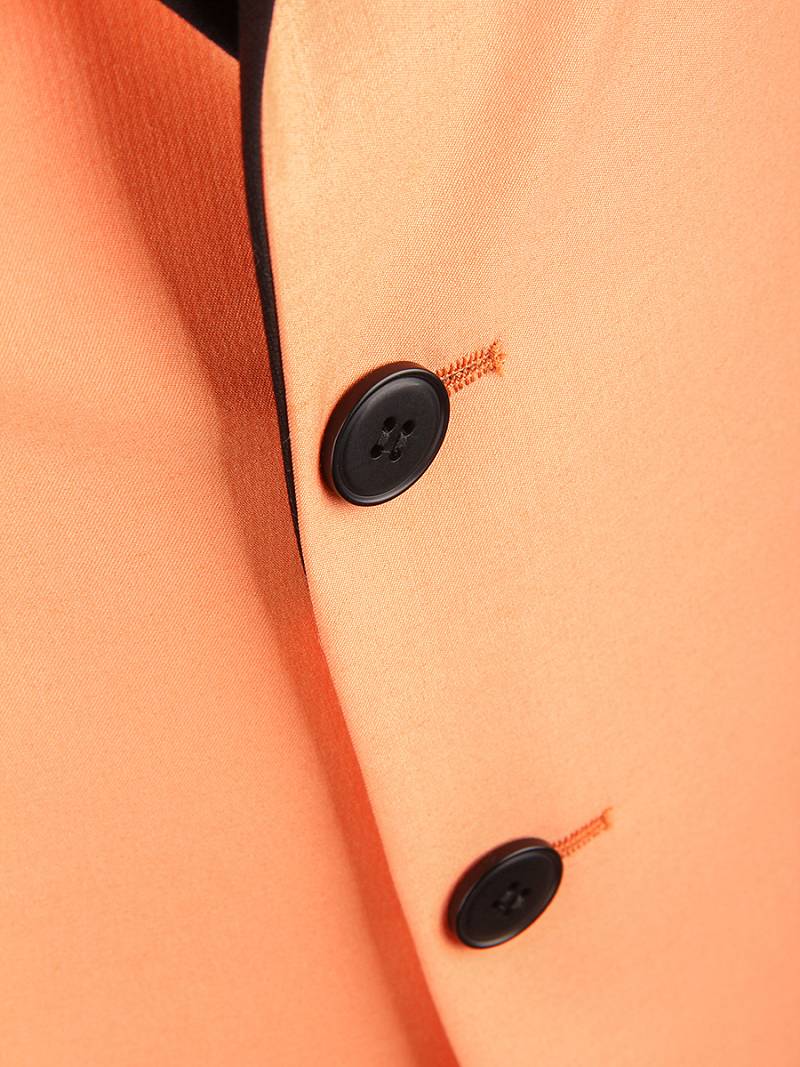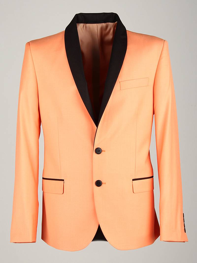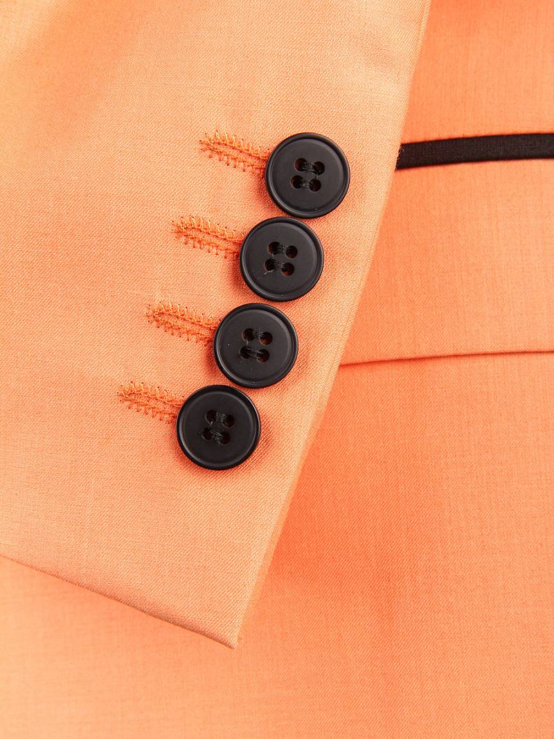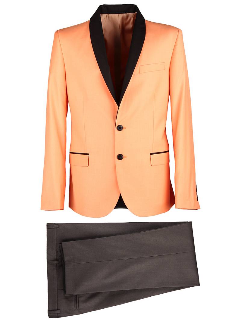 Slim fit, воротник-шалька, две пуговицы, две шлицы. Брюки, воротник - шалька из отделочной гладкокрашенной ткани "компаньон"