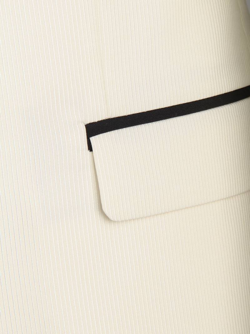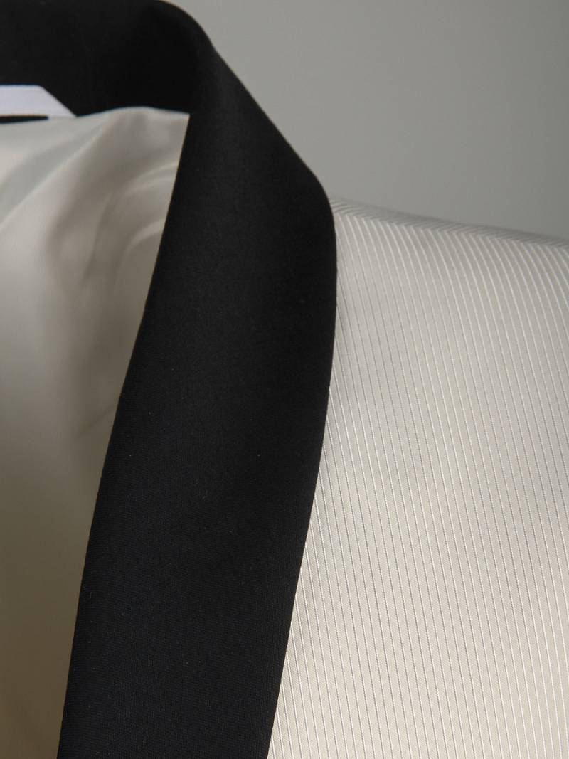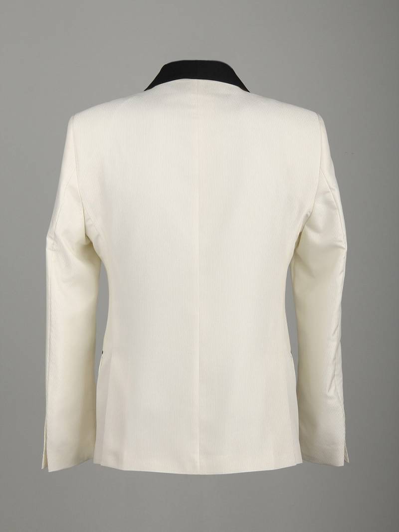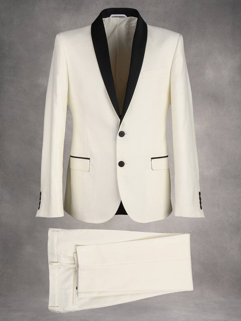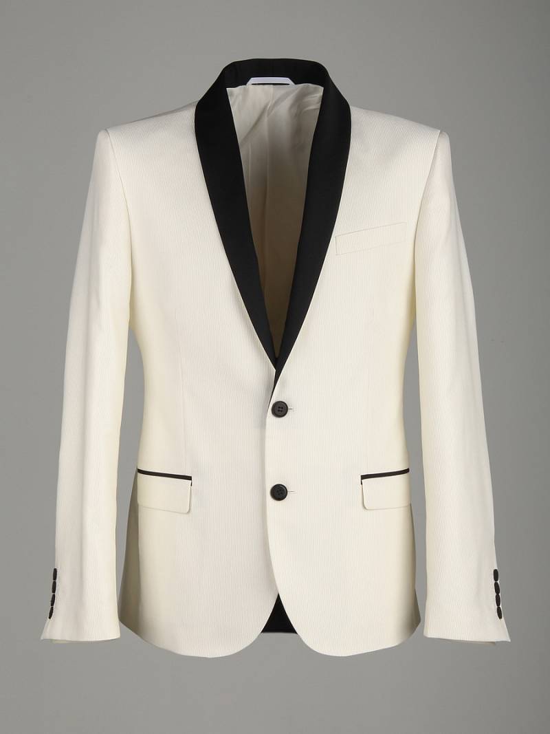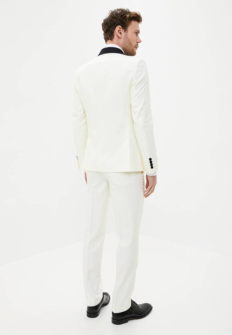 Костюм двойка Slim fit. Пиджак с воротником-шалька, две пуговицы, две шлицы. Брюки без защипов с боковыми и одним задним карманом. Воротник и обтачки карманов пиджака выполнены из ткани компаньона.