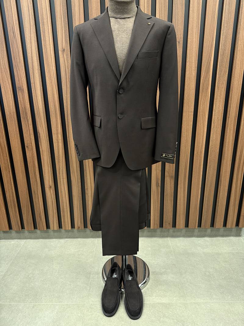 Классический костюм двойка марки BAZIONI– это идеальное сочетание стиля и комфорта для мужчин, которые ценят качественный пошив и изысканный дизайн. Для пошива шерстяного костюма использовали премиальную шерсть высокого качества, которая подчеркивает респектабельность, а безупречная посадка обеспечивает комфорт владельцу. Пиджак с классической шириной лацкана и мягкой линией плеч дополнили сзади двумя шлицами, модель садится точно по фигуре и прекрасно впишется в офисный образ. Обработан пиджак шелковой подкладкой с двумя внутренними карманами. Брюки прямого кроя со стрелками, средней посадкой, с боковыми наклонными карманами и двумя задними карманами "в рамку". Верхний срез брюк обработан поясом с корсажной лентой и шлевками под ремень. Дизайнеры марки BAZIONI тщательно подходят к выбору материалов. Пуговицы подбираются и красятся индивидуально под каждую ткань, а прикладные материалы используют только от передовых производителей. Костюм мужской, классический, повседневный, молодежный, casual, для работы в офисе, модный, для мужа, сына, брата, на праздник