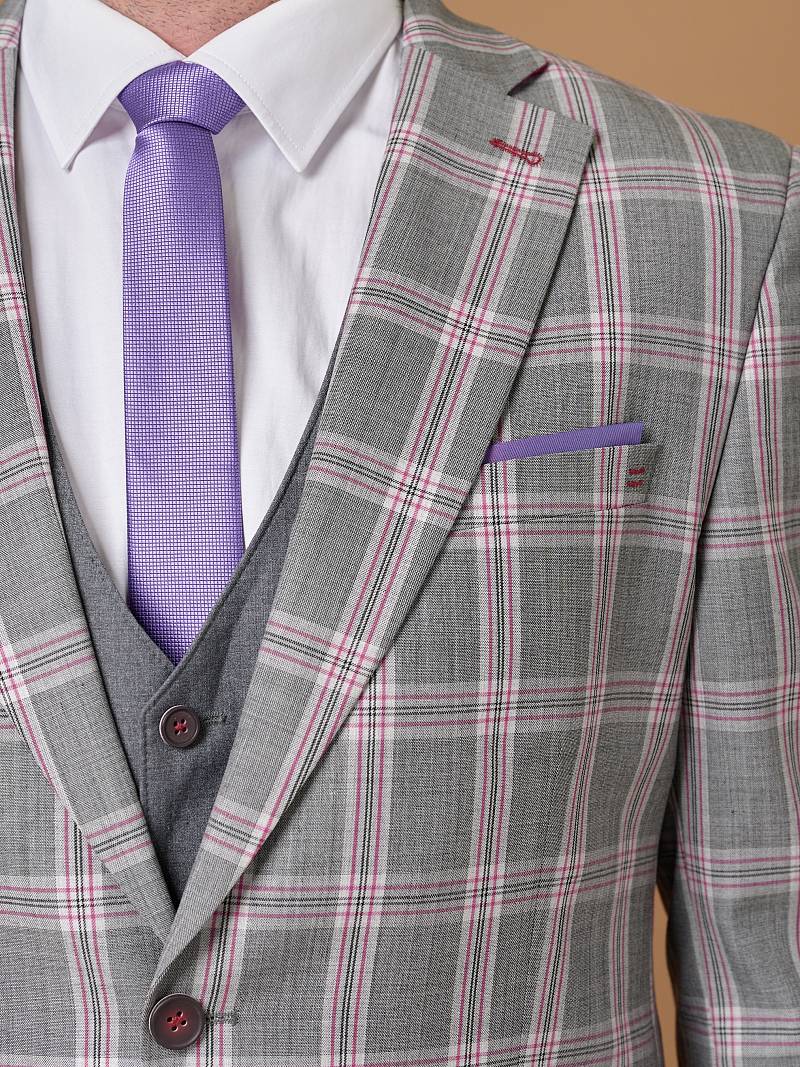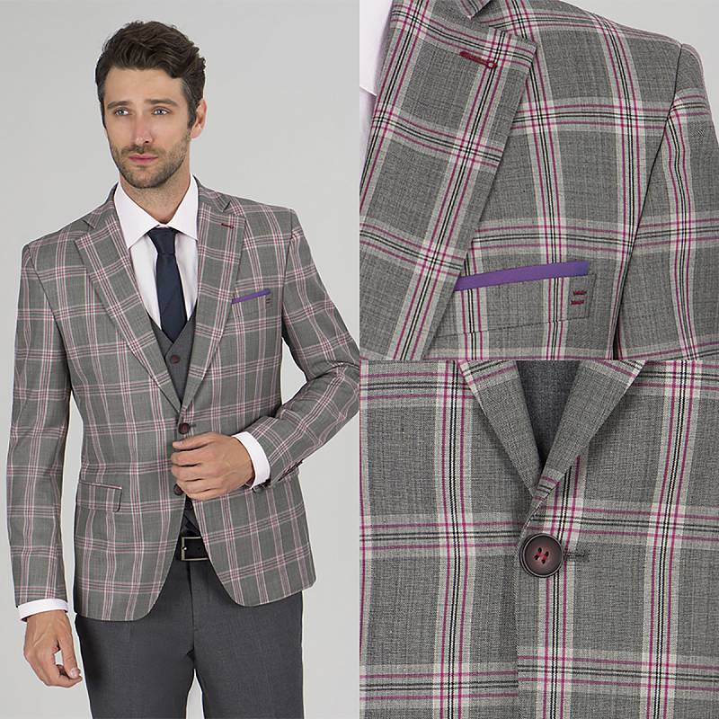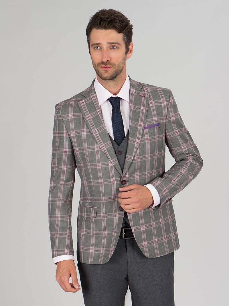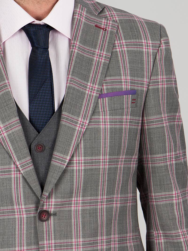 Классический костюм-тройка Slim fit. Пиджак на две пуговицы, с боковыми и нагрудным карманами, по спинке две шлицы. Брюки без защипов с боковыми и двумя задними карманами. Брюки и жилет выполнены из ткани компаньона.