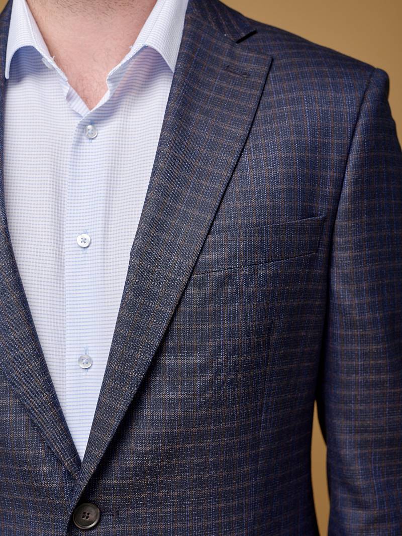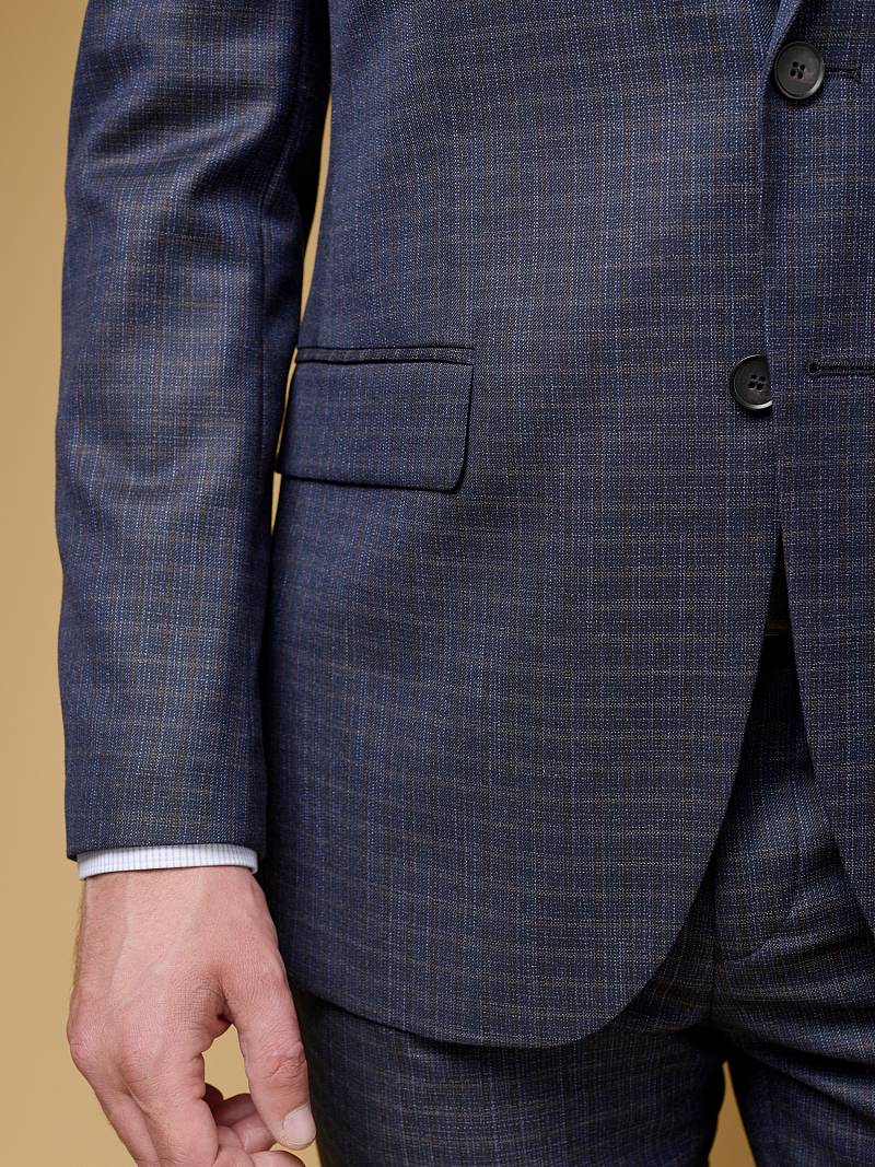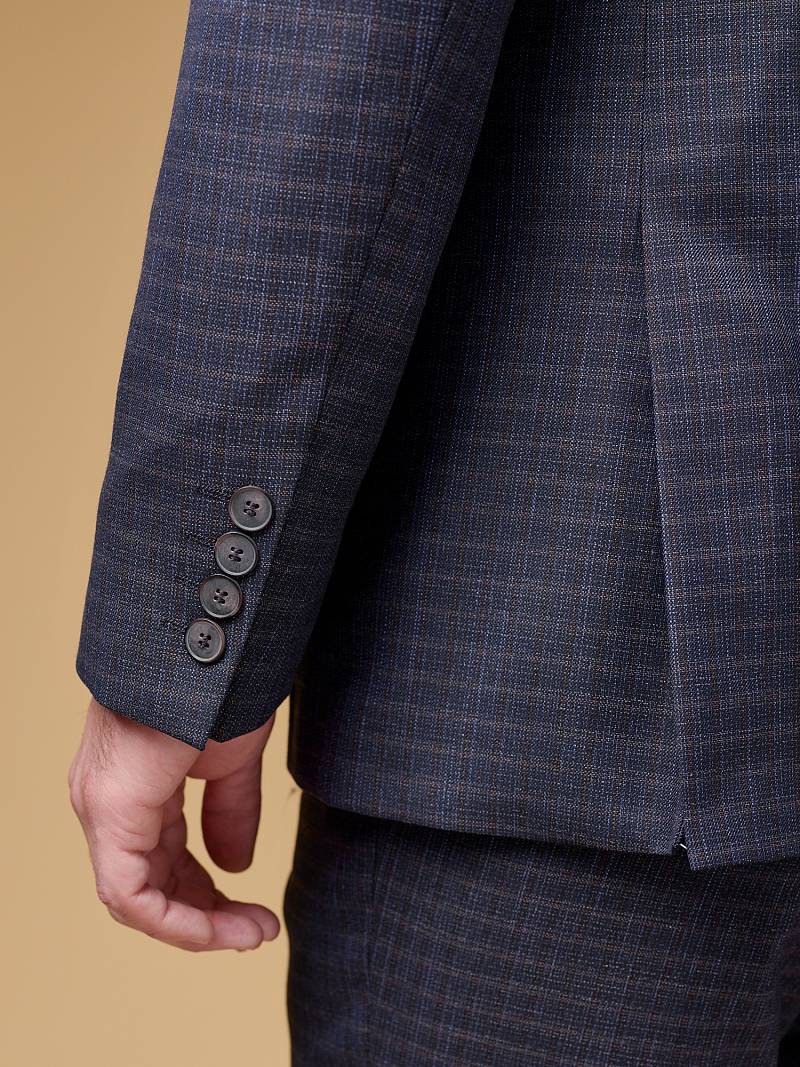 Классический костюм двойка Slim fit (ПРИЛЕГАЮЩИЙ СИЛУЭТ), рекомендуется брать на размер больше.Пиджак однобортный на две пуговицы, с двумя боковыми карманами с клапанами и нагрудной листочкой. Рукава втачные, двухшовные со шлицей и четырьмя декоративными пуговицами. По спинке расположены две шлицы. Пиджак на подкладке, с двумя внутренними карманами. Брюки без защипов, с боковыми наклонными карманами и двумя задними карманами «в рамку». Передние половинки на подкладке. Верхний срез брюк обработан поясом с корсажной лентой и шлевками под ремень. Застежка обработана на тесьму-молнию, с петлей-пуговицей на поясе и усилен металлическим крючком.