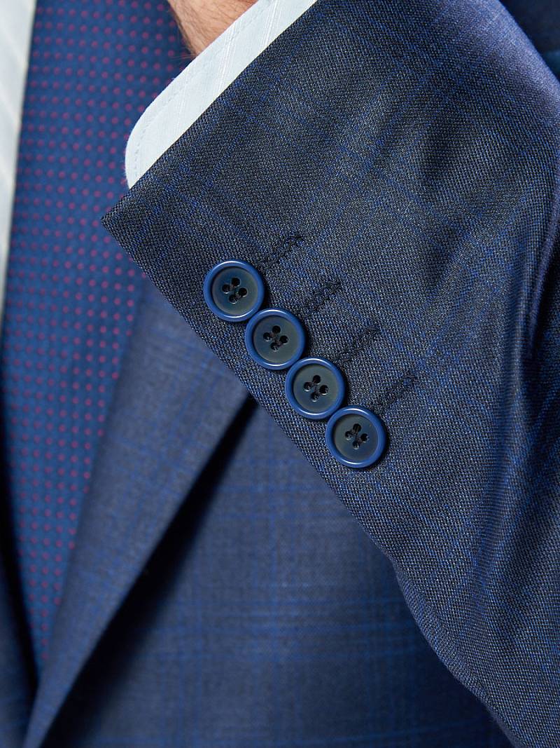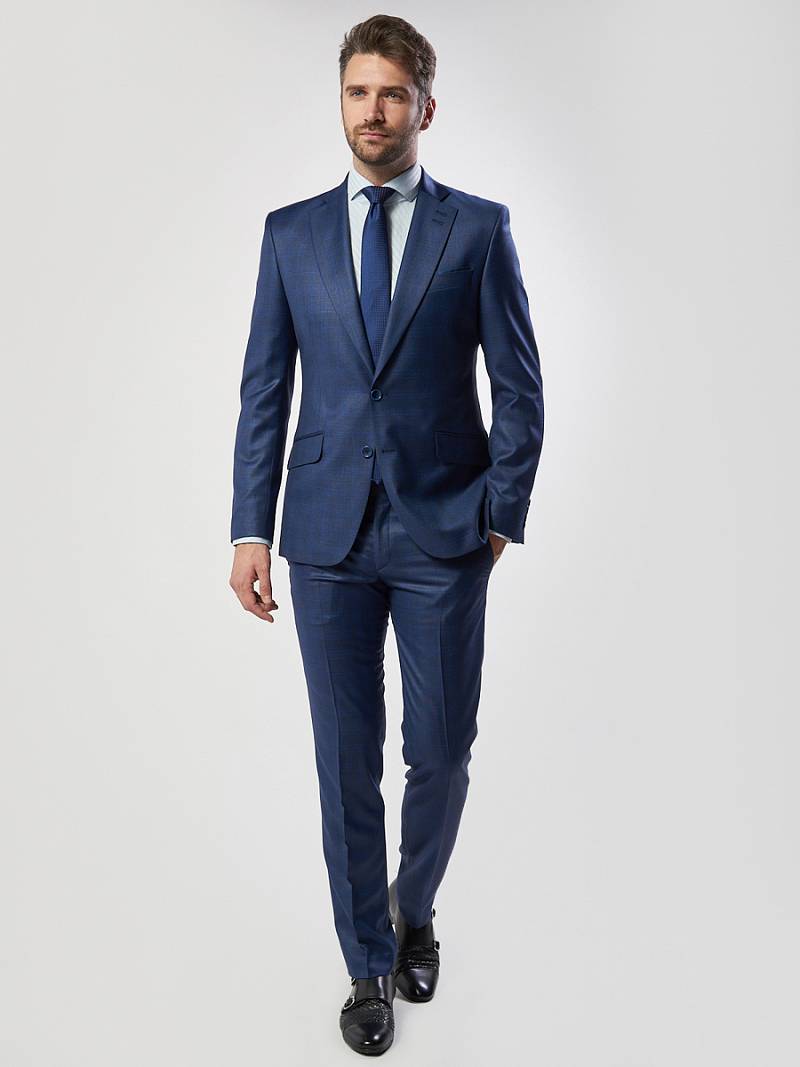 Классический костюм двойка Slim fit (ПРИЛЕГАЮЩИЙ СИЛУЭТ), рекомендуется брать на размер больше. Пиджак на две пуговицы, с боковыми и нагрудным карманами, по спинке две шлицы. Брюки без защипов с боковыми и двумя задними карманами.