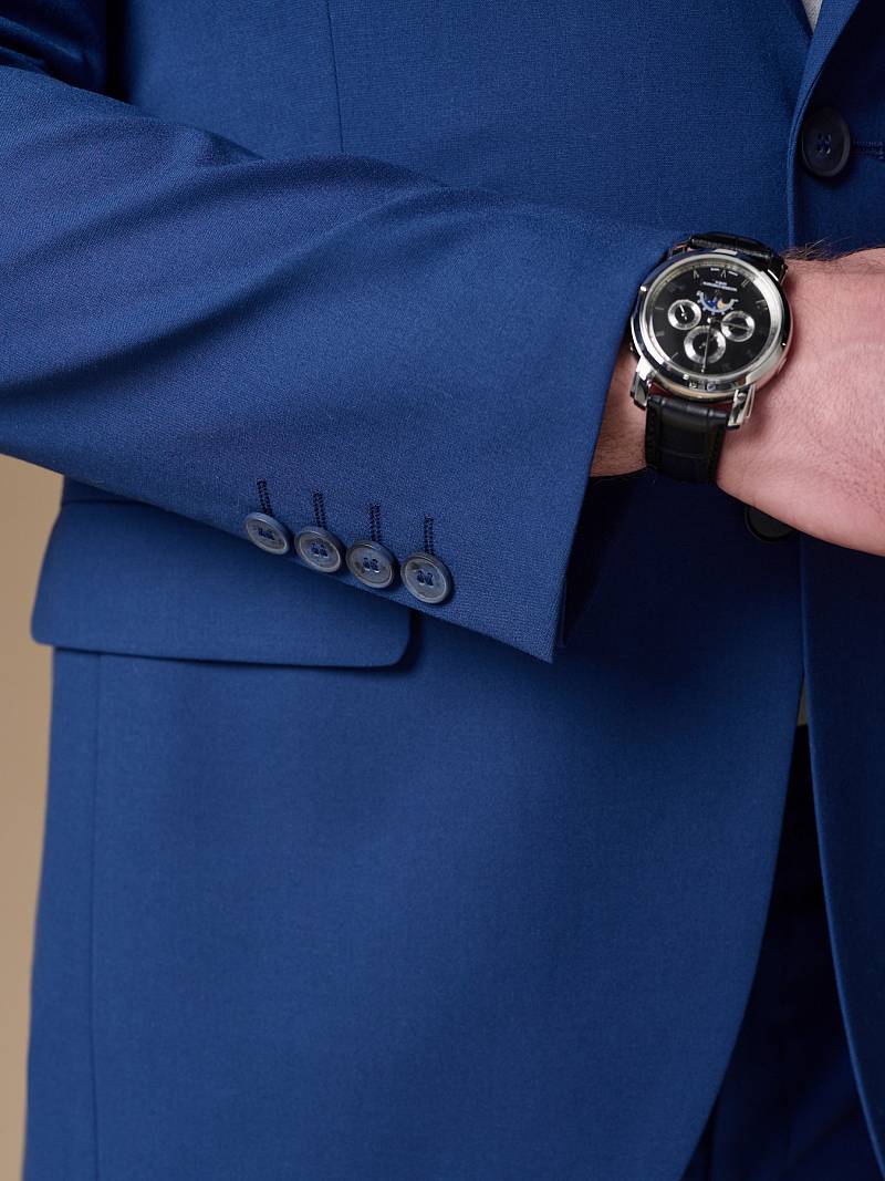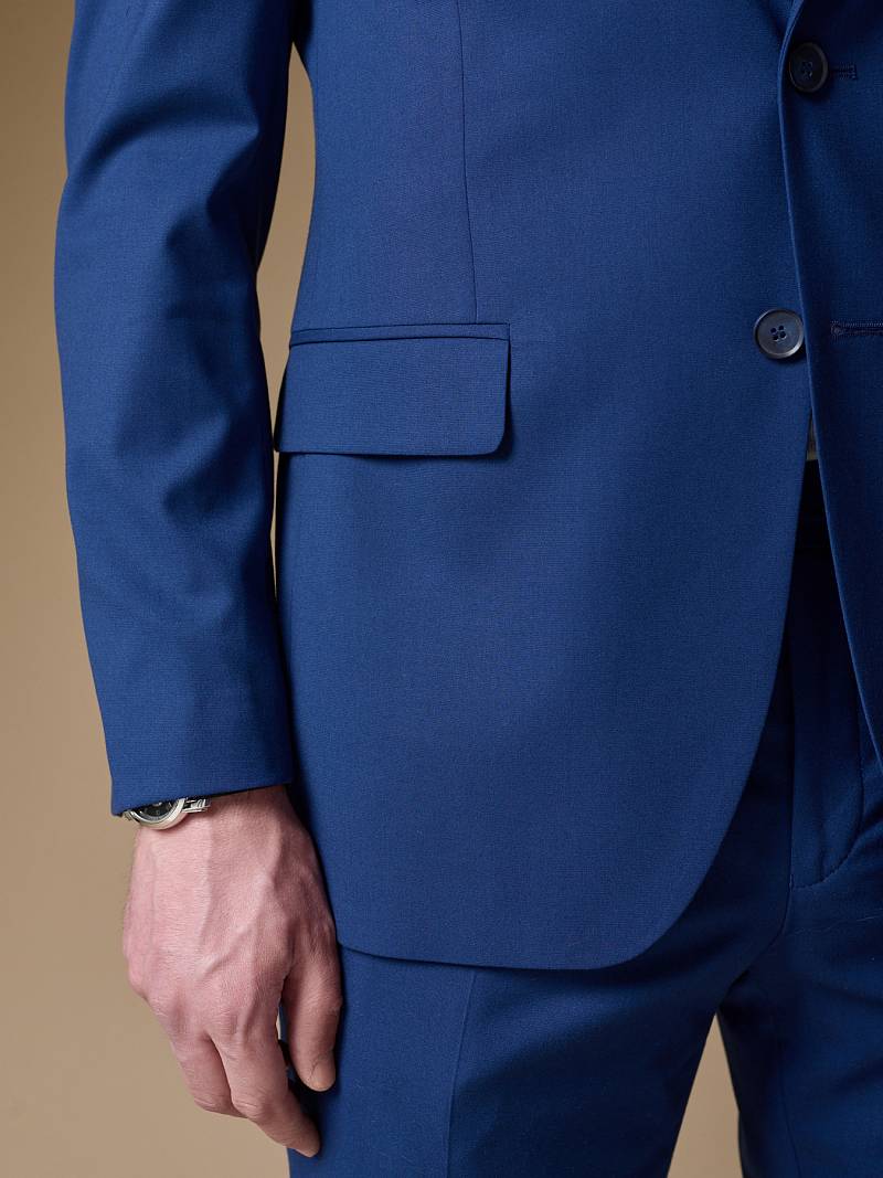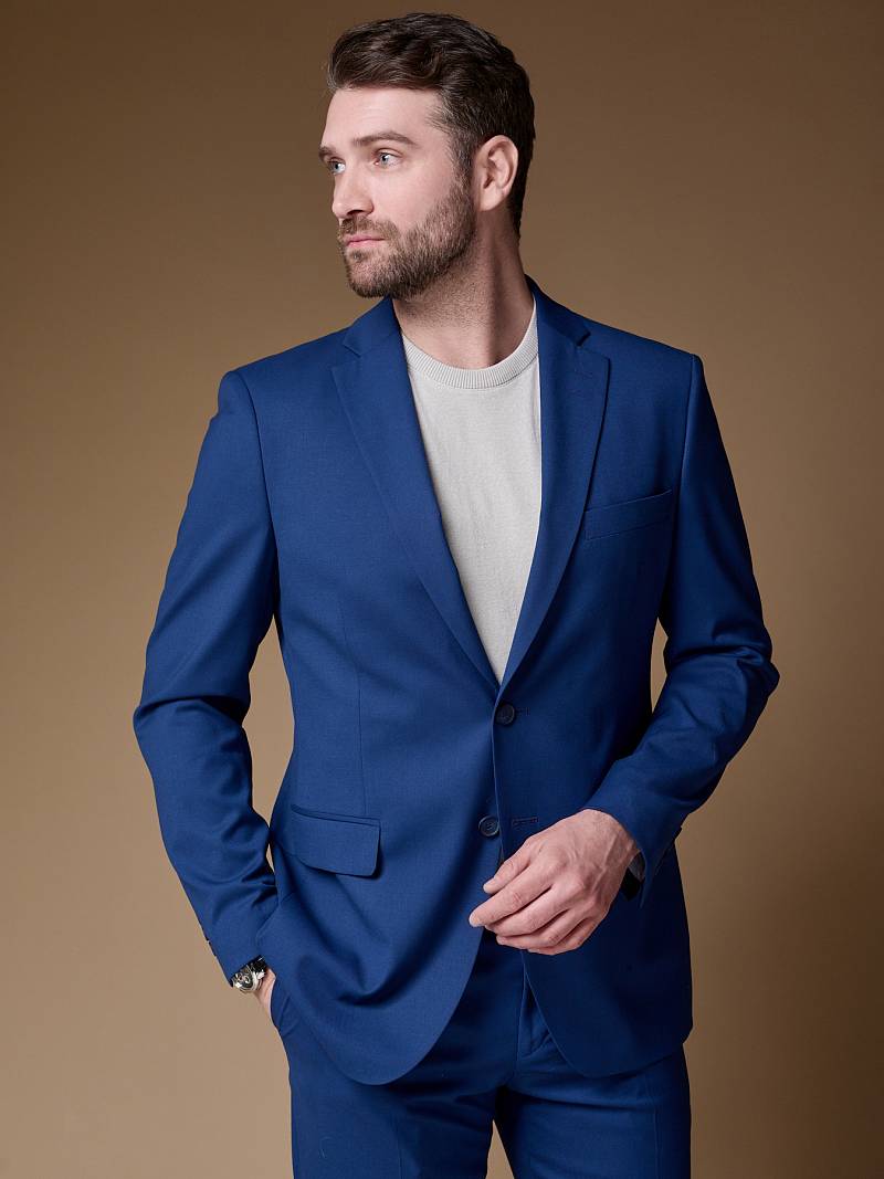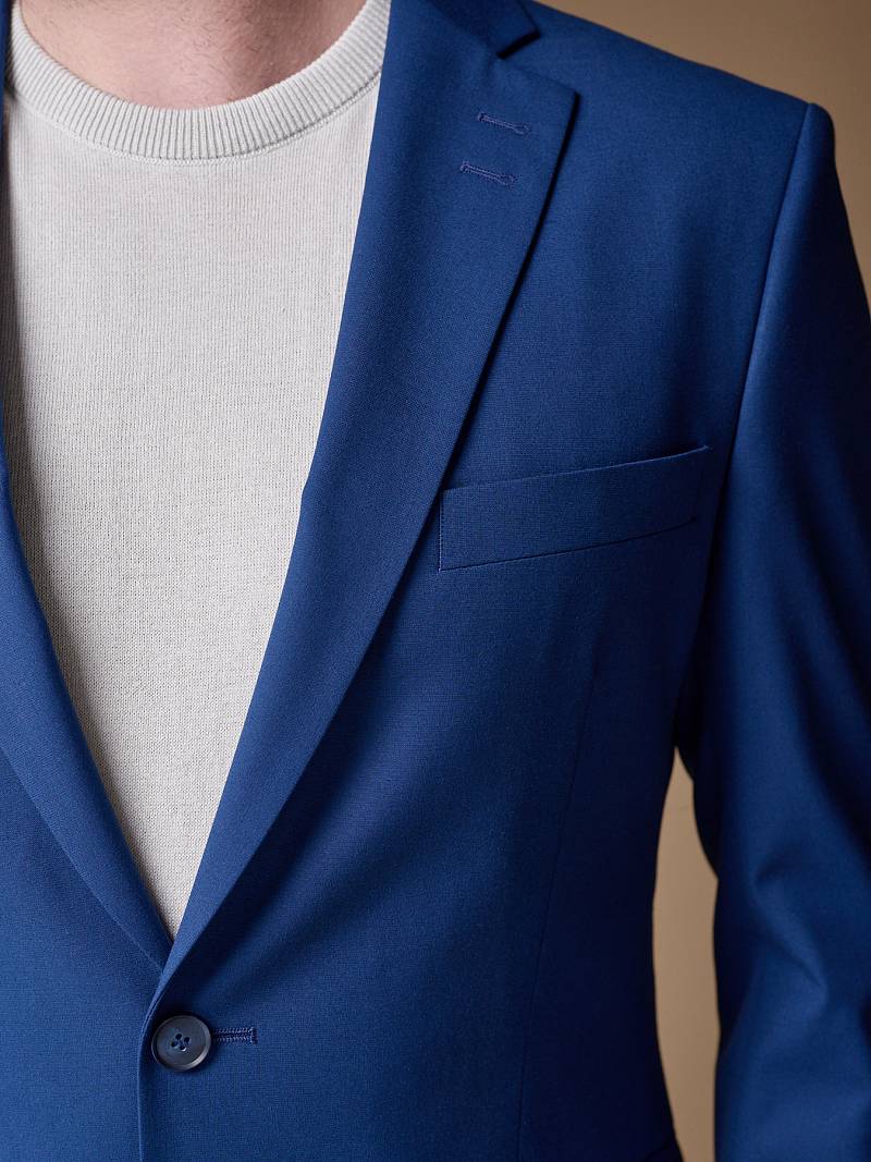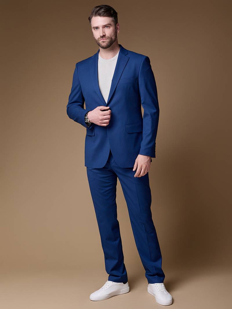 Классический костюм двойка Slim fit (ПРИЛЕГАЮЩИЙ СИЛУЭТ), рекомендуется брать на размер больше.Пиджак однобортный на две пуговицы, с двумя боковыми карманами с клапанами и нагрудной листочкой. Рукава втачные, двухшовные со шлицей и четырьмя декоративными пуговицами. По спинке расположены две шлицы. Пиджак на подкладке, с двумя внутренними карманами. Брюки без защипов, с боковыми наклонными карманами и двумя задними карманами «в рамку». Передние половинки на подкладке. Верхний срез брюк обработан поясом с корсажной лентой и шлевками под ремень. Застежка обработана на тесьму-молнию, с петлей-пуговицей на поясе и усилен металлическим крючком.