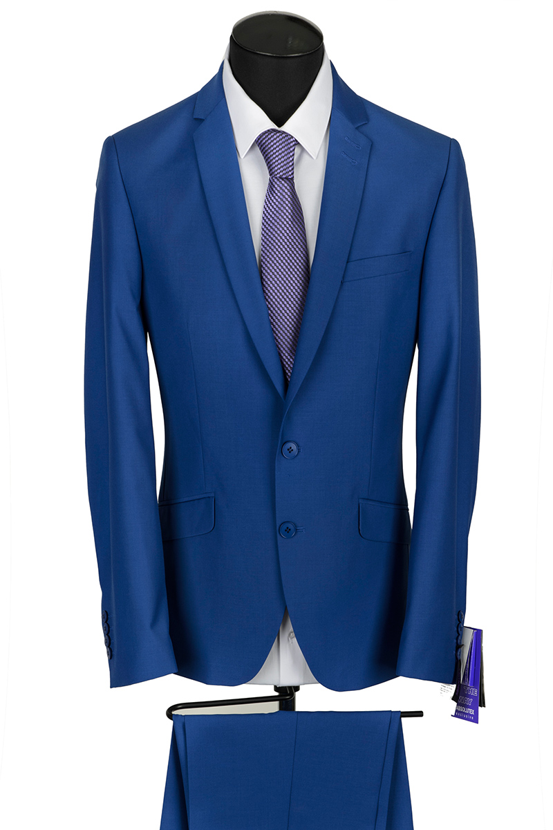 Костюм мужской Slim fit, 2 пуговицы, 2 шлицы,Вспушка по лацканам, воротнику, клапанам и нагрудной листочке.