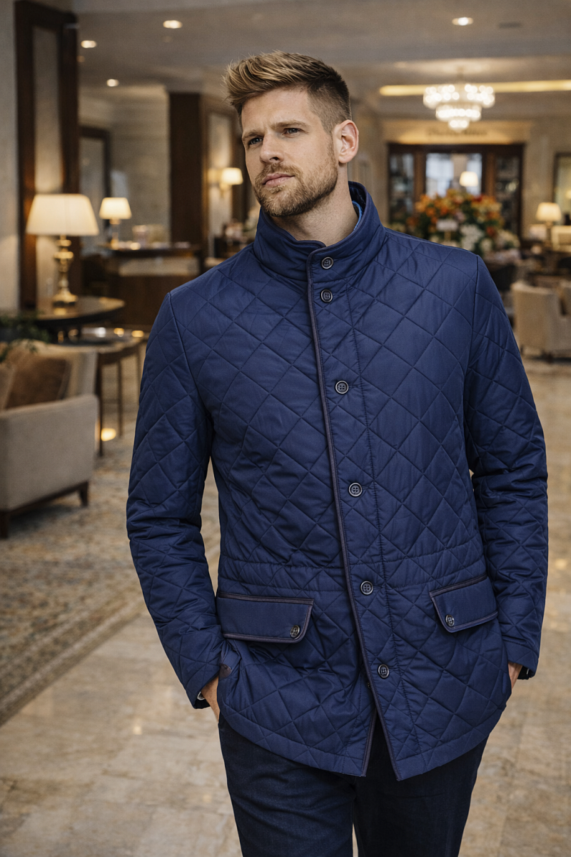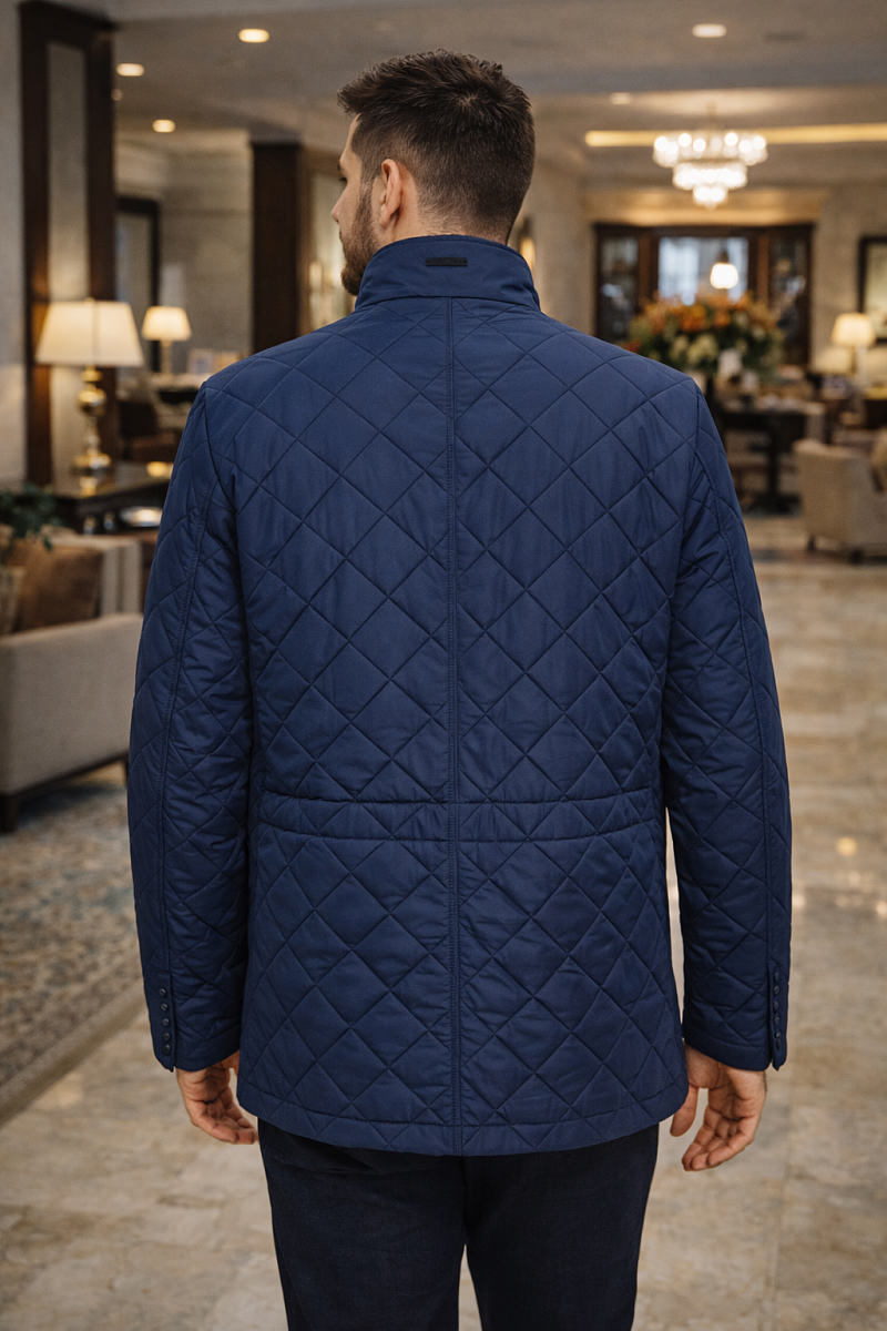 Куртка мужская из стеганой ткани с отделкой из замши, с налокотниками, Длина по спинке для размера 50/176 - 74см. Ткань верха: 100%полиэстер. Подкладка: 100%полиэстер. Утеплитель: термоплюс 100 гр.