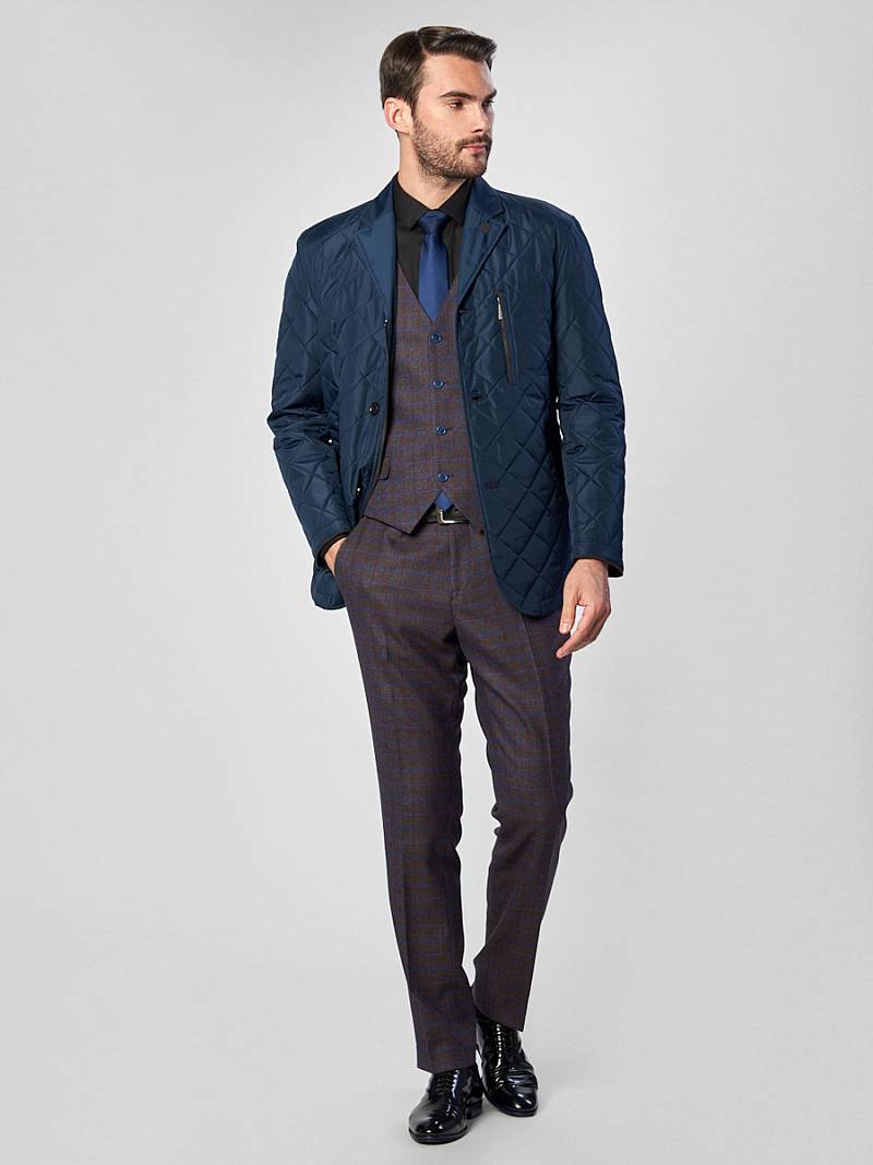 Куртка мужская из стеганой ткани с отделкой из замши, Длина по спинке для размера 50/176 - 77см. Ткань верха: 100%полиэстер. Подкладка: 100%полиэстер. Утеплитель: термоплюс 100 гр.