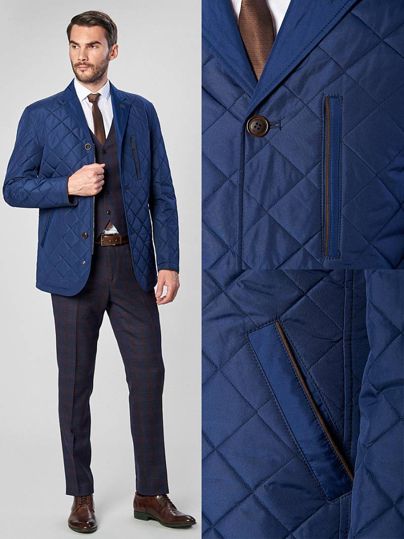 Куртка мужская из стеганой ткани с отделкой из замши, Длина по спинке для размера 50/176 - 77см. Ткань верха: 100%полиэстер. Подкладка: 100%полиэстер. Утеплитель: термоплюс 100 гр.