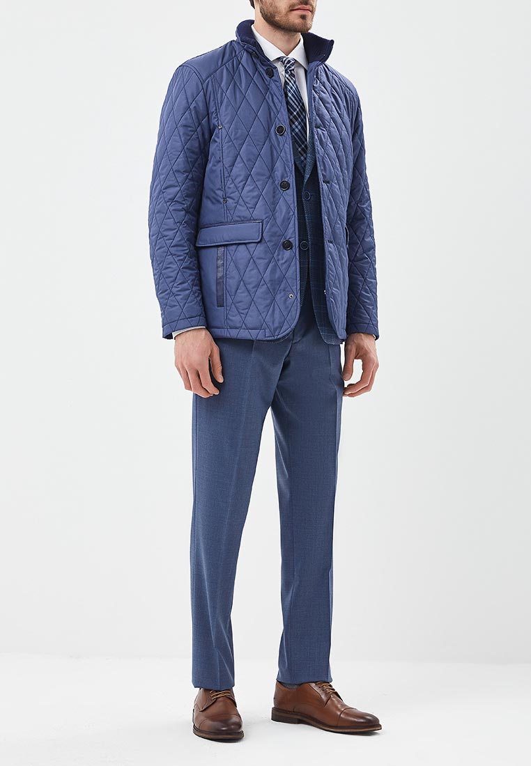 Куртка мужская из стеганой ткани. Отделочная ткань-листочки боковых карманов, отделочная деталь стойки воротника, рамки кармана с клапаном, налокотники. Центральная застежка на пуговицы. Воротник-стойка, с внутренней стороны стойка из мягкого трикотажа. Боковые карманы "в шве" с листочкой и "в рамку" с клапаном. Нагрудные карманы "в шве" на магнитах, Спинка со средним швом и шлицей на потайной кнопке. Рукава втачные. На левом рукаве и клапане-нашивки с логотипом. Два внутренних кармана на молниях. Длина изделия по спинке для роста 176 - 76см. Ткань верха: 100%полиэстер. Подкладка: 100%полиэстер. Утеплитель: термоплюс 100гр
