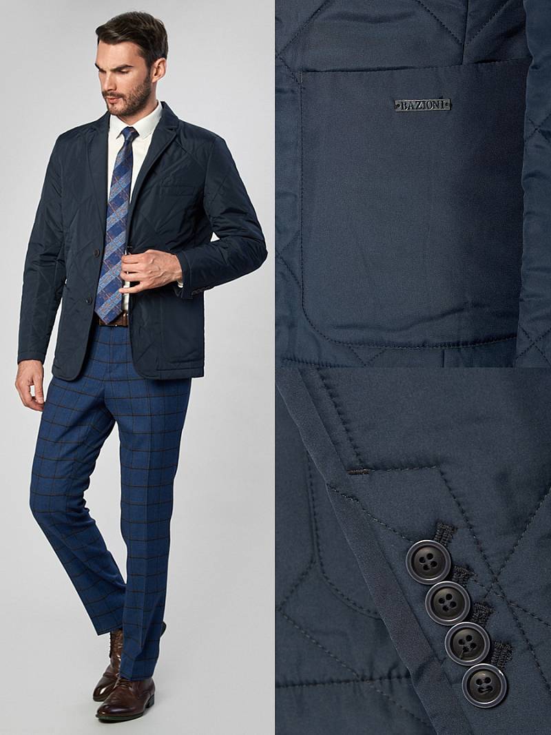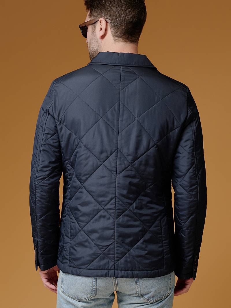 Куртка мужская стёганая без подкладки. Застёжка на 2 пуговицы. Карманы накладные, Воротник и лацкан классические. Длина изделия по спинке для роста 176 - 75см. Ткань верха: 100%полиэстер. Подкладка: 50% вискоза, 50% полиэстер. Утеплитель: термоплюс 100гр