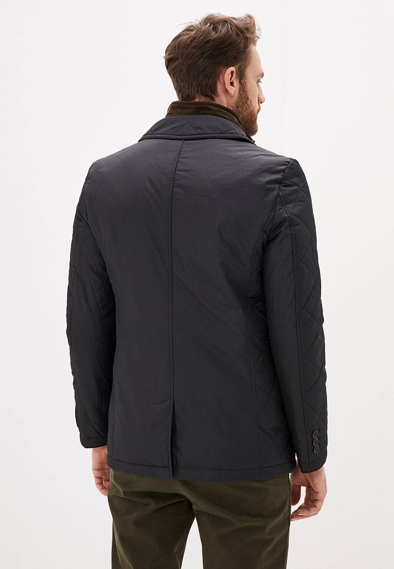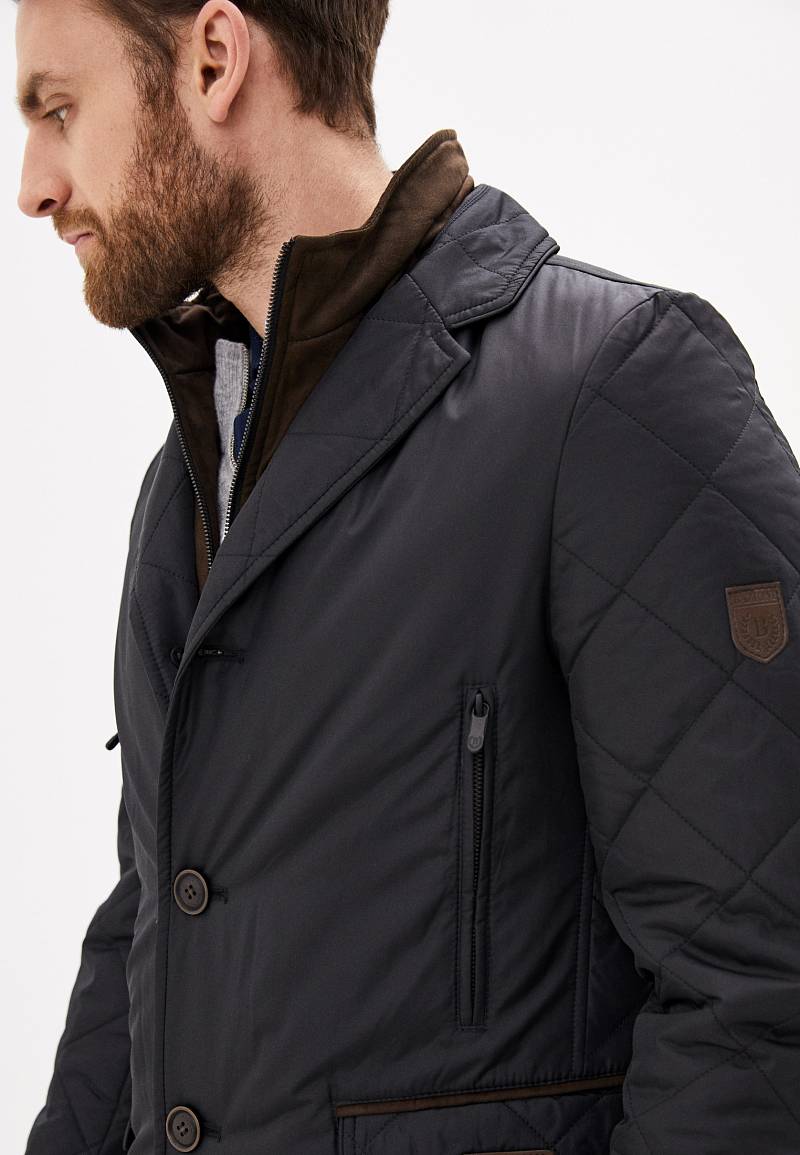Мужская куртка-пиджак из плащевой ткани с лацканами и манишкой на молнии. застёжка на пуговицы, Рукава, воротник, лацканы, боковые части, клапаны из-стеганной ткани. Воротник - на манишке-стойка, Карманы нагрудные-"в рамку" с молнией, боковые карманы-"в рамку" с клапаном+боковые карманы "в шве". Нижний воротник из отделочной ткани. В среднем шве спинки -шлица на потайных кнопках. Длина изделия по спинке для роста 176 - 78см. Ткань верха: 100%полиэстер. Подкладка: 100%полиэстер. Утеплитель: термоплюс 120гр