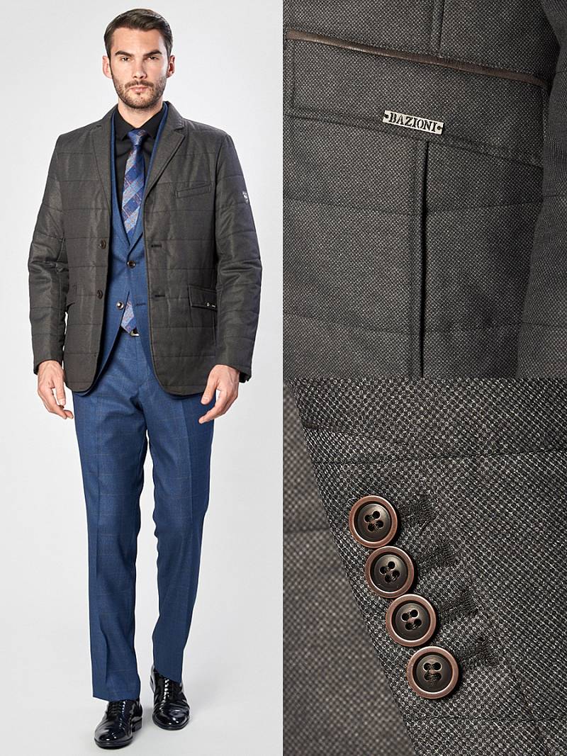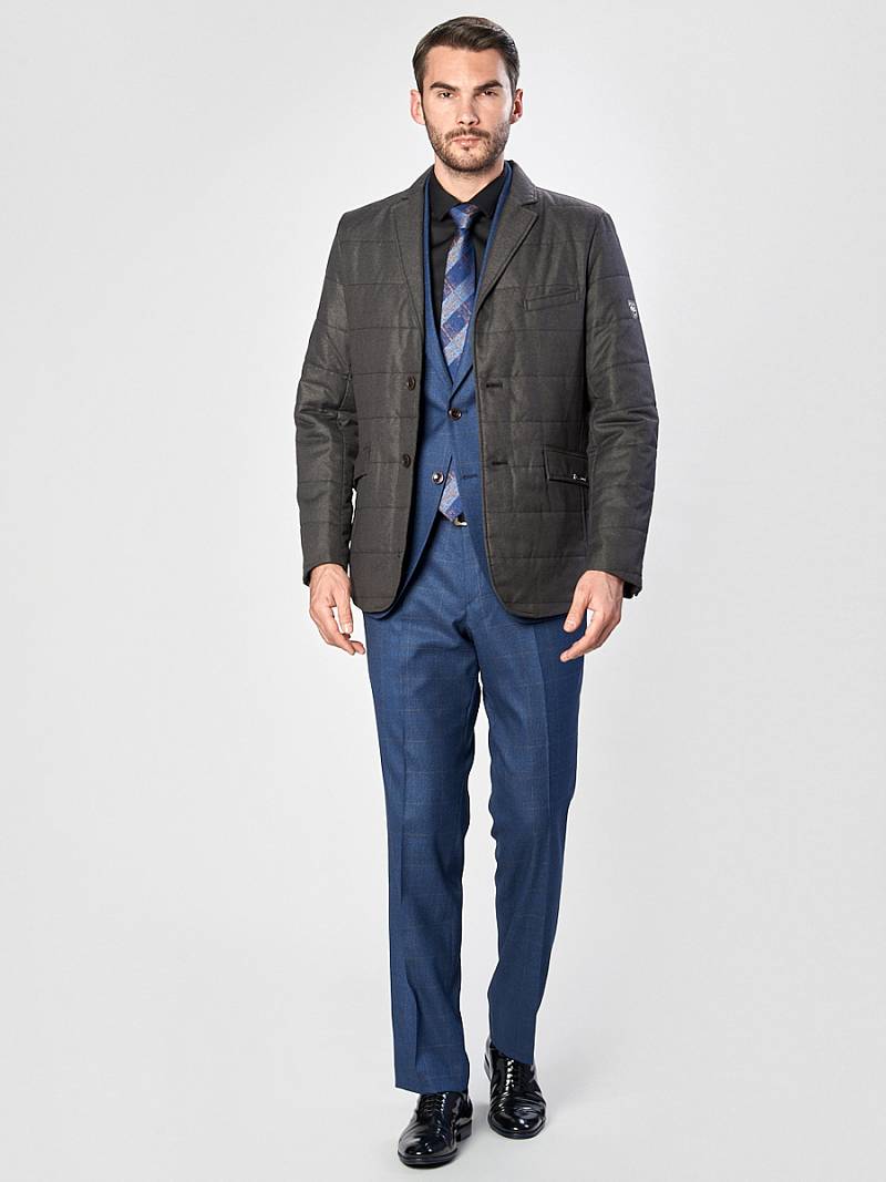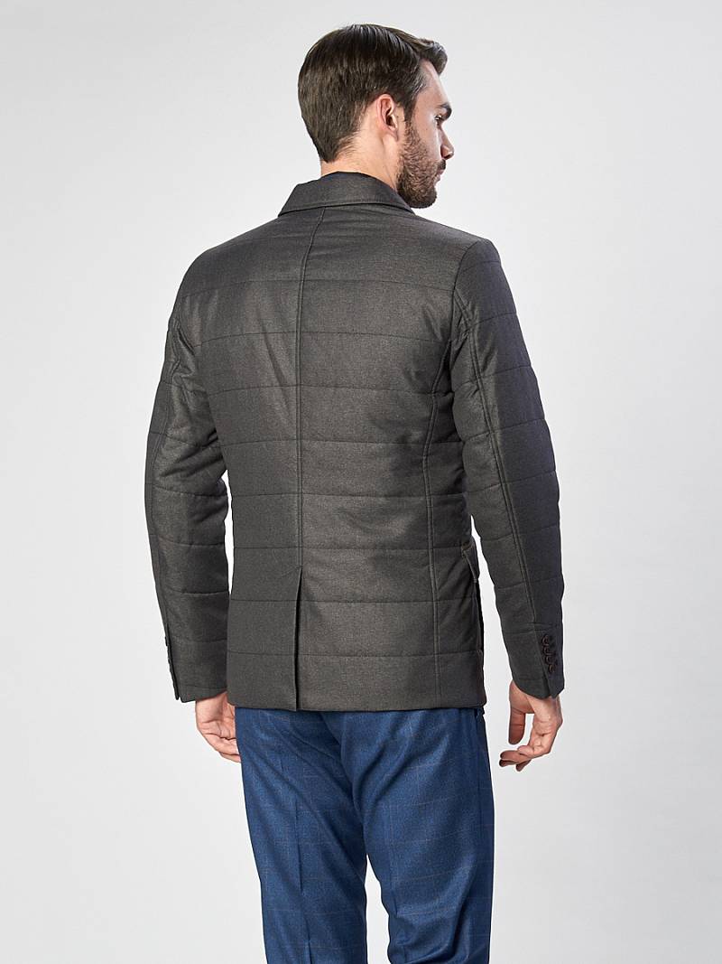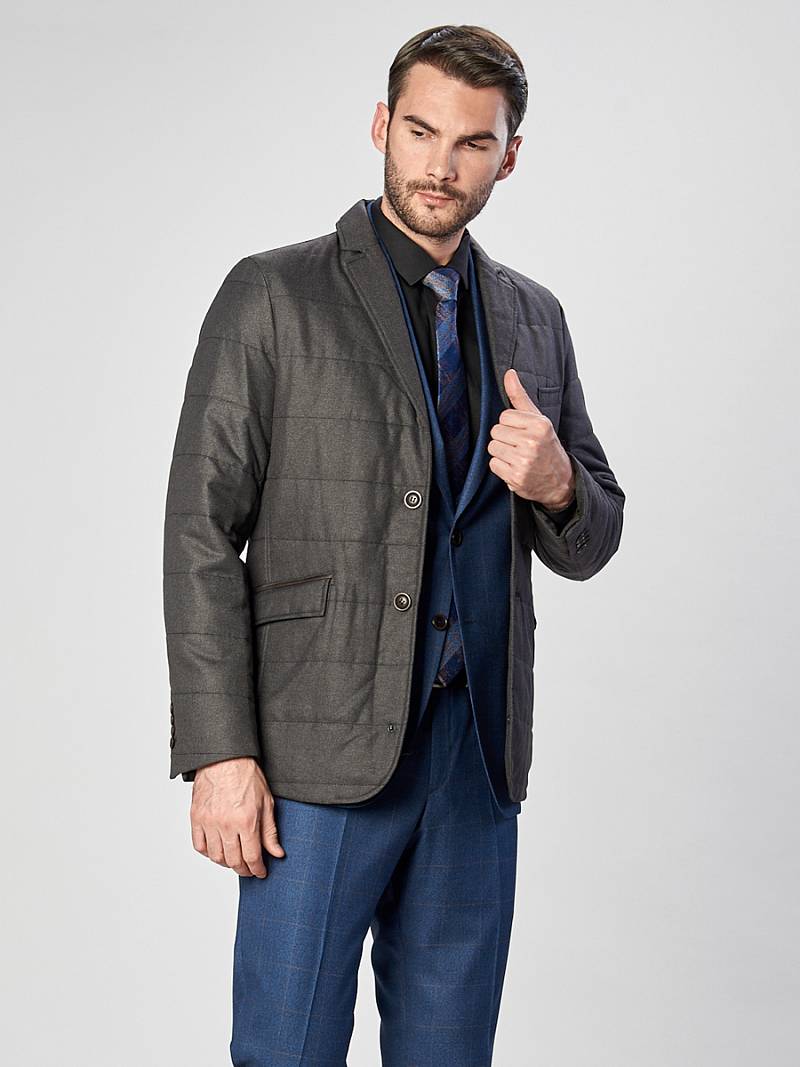 Куртка - пиджак мужской стёганый с утеплителем. Застёжка на пуговицы, Карманы с клапанами, верхний карман - с листочкой, Воротник - с лацканами. Длина изделия по спинке для роста 176 - 75см. Ткань верха: 100%полиэстер. Подкладка: 100%полиэстер. Утеплитель: термоплюс 100гр