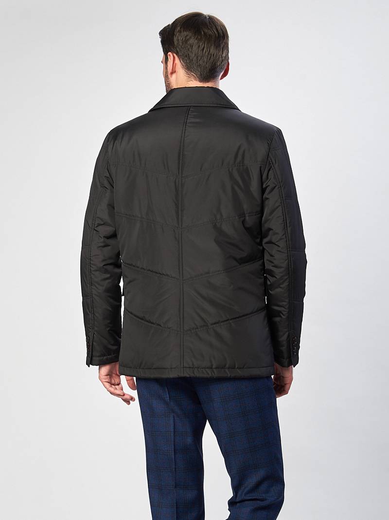 Куртка мужская из стеганой ткани, застёжка на пуговицы, воротник отложной, карманы с клапанами на магнитах.