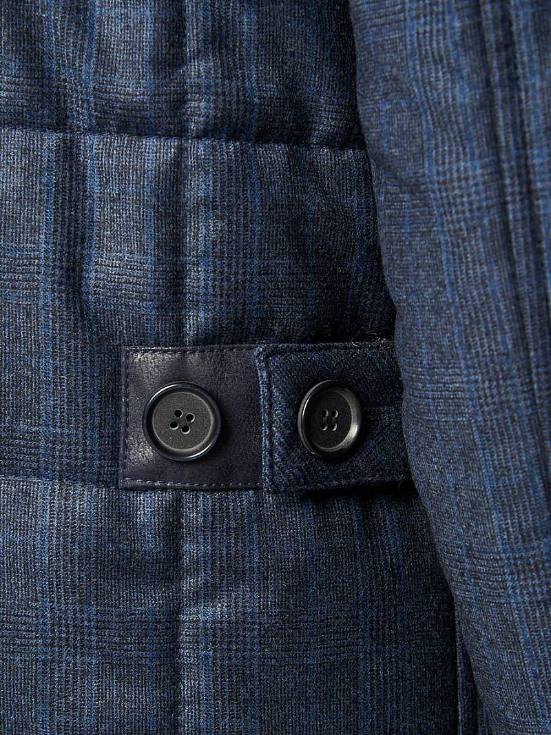 Куртка мужская из стеганой ткани, застёжка на пуговицы, Воротник стойка. Карманы листочки на магнитах. Вертикальная стежка на кокетках полочек и на рукавах в области налокотника. Нижняя деталь воротника, верхняя листочка и паты на спинке выполнены из отделочной ткани. Длина изделия по спинке для роста 50/176 - 78см. Ткань верха: 100%шерсть. Подкладка: 100%полиэстер. Утеплитель: 100гр