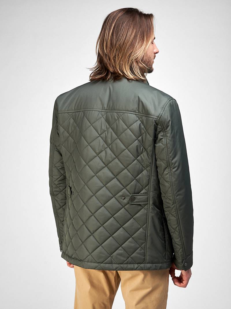 Куртка мужская стеганная утепленная. Центральная застежка на молнию закрытую ветрозащитной планкой на кнопках. Воротник-стойка. Полочка и спинка с отрезными кокетками. На полочках накладные боковые карманы с клапаном и 1 нагрудный карман с молнией. Рукав втачной двухшовный, в нижней части манжеты рукава на кнопках. В области талии на спинке расположены паты регулирующие обхват талии. Длина изделия по спинке для роста 176 - 75см. Ткань верха: 100%полиэстер. Подкладка: 100%полиэстер. Утеплитель: термоплюс 100гр