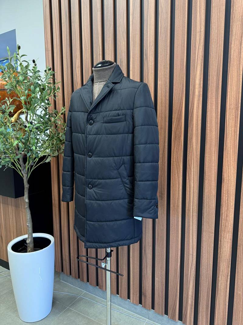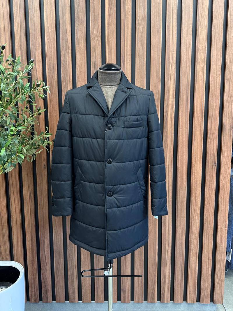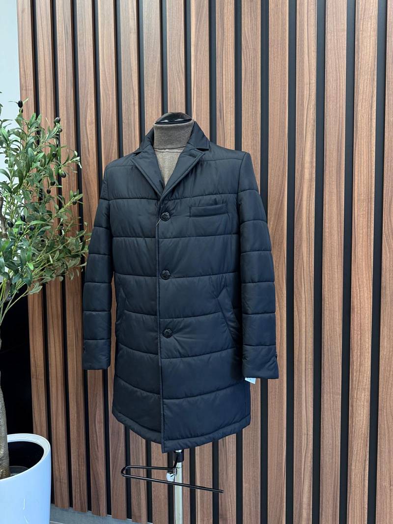 Мужская куртка - пальто утепленная с английским воротником - лацканами, из плащевой пуходержащей ткани c водоотталкивающей пропиткой, которая защищает от ветра, холода и дождя. Ткань верха плотная, практичная, не мнется. Застежка изделия на пуговицы. Полочки и спинка простеганы, на полочках - два кармана с листочками на скрытых магнитах. Спинка со шлицей. Рукава втачные с локтевыми швами. На подкладке - два внутренних кармана на молнии для удобного хранения документов. Утеплитель в изделии характеризуется легким весом, гигиеничностью и гипоаллергенностью, высокими теплоизоляционными качествами, экологичностью и безопасностью. Эластичный материал позволяет комфортно двигаться. Он отталкивает воду и не промокает, сохраняет тепло. Изделие подходит для ежедневного пользования. Длина по спинке - 90см. Ткань верха: 100%полиэстер. Подкладка: 100%полиэстер. Утеплитель: термоплюс 150гр/150гр.