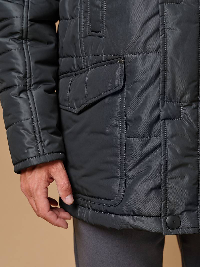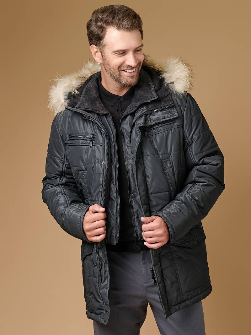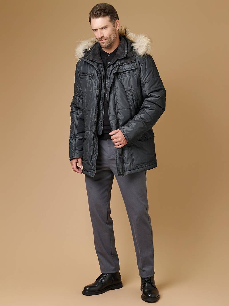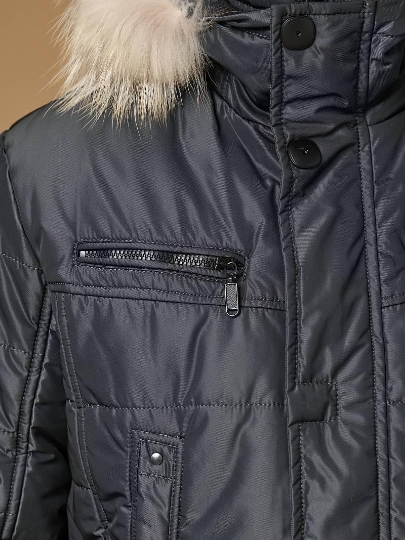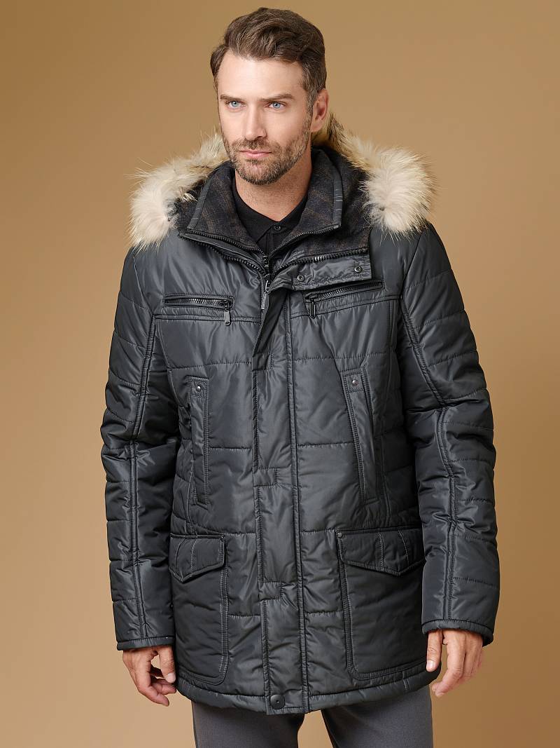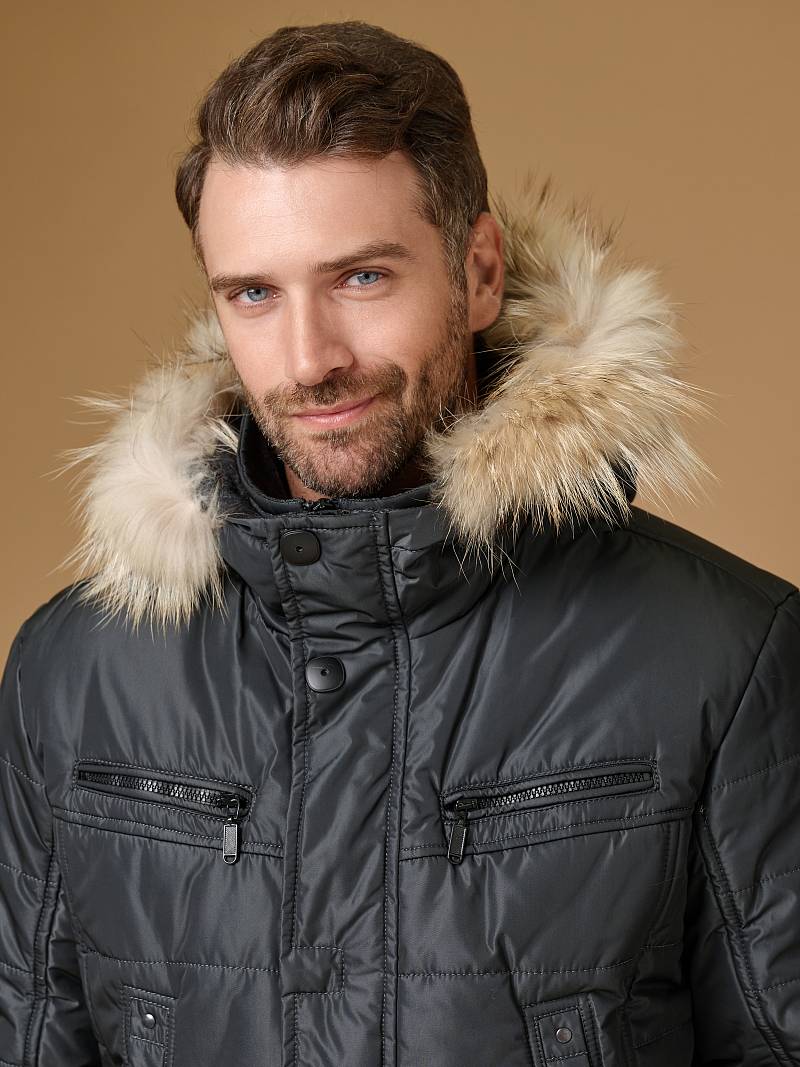 Куртка полуприлегающего силуэта с меховым капюшоном