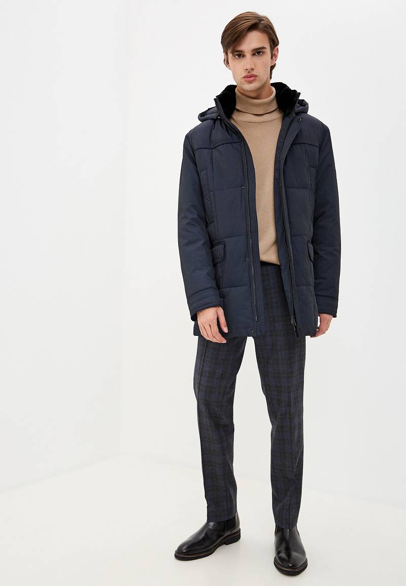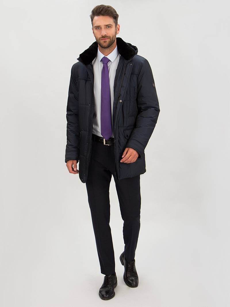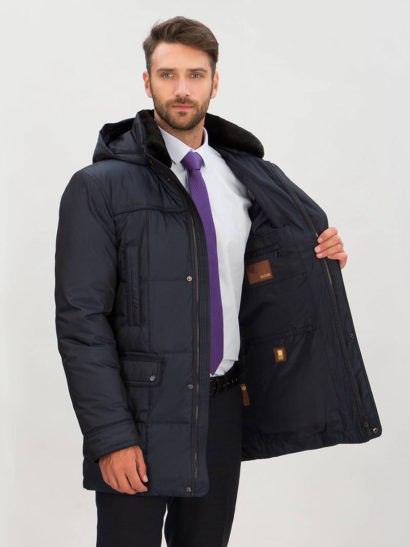 Куртка мужская утепленная с капюшоном из плащевой ткани, со съемным меховым воротником, воротник - стойка. с центральной застежкой на молнию и ветрозащитную планку на 4 кнопки. Простеганные полочки и спинка- с кокетками и бочками. На полочках - верхние карманы с листочками на молниях и два нижних боковых кармана: 1- с клапаном, 2-ой - с листочкой. Спинка -в нижней части среднего шва - шлица на 2-х кнопках. По талии спинки-притачная кулиса. Рукава втачные с локтевыми швами. По швам притачивания кокеток, краю листочек, клапанов, по низу рукавов, по кулисе на спинке - объемный отделочный кант. На подкладке - два внутренних кармана на молнии с листочками. Длина по спинке для размера 50/176 - 85см Ткань верха: 100% полиэстер. Подкладка: 100% полиэстер. Утеплитель: Лебяжий пух 220гр/м2/200гр/м2. Воротник: мех