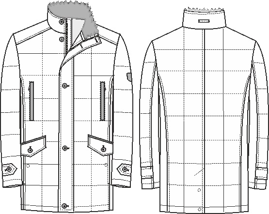 Куртка мужская утепленная со съемным меховым полушерстяным воротником - стойка. Центральная застежка изделия на молнию и ветрозащитную планку на 5 пуговиц. Полочки, спинка и рукава - простеганы стежкой "квадрат". На полочках - верхние прорезные карманы с листочками и нижние прорезные карманы с фигурными клапанами на пуговицу, также имеются карманы внизу рельефных швов. По низу рукавов расположена пата. На спинке - шлица, застегивается на 2 потайные кнопки. На подкладке по линии талии - настрочная фирменная тесьма. Длина изделия по спинке для роста 176 - 85см. Ткань верха: 100%полиэстер. Подкладка: 50% вискоза, 50% полиэстер. Утеплитель: термоплюс 200 гр.