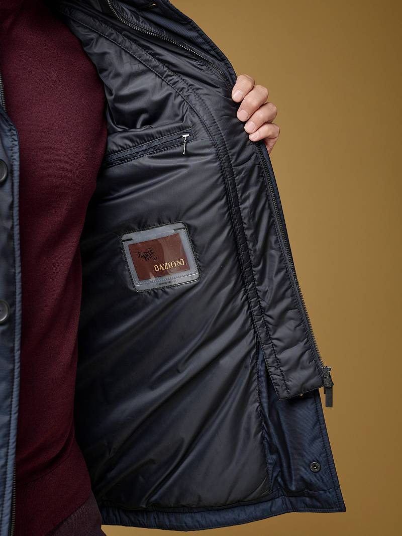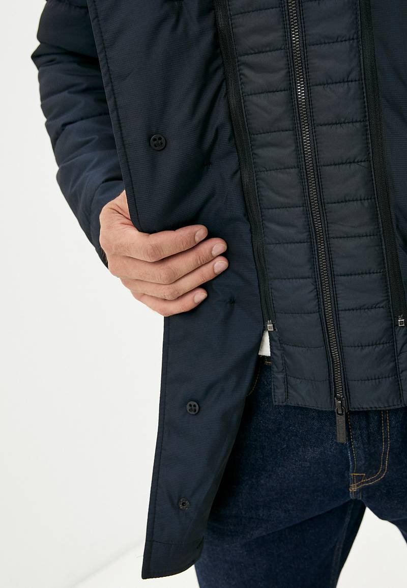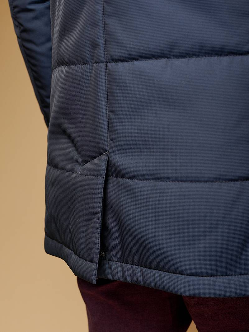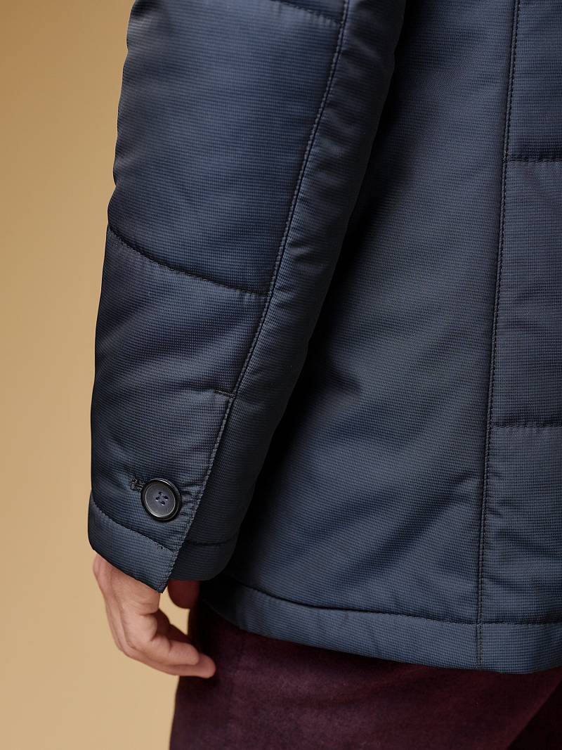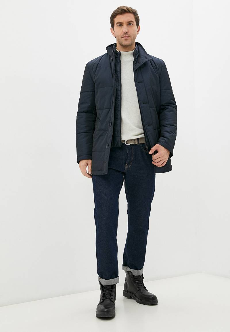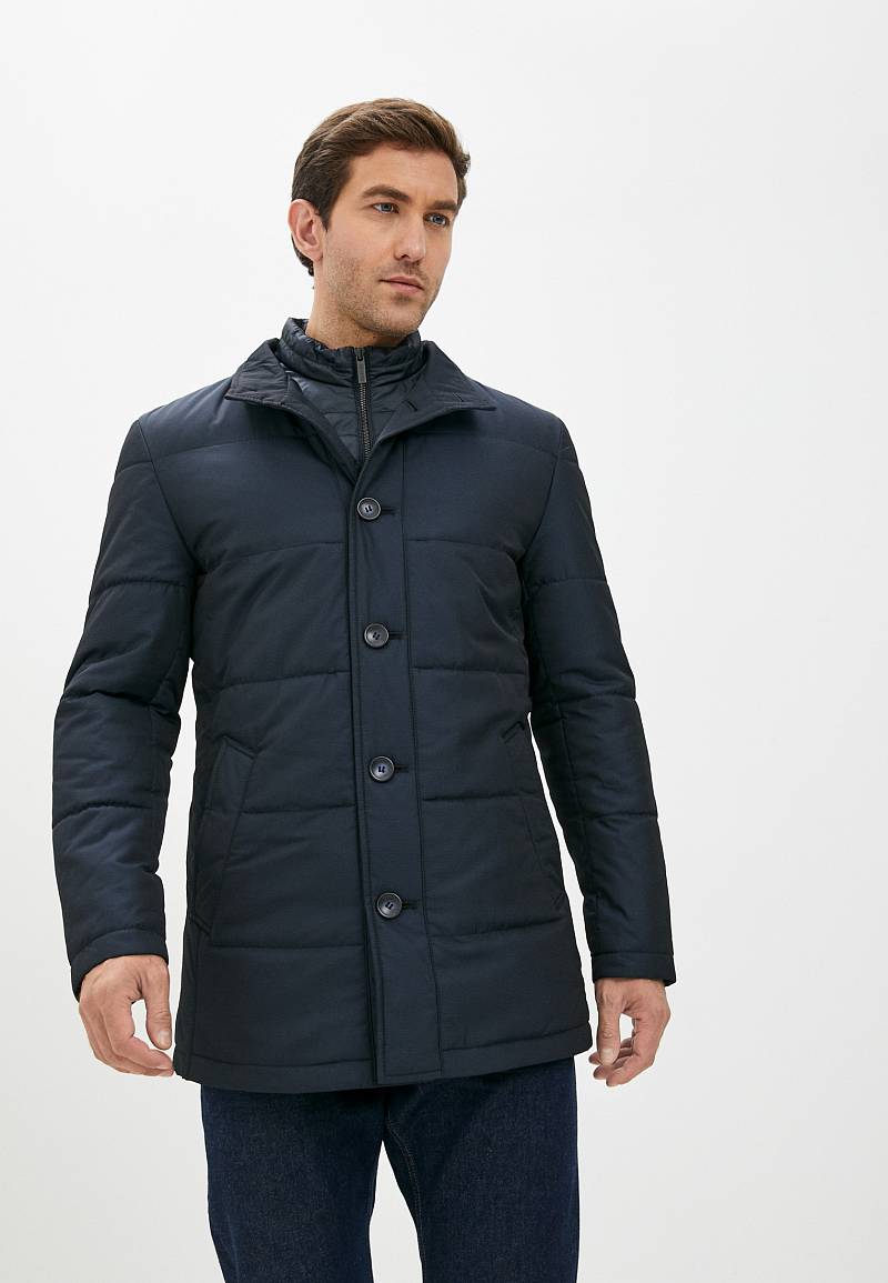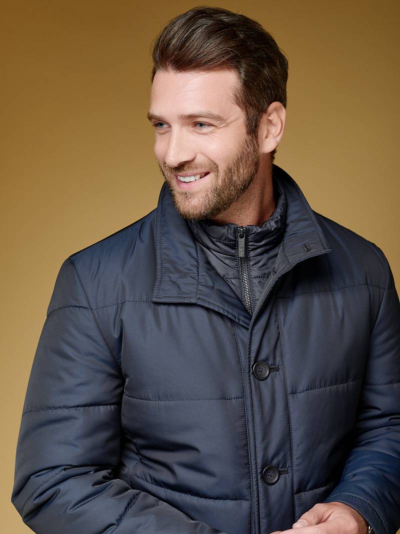 Куртка мужская утепленная с отстегивающийся манишкой на молнию. Застежка куртки на 6 пуговиц. Воротник - стойка. Полочки, спинка, рукава- простеганы горизонтальной стежкой. На полочках - два нижних боковых кармана с листочками. В нижней части среднего шва спинки- шлица на 2-х кнопках. Рукава втачные с локтевыми швами. На подкладке - два внутренних прорезных кармана на молниях. Длина по спинке для размера-роста 50/176 - 82см. Ткань верха: 100%полиэстер. Подкладка: 100%полиэстер. Утеплитель: термоплюс 200гр/160гр.