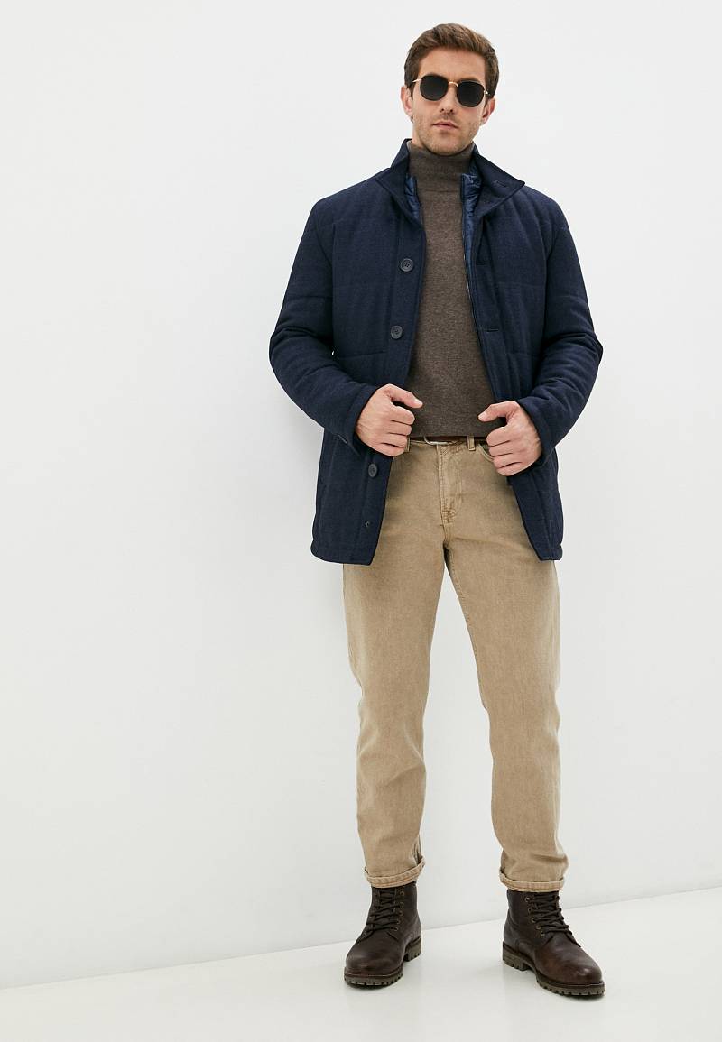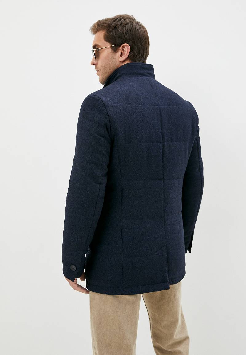 Куртка мужская утепленная с отстегивающийся манишкой на молнию. Застежка куртки на 6 пуговиц. Воротник - стойка. Полочки, спинка, рукава- простеганы горизонтальной стежкой. На полочках - два нижних боковых кармана с листочками. В нижней части среднего шва спинки- шлица на кнопке. Рукава втачные с локтевыми швами. На подкладке - два внутренних прорезных кармана на молниях. Длина по спинке для размера-роста 50/176 - 82см. Ткань верха: 100%шерсть. Подкладка: 100%полиэстер. Утеплитель: термоплюс 200гр/160гр.