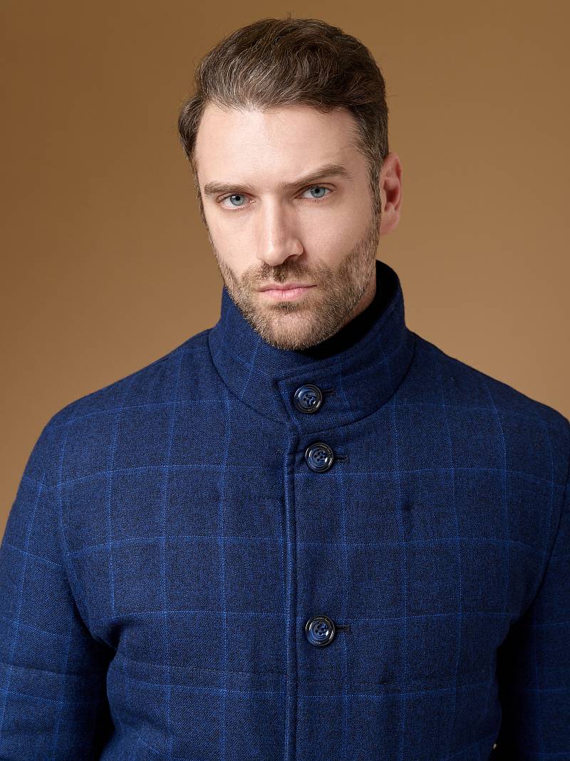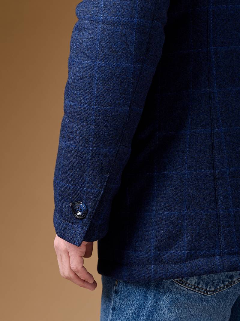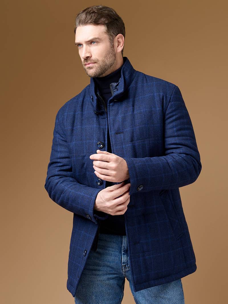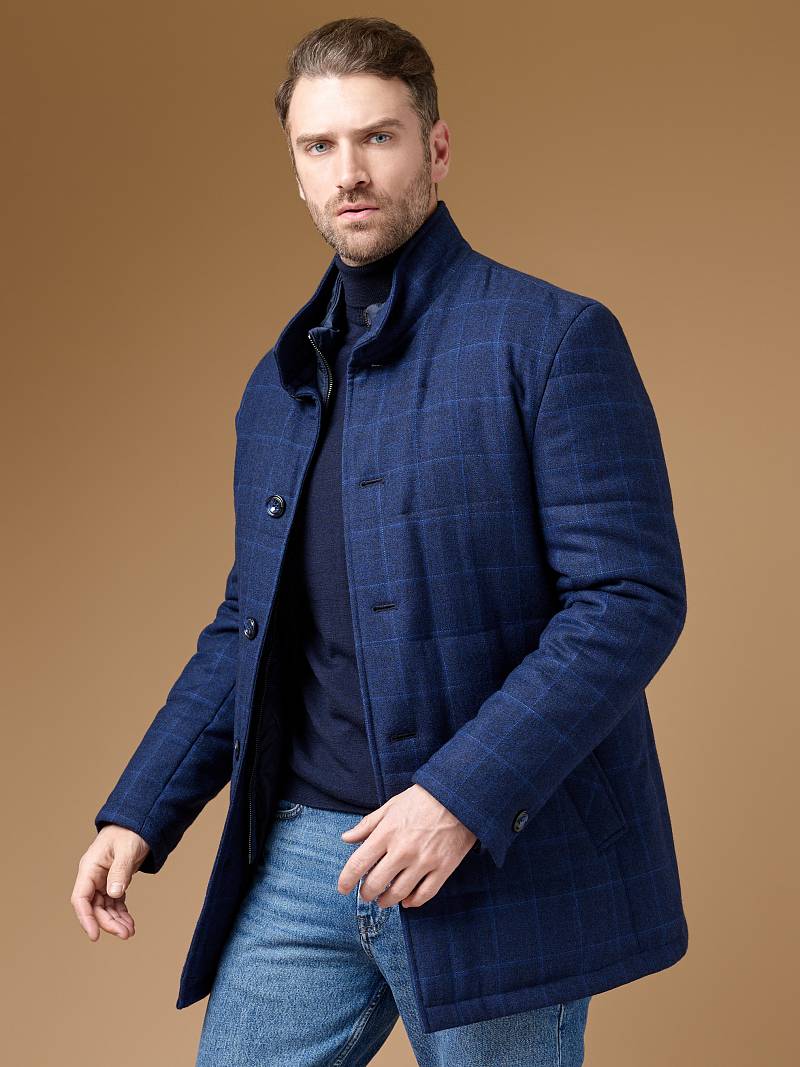 Куртка мужская утепленная с отстегивающийся манишкой на молнию. Застежка куртки на 6 пуговиц. Воротник - стойка. Полочки, спинка, рукава- простеганы горизонтальной стежкой. На полочках - два нижних боковых кармана с листочками. В нижней части среднего шва спинки- шлица на кнопке. Рукава втачные с локтевыми швами. На подкладке - два внутренних прорезных кармана на молниях. Длина по спинке для размера-роста 50/176 - 82см. Ткань верха: 100%шерсть. Подкладка: 100%полиэстер. Утеплитель: термоплюс 200гр/160гр.