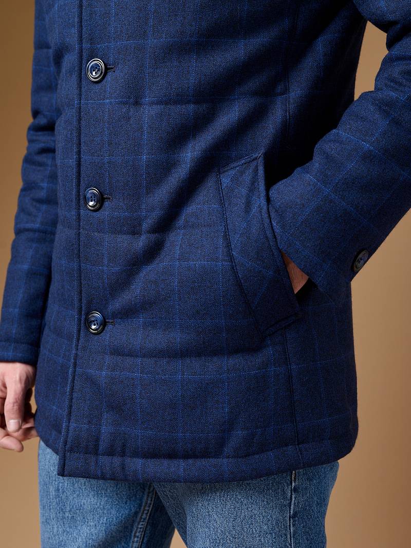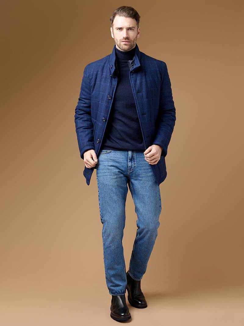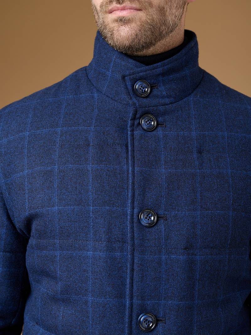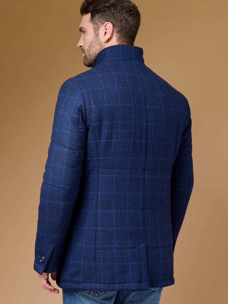Куртка мужская утепленная с отстегивающийся манишкой на молнию. Застежка куртки на 6 пуговиц. Воротник - стойка. Полочки, спинка, рукава- простеганы горизонтальной стежкой. На полочках - два нижних боковых кармана с листочками. В нижней части среднего шва спинки- шлица на кнопке. Рукава втачные с локтевыми швами. На подкладке - два внутренних прорезных кармана на молниях. Длина по спинке для размера-роста 50/176 - 82см. Ткань верха: 100%шерсть. Подкладка: 100%полиэстер. Утеплитель: термоплюс 200гр/160гр.