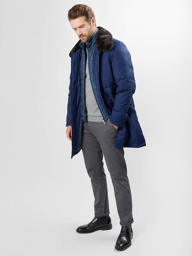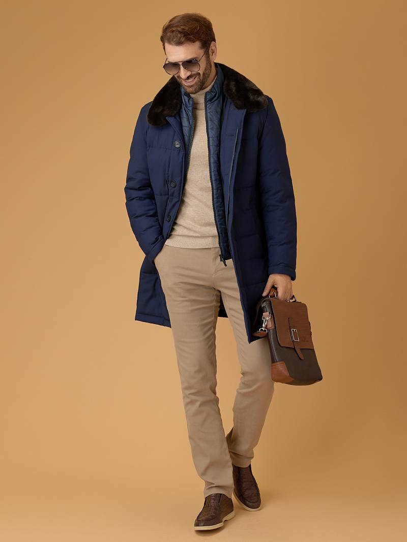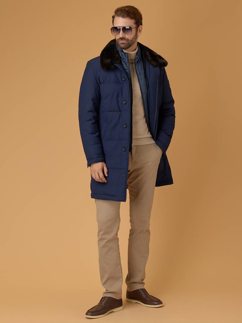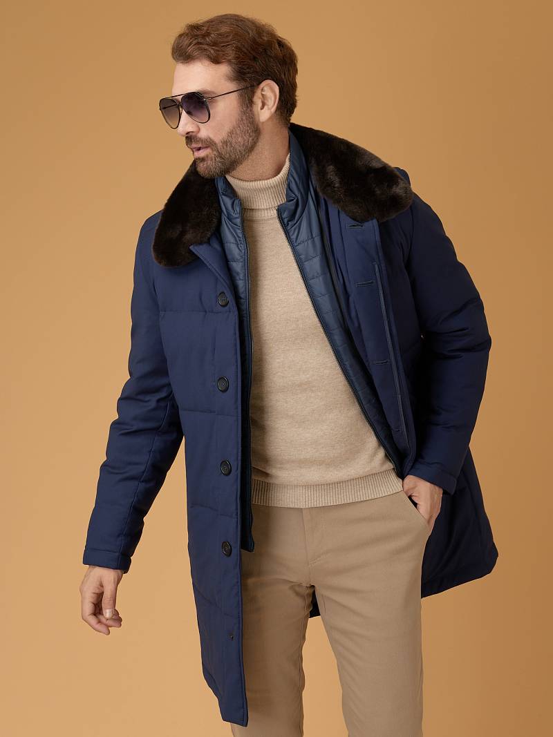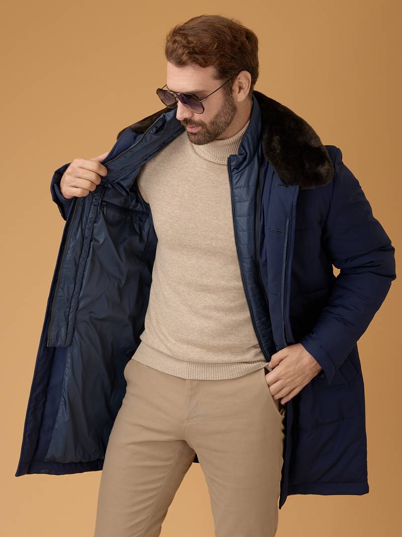 Удлиненная куртка-пальто придает владельцу уверенности в завтрашнем дне. Шерсть придает изделию эстетичный вид, а наполнитель био-пух хорошо сохраняет тепло. Его распределили по стеганым камерам, поэтому он греет равномерно и не сбивается во время чистки. Для максимальной защиты от холода изделие дополнили отложным меховым воротником из натурального меха и съемной манишкой, защищающей в непогоду. ДАННОЕ ИЗДЕЛИЕ НЕ ТОЛЬКО УКРАСИТ ВАШ ГАРДЕРОБ, НО И ПРИДАСТ ЭЛЕГАНТНОСТИ ВЛАДЕЛЬЦУ.