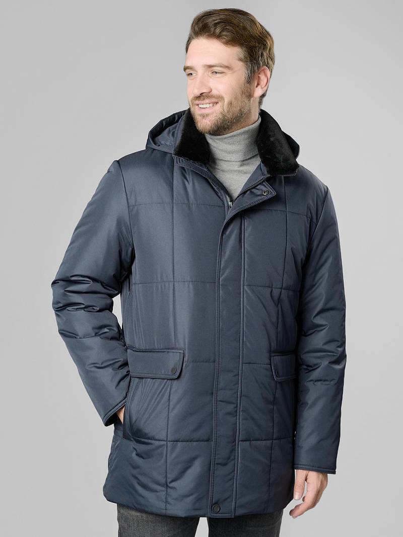 Куртка мужская утепленная из курточной ткани c водоотталкивающей пропиткой, которая защищает от ветра, холода и дождя. Ткань верха прочная, практичная, не мнется. Капюшон отстегивается. Воротник -стойка со съемным меховым воротником, плотно облегает шею, создает тепло и уют. Застежка изделия на молнию YKK и ветрозащитную планку. Молнии японской фирмы YKK прочные и имеют высокий цикл застегивания и расстегивания. Полочки и спинка простеганы, на полочках - два кармана с клапаном и два кармана с боковым входом на скрытых магнитах. Мешковина карманов из велюра, придает мягкость и создает тепло и комфорт в изделии. Спинка со шлицей. Рукава втачные с локтевыми швами. На подкладке - два внутренних прорезных кармана с листочками на молнии. Длина по спинке-85см. Ткань верха: 100%полиэстер. Подкладка: 100%полиэстер. Утеплитель: термоплюс 260гр/200гр. Воротник: мех.