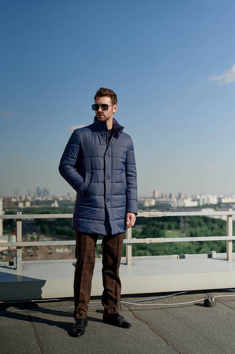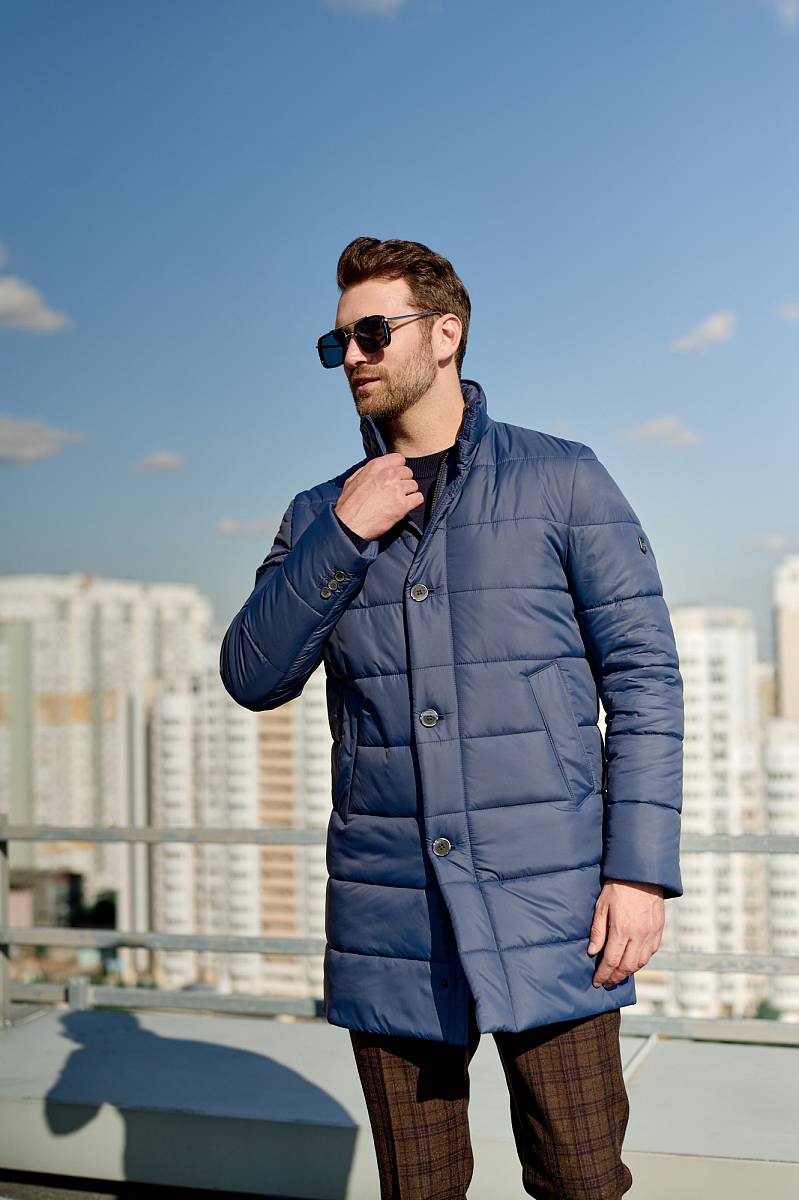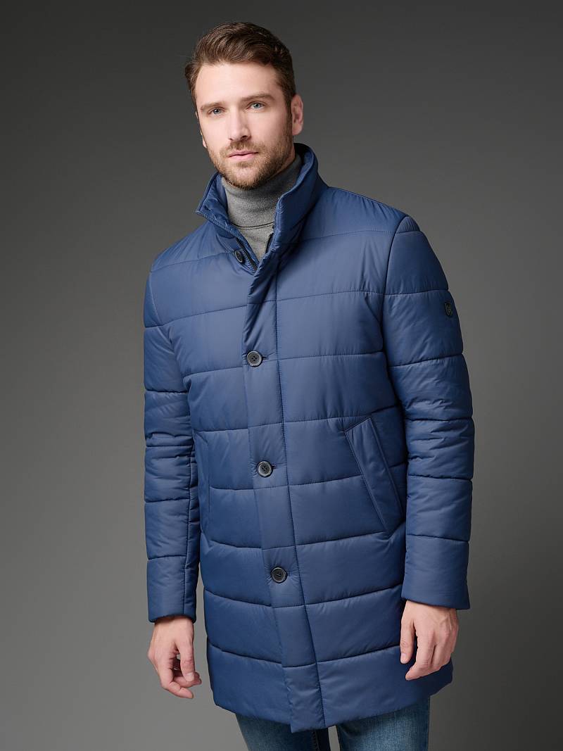 Мужская стеганая куртка - пальто из курточной ткани. Инновационная пуходержащая ткань верха с обработкой wr, cire (ветро и влаго защита). - мягкая, легкая, практичная, не мнется. Удобный, утепленный воротник -стойка на двух кнопках. Застежка изделия с планкой на молнию японской фирмы YKK, рассчитана на высокий цикл застегиваний и расстегиваний. Ветрозащитная планка на пуговицах от холода в непогоду. Полочки и спинка простеганы. На полочках - два теплых боковых кармана с листочкой на скрытых магнитах. Мешковина карманов из велюра, придает мягкость, создает тепло и комфорт в изделии. Спинка со шлицей. Рукава втачные с локтевыми швами. Технологичная внутренняя подкладка с защитой от миграции утеплителя, на подкладке - два вместительных внутренних кармана для документов с застежкой молнией. Длина по спинке-90см. Ткань верха: 100%полиэстер. Подкладка: 100%полиэстер. Утеплитель: термоплюс 200гр/200гр