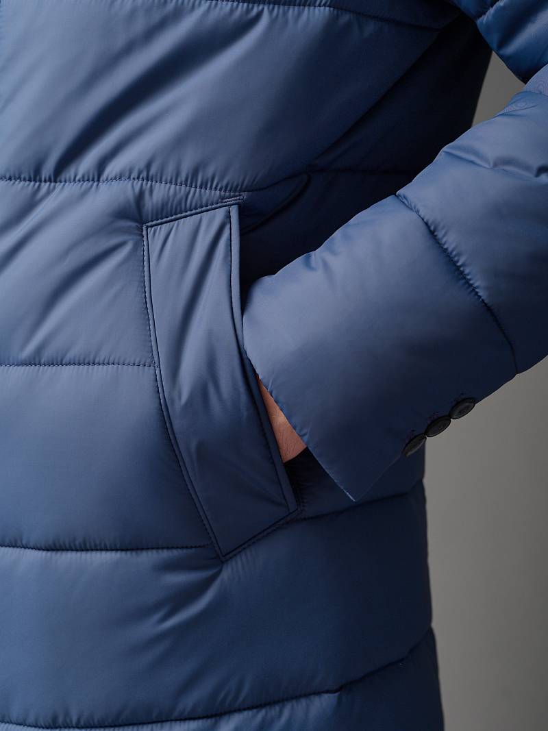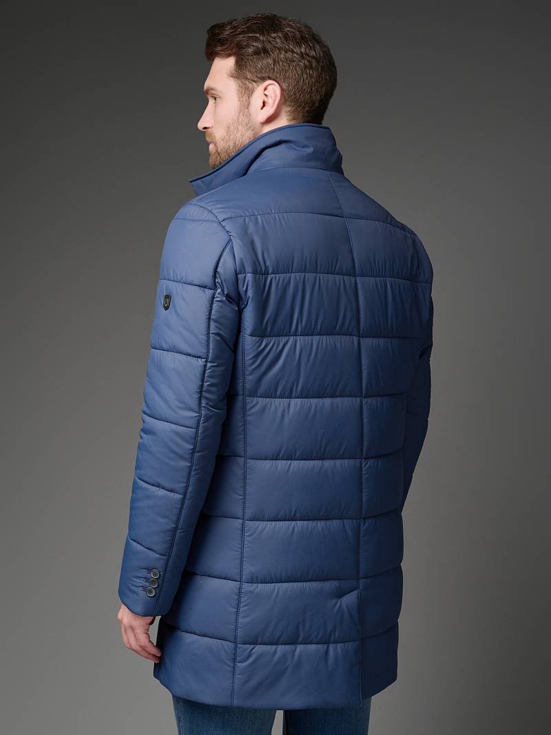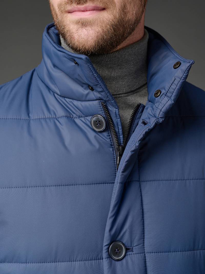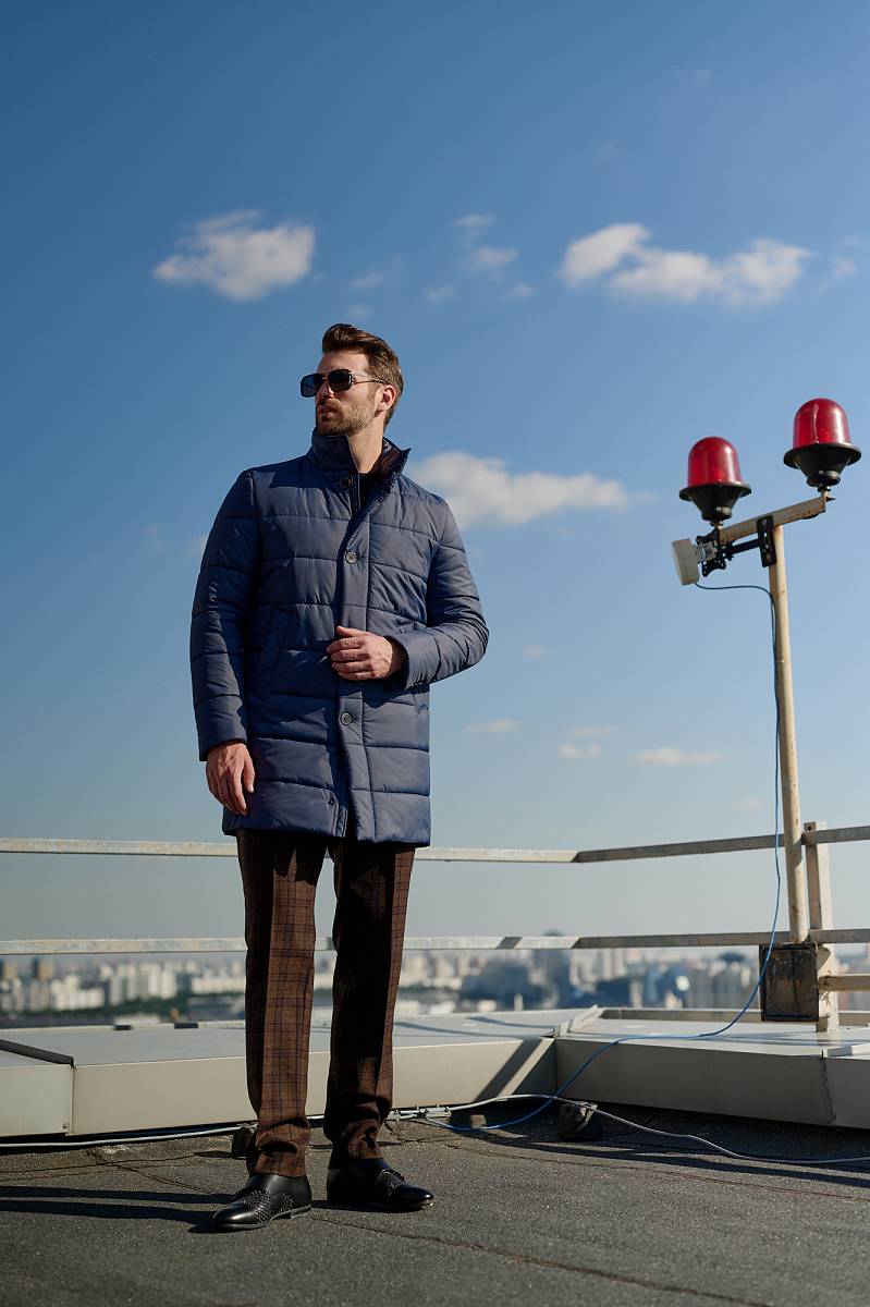 Мужская стеганая куртка - пальто из курточной ткани. Инновационная пуходержащая ткань верха с обработкой wr, cire (ветро и влаго защита). - мягкая, легкая, практичная, не мнется. Удобный, утепленный воротник -стойка на двух кнопках. Застежка изделия с планкой на молнию японской фирмы YKK, рассчитана на высокий цикл застегиваний и расстегиваний. Ветрозащитная планка на пуговицах от холода в непогоду. Полочки и спинка простеганы. На полочках - два теплых боковых кармана с листочкой на скрытых магнитах. Мешковина карманов из велюра, придает мягкость, создает тепло и комфорт в изделии. Спинка со шлицей. Рукава втачные с локтевыми швами. Технологичная внутренняя подкладка с защитой от миграции утеплителя, на подкладке - два вместительных внутренних кармана для документов с застежкой молнией. Длина по спинке-90см. Ткань верха: 100%полиэстер. Подкладка: 100%полиэстер. Утеплитель: термоплюс 200гр/200гр