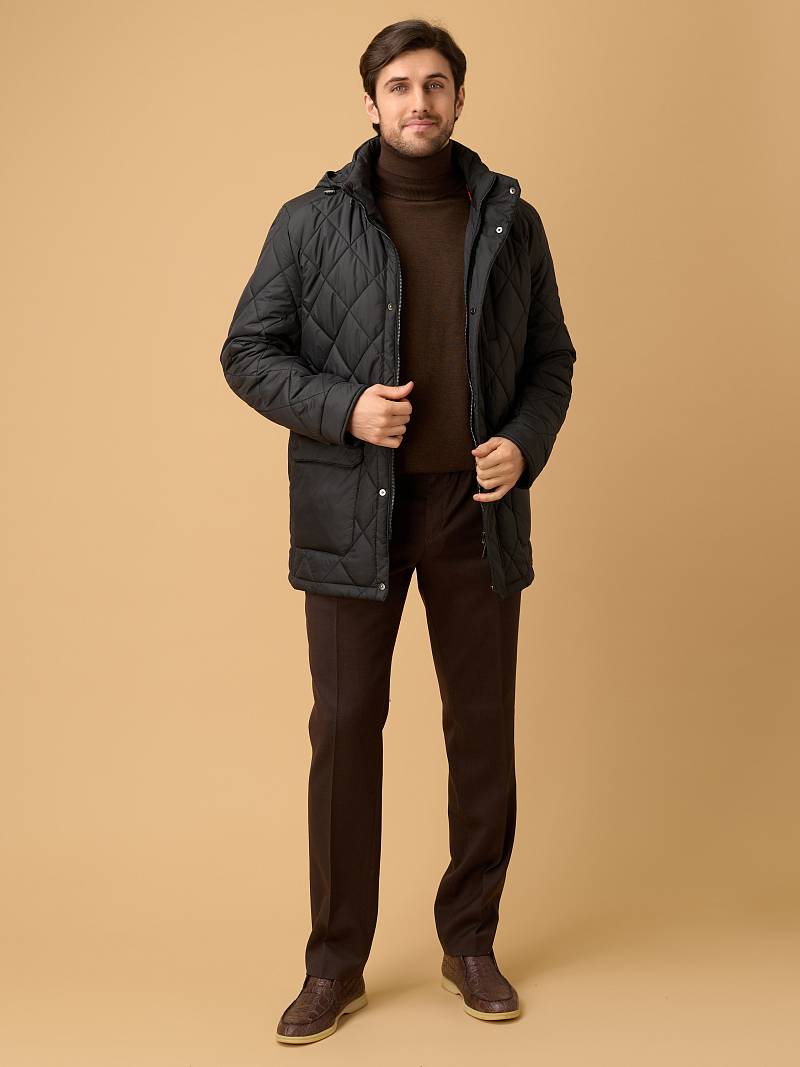 Представляем практичную и стильную куртку, сочетающую надёжную теплоизоляцию, продуманную эргономику и современный дизайн. Модель рассчитана на прохладную осень, обеспечивает защиту от ветра и умеренных холодов. Ромбовидная стежка удерживает равномерное распределение утеплителя. Воротник - стойка плотно облегает шею и защищает от ветра. Водоотталкивающая плащевая ткань и интегрированный в воротник капюшон на кулиске защитят от дождя. Куртка застегивается на центральную молнию с двумя фирменными брендированными бегунками и ветрозащитную планку на кнопках. Два крупных многофункциональных накладных кармана с боковым входом на магнитной кнопке и верхним входом с клапаном на двух кнопках. Дополнительный нагрудный вертикальный карман-листочка на молнии обеспечит надежное хранение важных мелочей. Удлиненный силуэт позволяет надевать куртку на пиджак, либо классический костюм, которые вы можете выбрать из представленного ассортимента нашего магазина. Внутри куртка оформлена подкладкой с двумя карманами на молнии и контрастным кантом, а расположенная на уровне талии регулируемая кулиска обеспечивает дополнительную защиту от ветра. Дизайнеры марки BAZIONI тщательно выбирают и используют ткани и прикладные материалы только от передовых производителей. Завершат Ваш стильный образ трикотаж и актуальные брюки из нашей осенне-зимней коллекции, широко представленной в магазине.