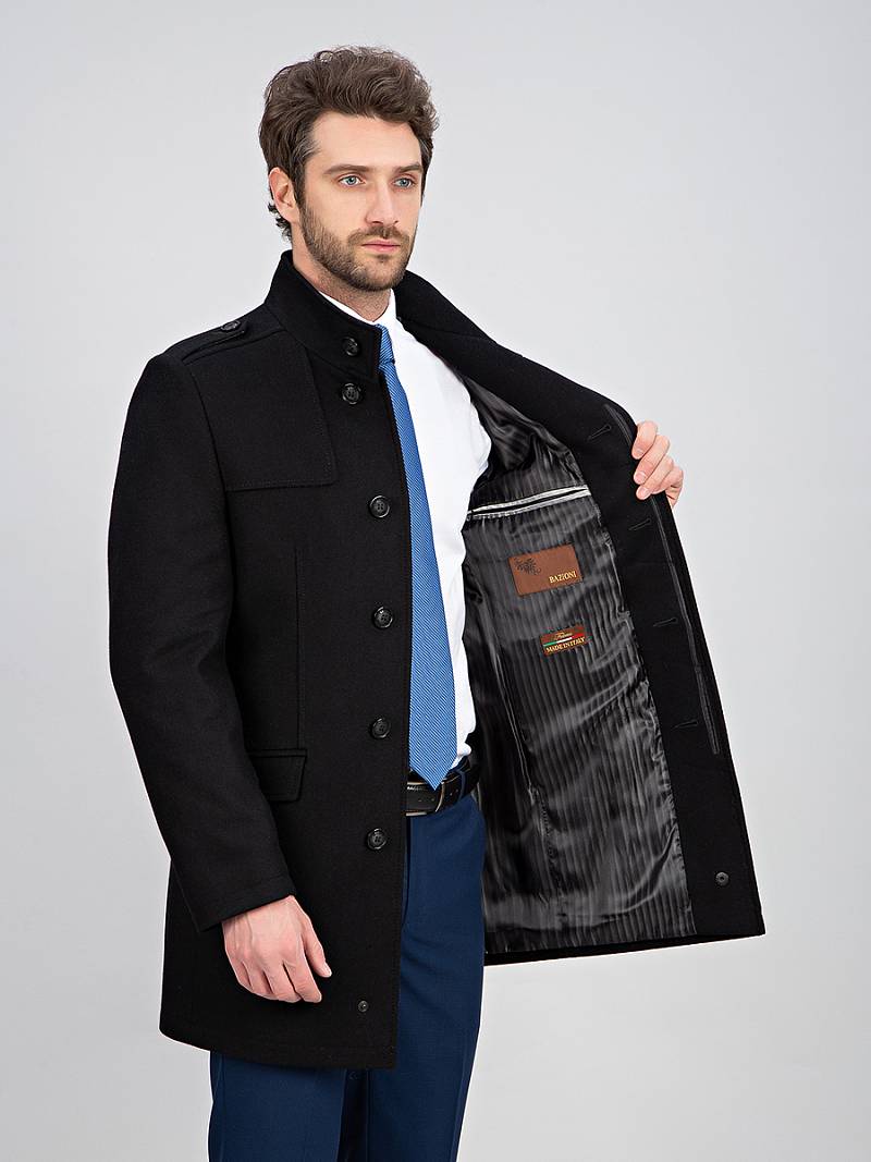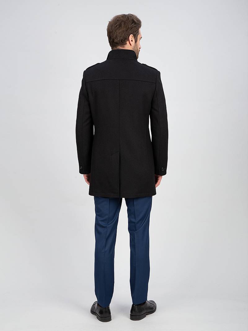 Пальто мужское прямого силуэта, воротник стойка, погоны, супатная застёжка