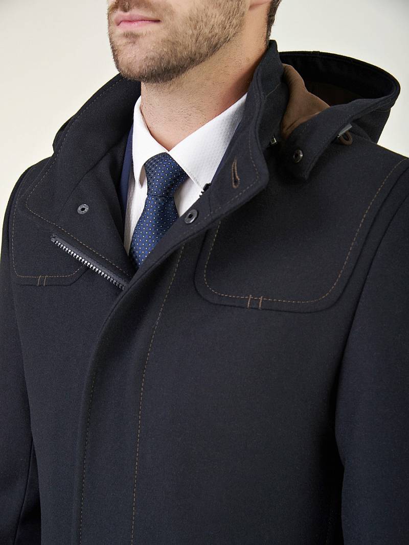 Пальто-парка с капюшоном , с кокетками и накладными карманами, застежка на молнию и потайные кнопки. Отделочные строчки, пуговицы, закрепки контрастные. Длина изделия по спинке для размера 50/176 - 81см