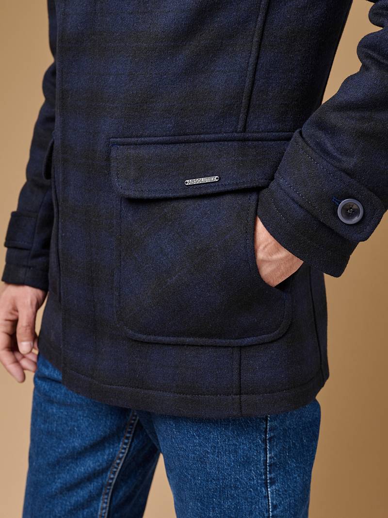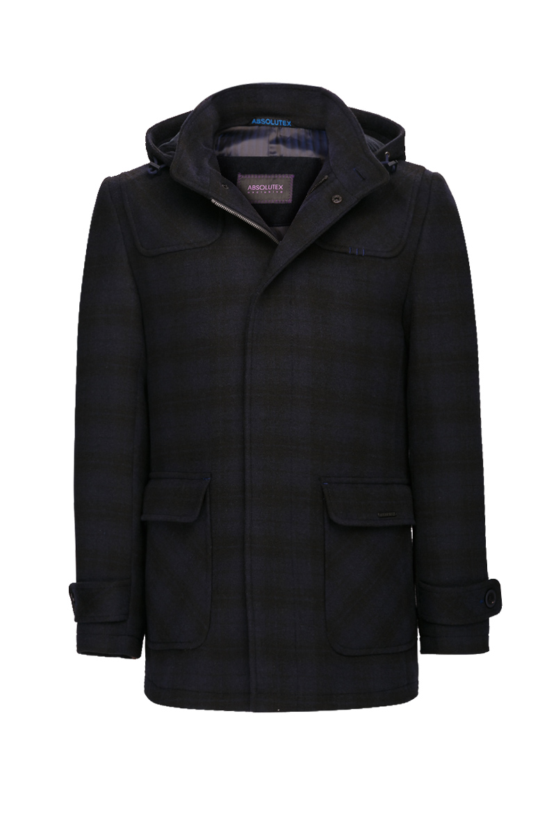 Пальто-парка с капюшоном из ткани "клетка", кокетками и накладными карманами, застежка на молнию и потайные кнопки. Отделочные строчки, пуговицы, закрепки контрастные. ABSOLUTEX. Длина изделия по спинке для размера 50/176 - 81см