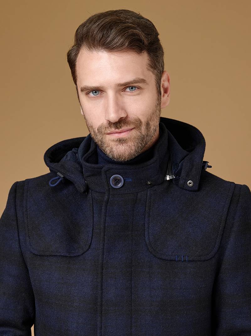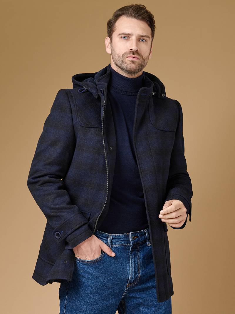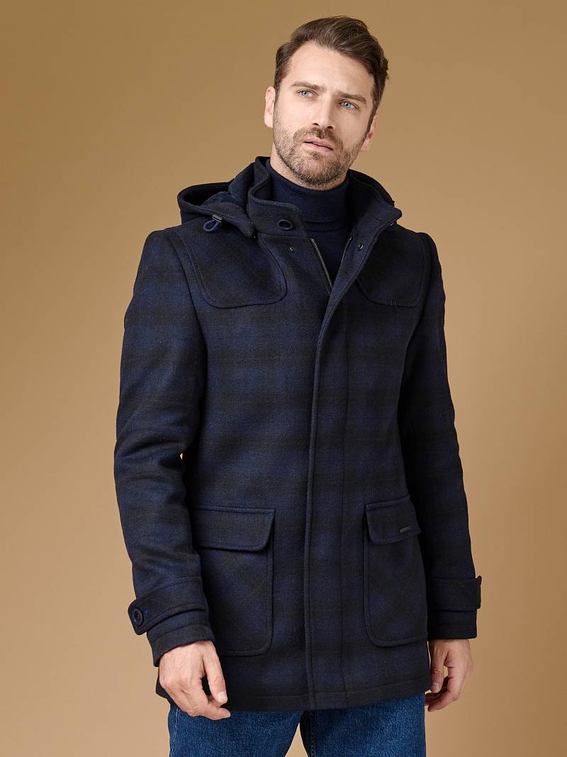2017У S BLACK DK NAVY CHEK/ Пальто мужское