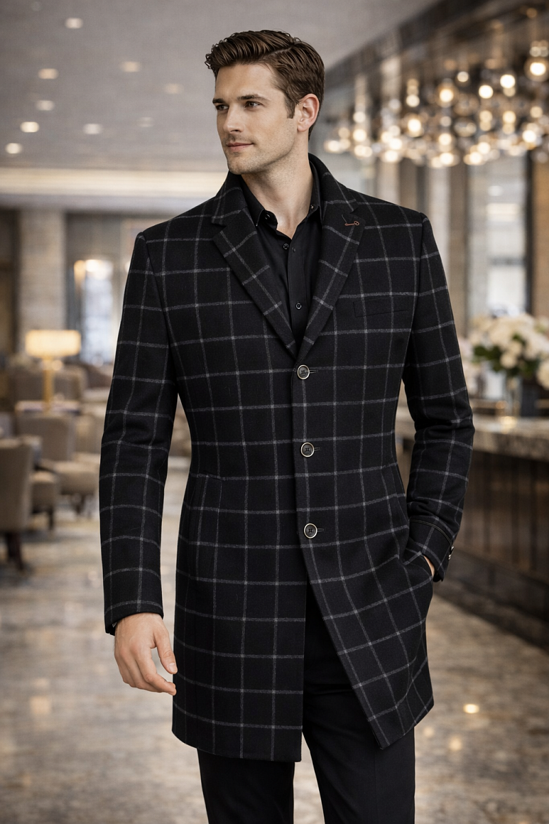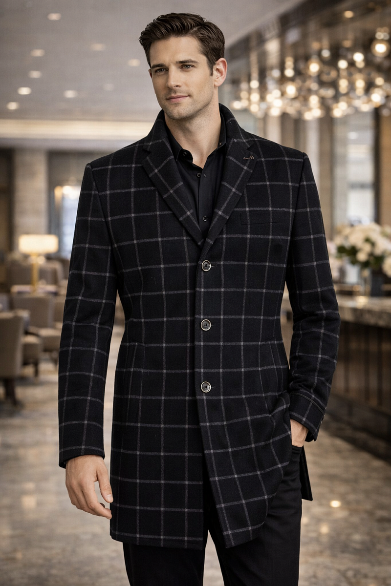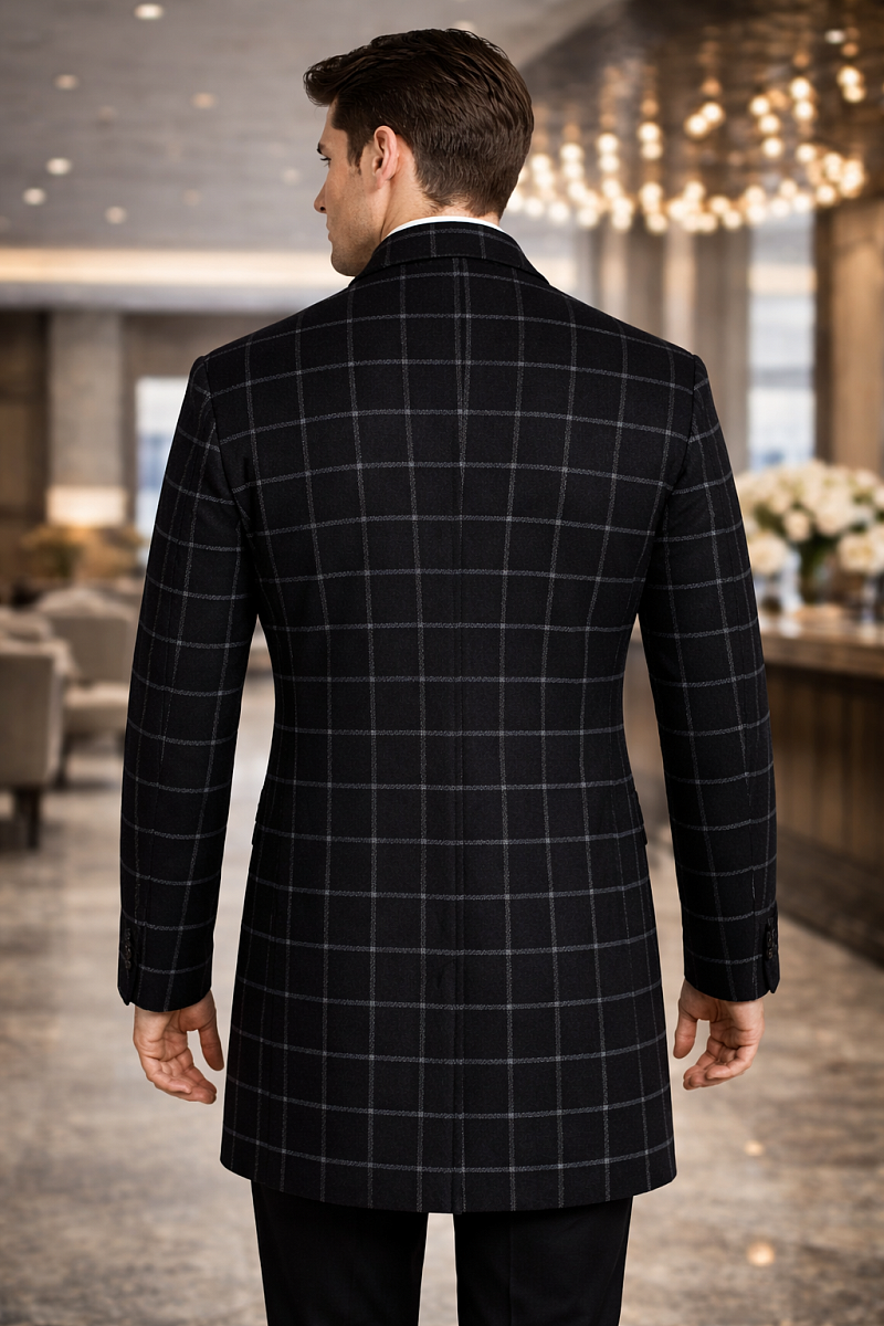 2037У S BLACK NAVY CHEK/ Пальто мужское