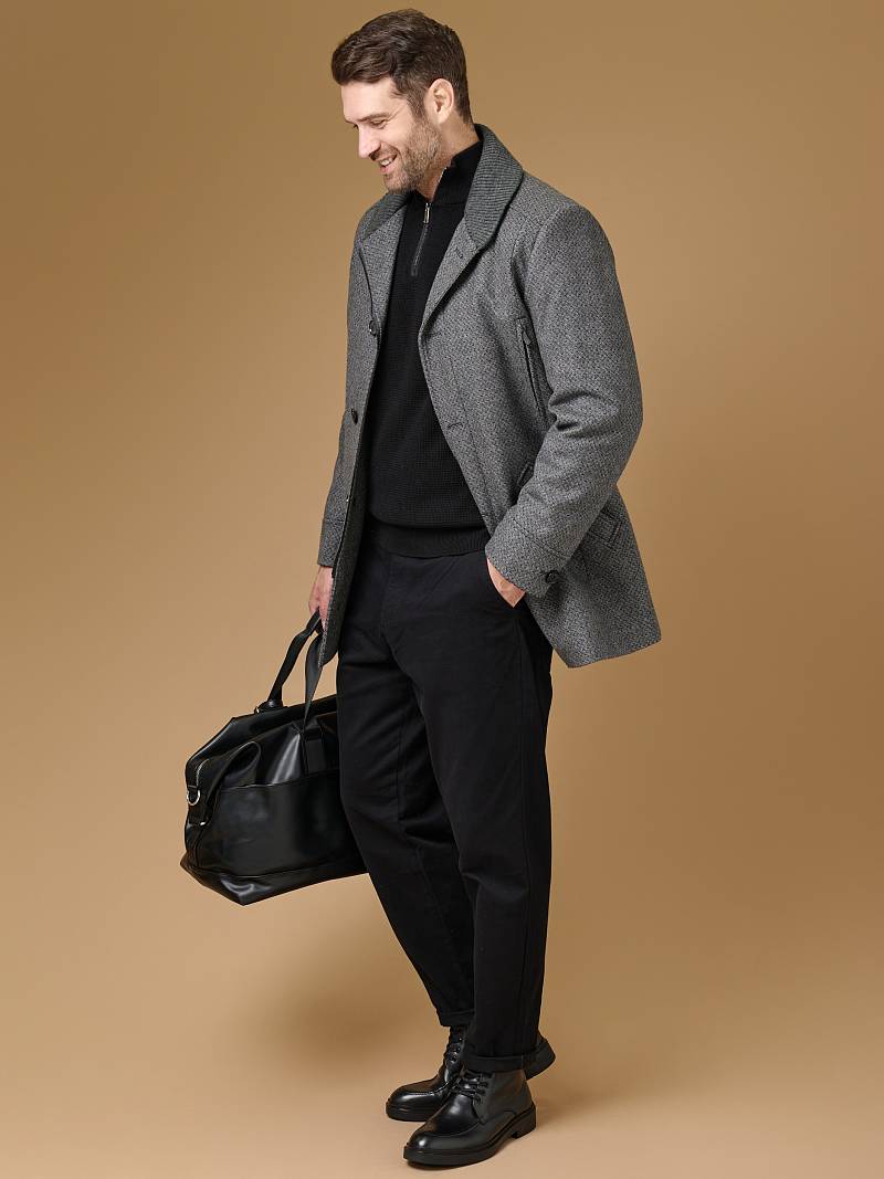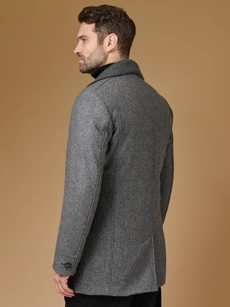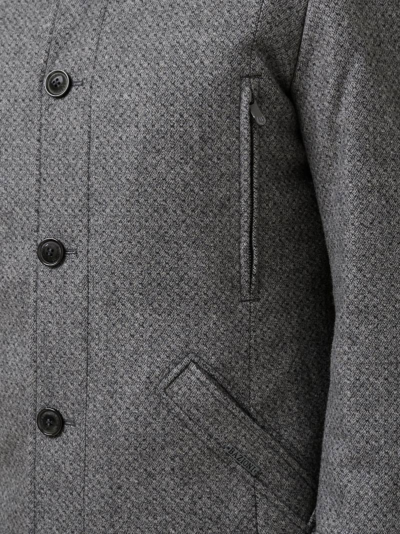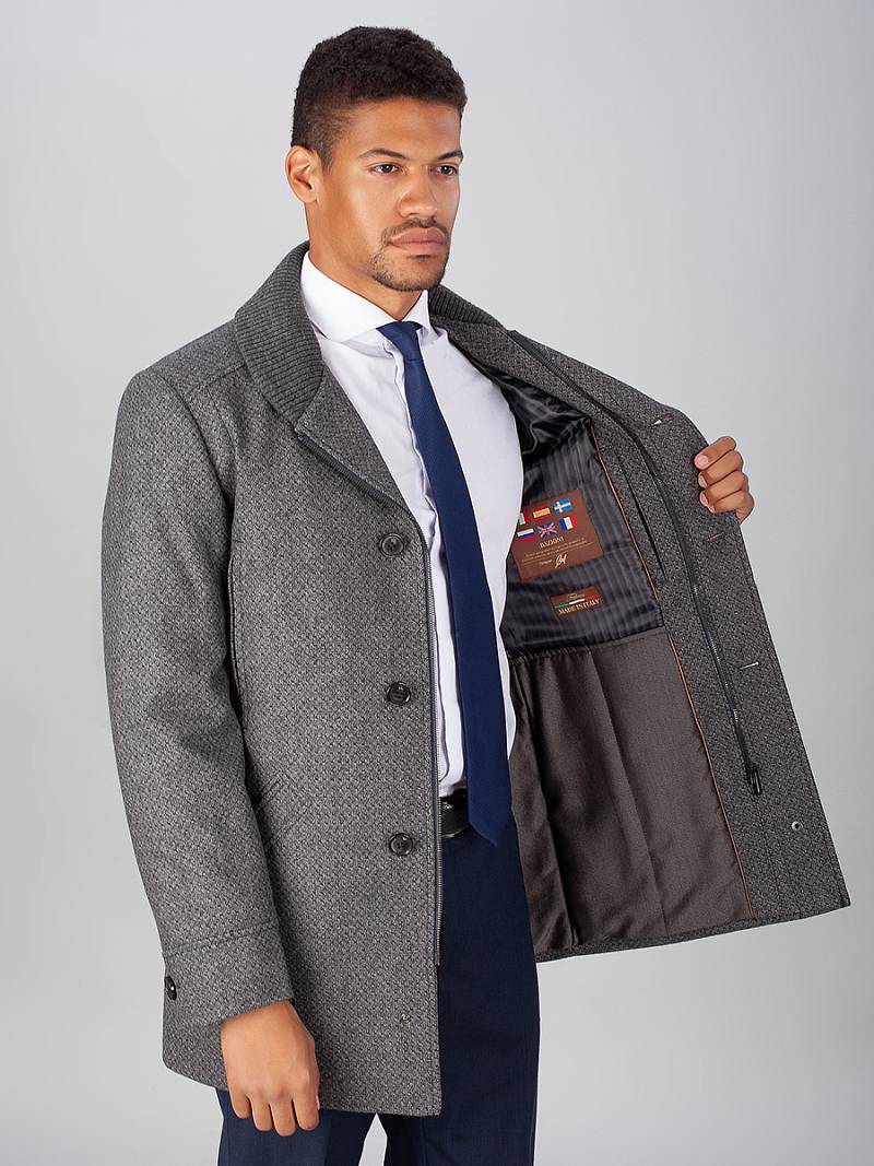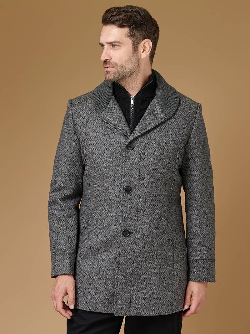 Пальто мужское.Застежка на молнию и 4 пуговицы. Карманы с втачной листочкой. Воротник трикотажный-шалька. одна шлица.BAZIONI