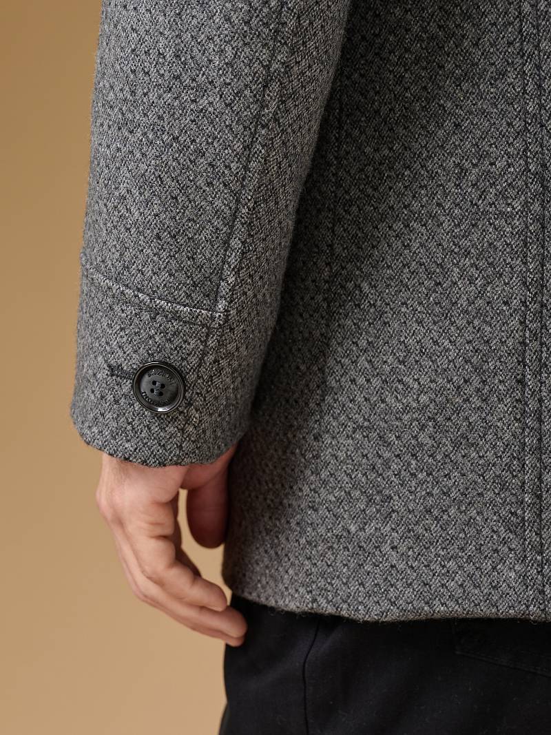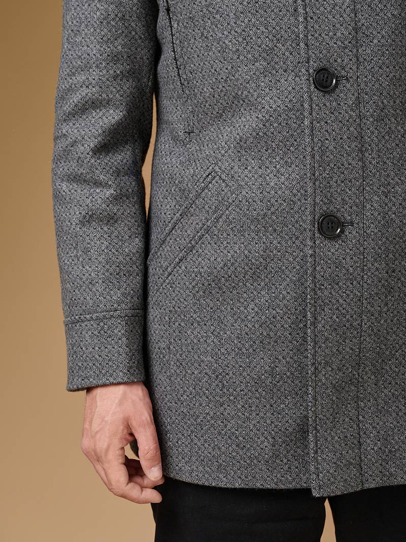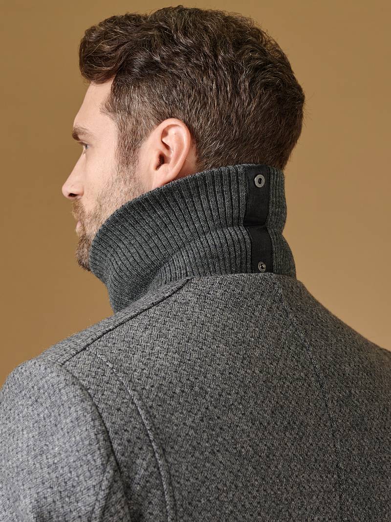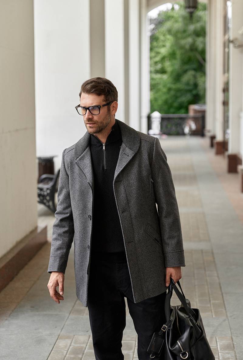 Пальто мужское.Застежка на молнию и 4 пуговицы. Карманы с втачной листочкой. Воротник трикотажный-шалька. одна шлица.BAZIONI