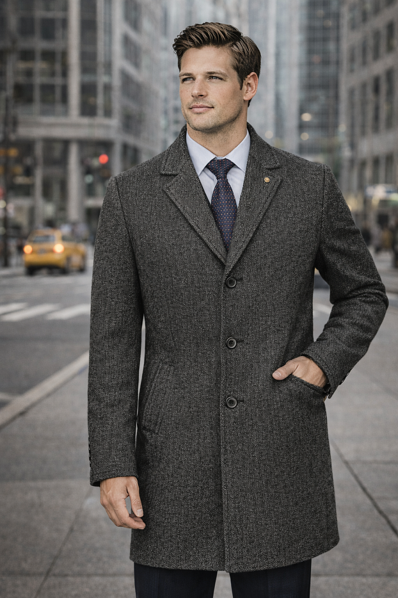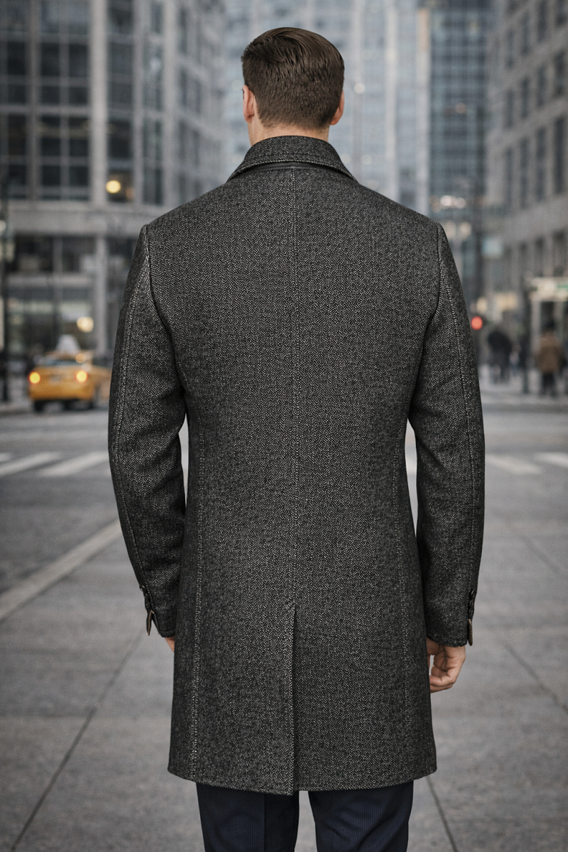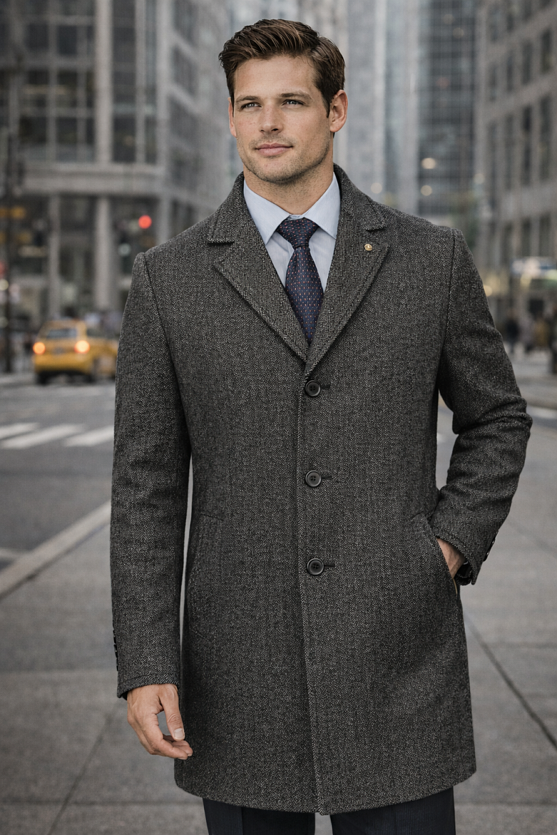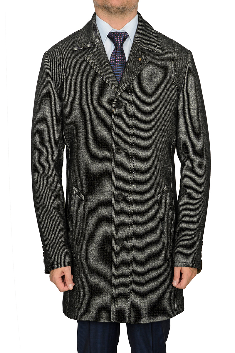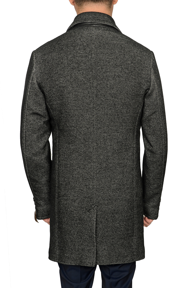 Пальто с центр.застежкой на 4 пуговицы, воротник и лацкан классические, карманы листочки, по спинке шлица