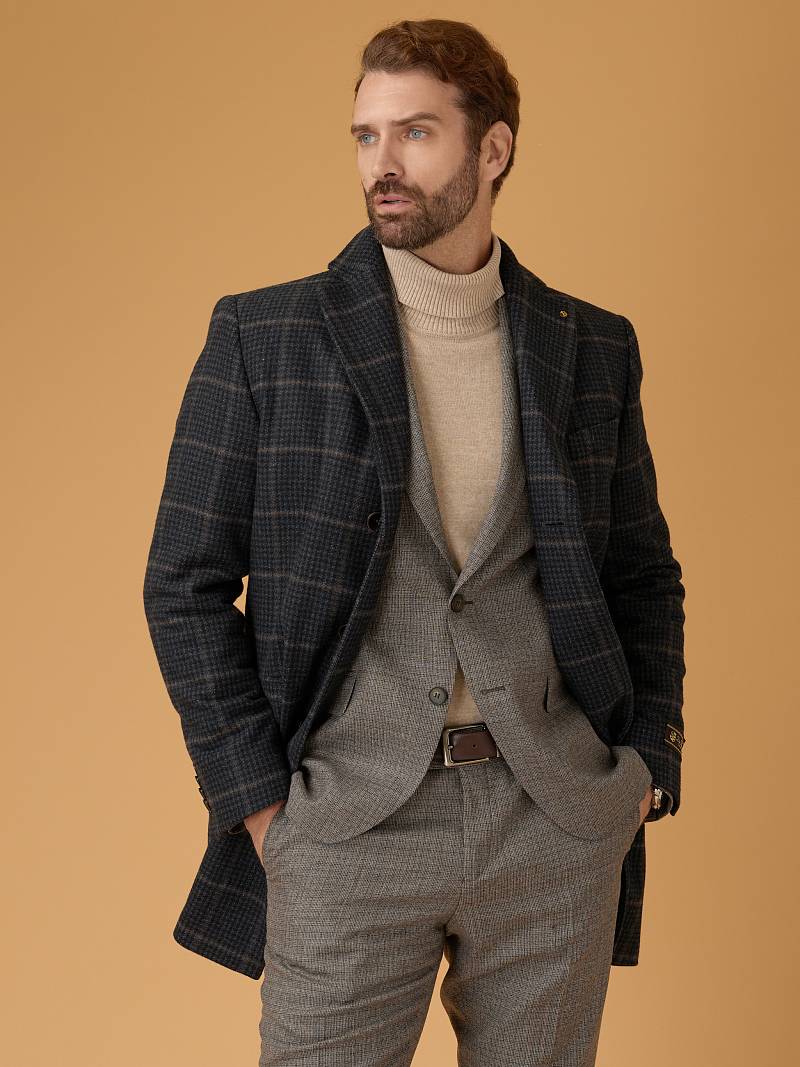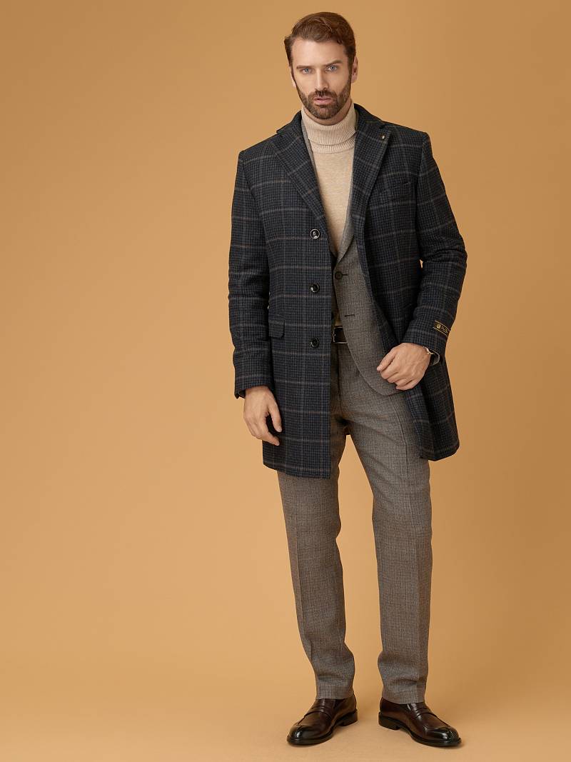Классическое утепленное пальто Classic Fit (ПОЛУПРИЛЕГАЮЩИЙ СИЛУЭТ), на 3 пуговицы, с нагрудной листочкой и двумя боковыми карманами с клапанами. По спинке расположена одна шлица.