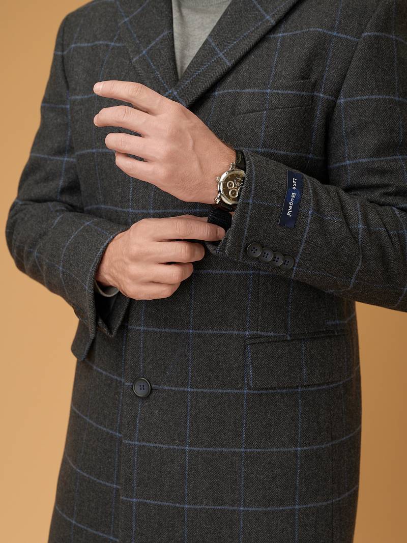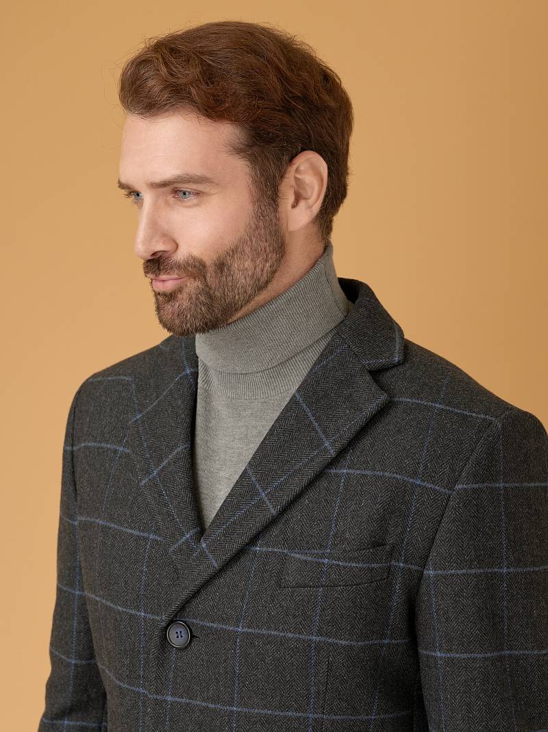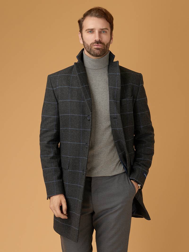 Классическое утепленное пальто Classic Fit (ПОЛУПРИЛЕГАЮЩИЙ СИЛУЭТ), на 3 пуговицы, с нагрудной листочкой и двумя боковыми карманами с клапанами. По спинке расположена одна шлица.