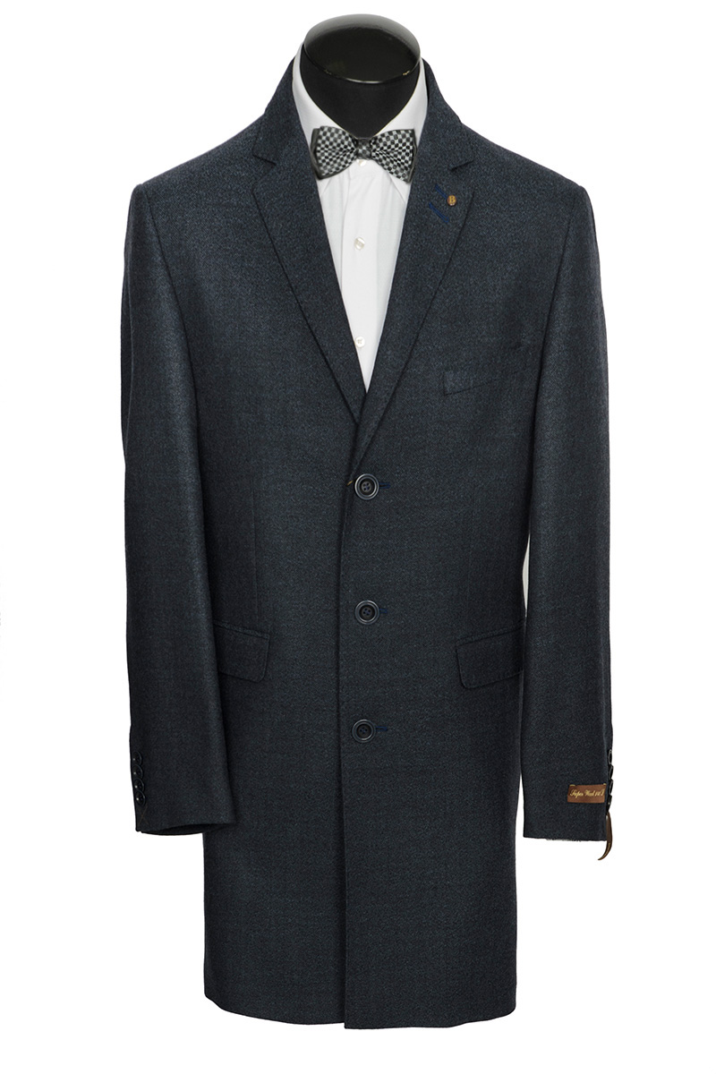 Пальто утепленное полуприлегающего силуэта на 3 пуговицы. Воротник - английский с лацканами. На лацкане - декоративная петля. На передних половинках пальто - один верхний нагрудный карман и два нижних кармана с клапанами. По спинке - в среднем шве - шлица. Рукава втачные, по низу рукавов - шлица на пуговицах. Вспушка по борту, воротнику и лацканам, также по клапанам и листочке.