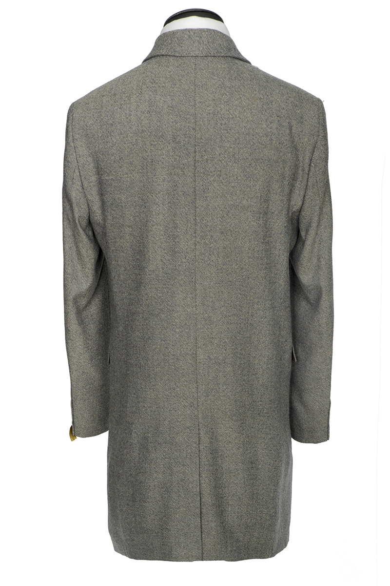 Пальто утепленное полуприлегающего силуэта на 3 пуговицы. Воротник - английский с лацканами. На лацкане - декоративная петля. На передних половинках пальто - один верхний нагрудный карман и два нижних кармана с клапанами. По спинке - в среднем шве - шлица. Рукава втачные, по низу рукавов - шлица на пуговицах. Вспушка по борту, воротнику и лацканам, также по клапанам и листочке.